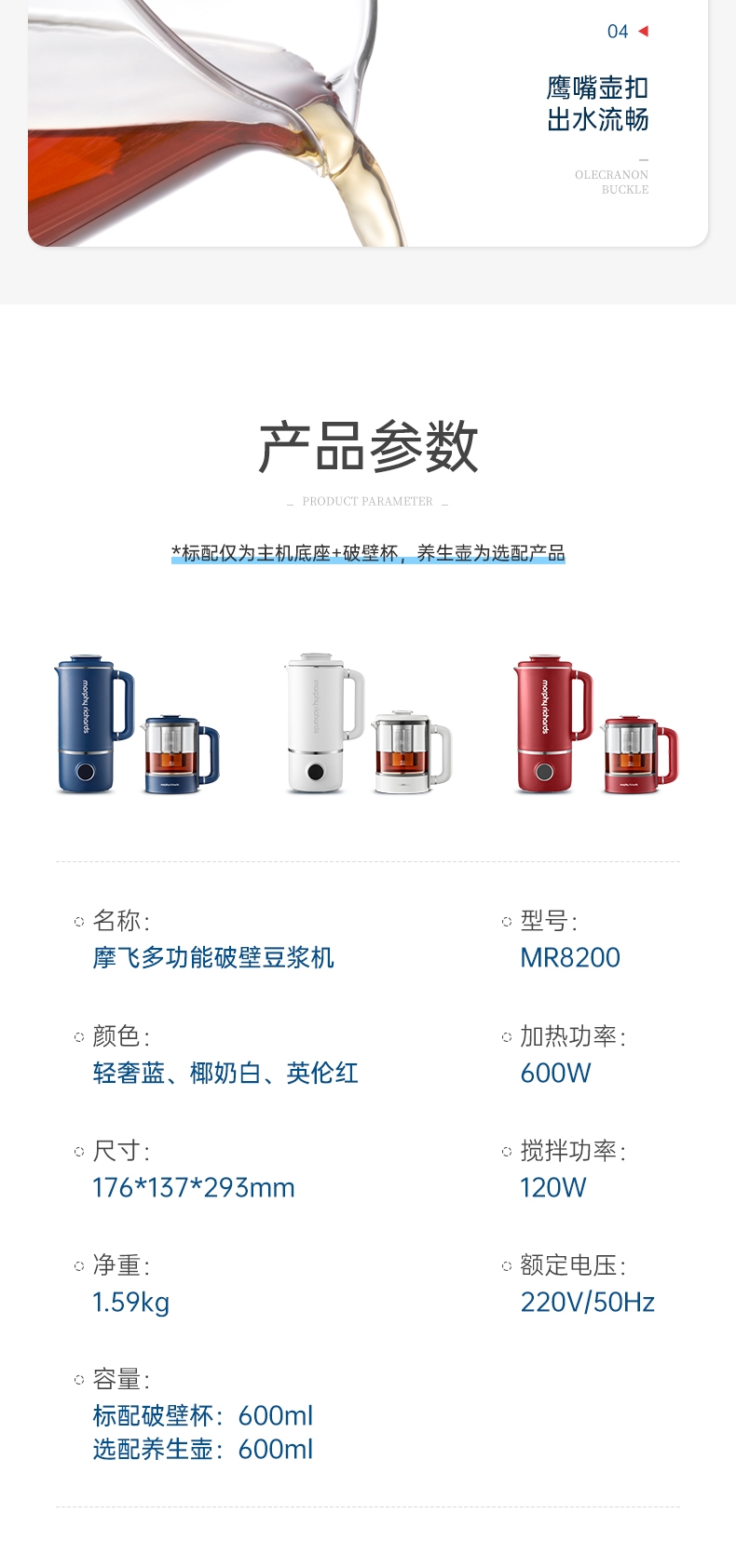 摩飞多功能破壁豆浆机MR8200下单请备注颜色