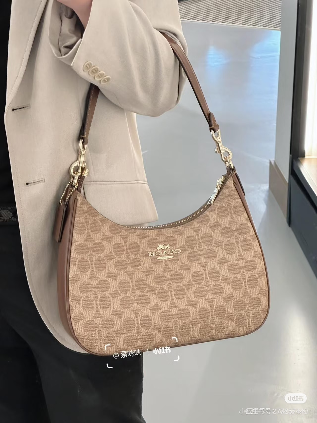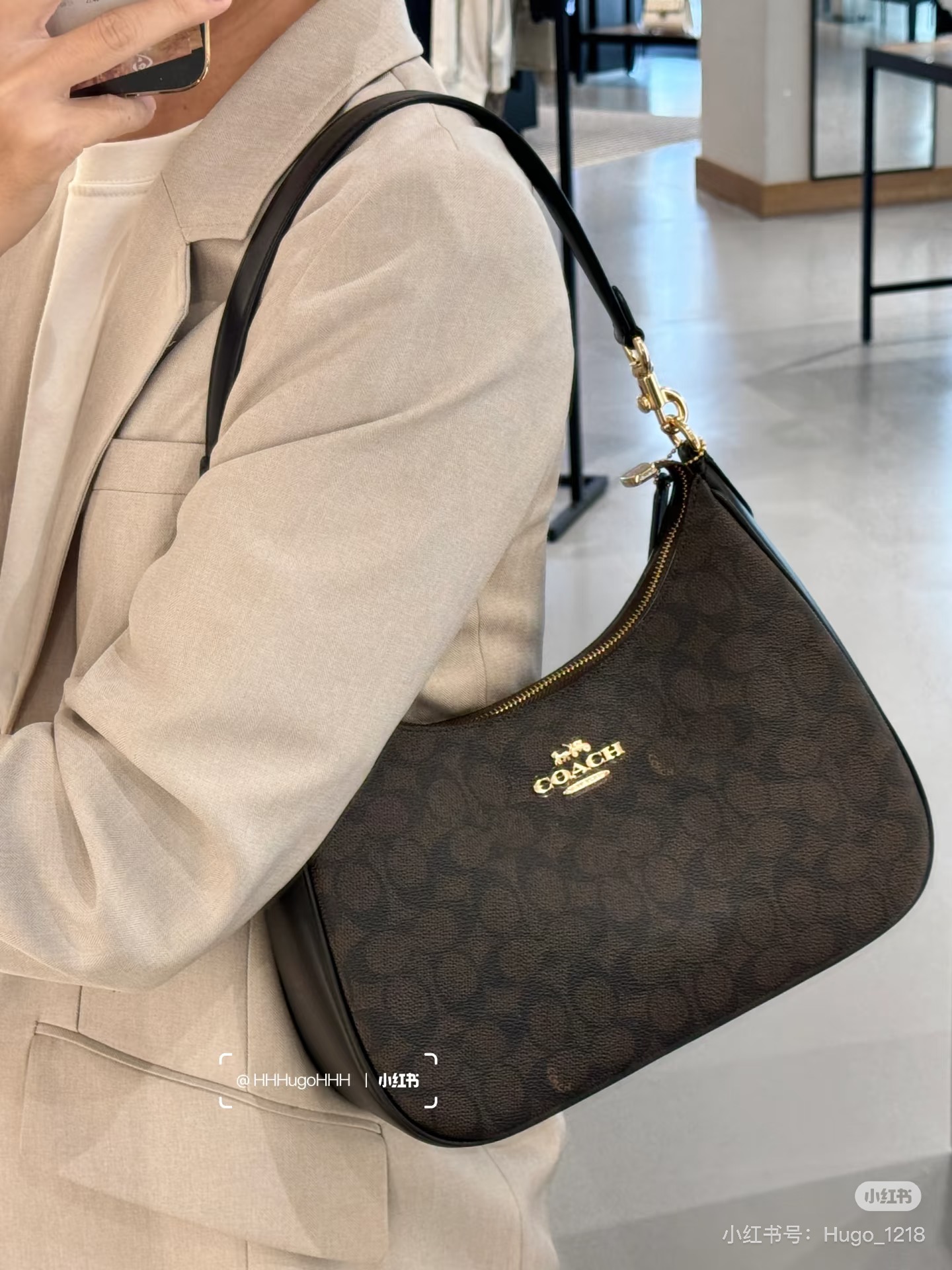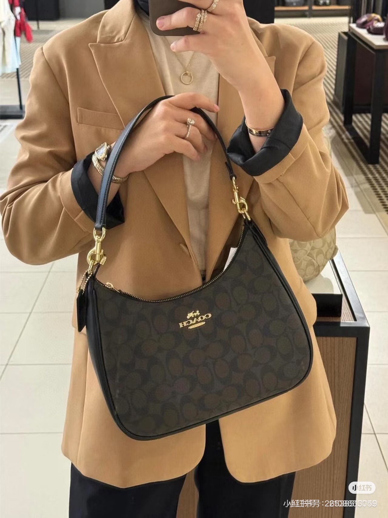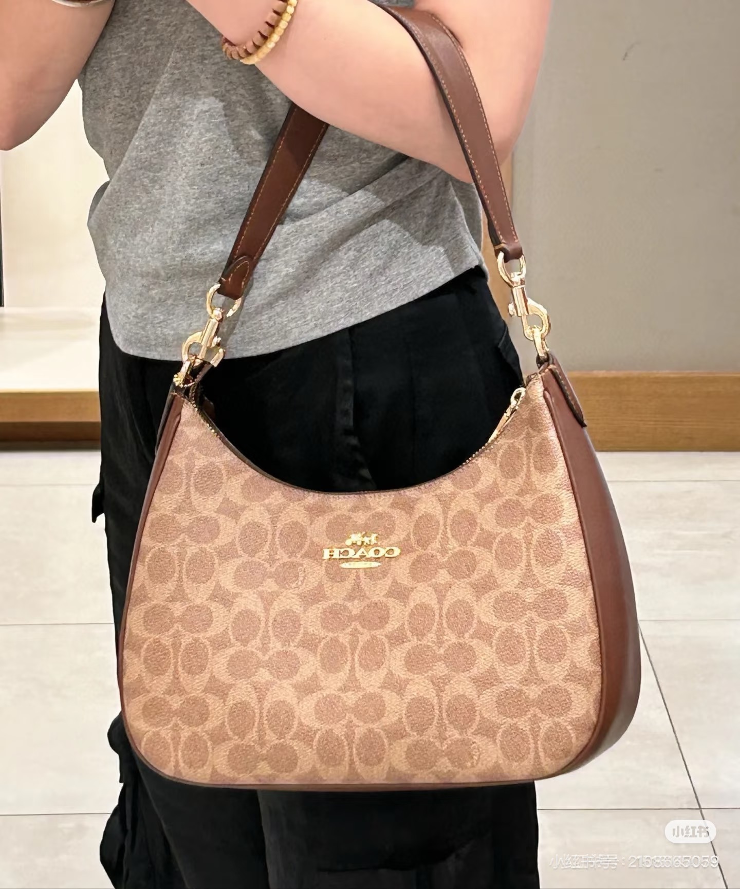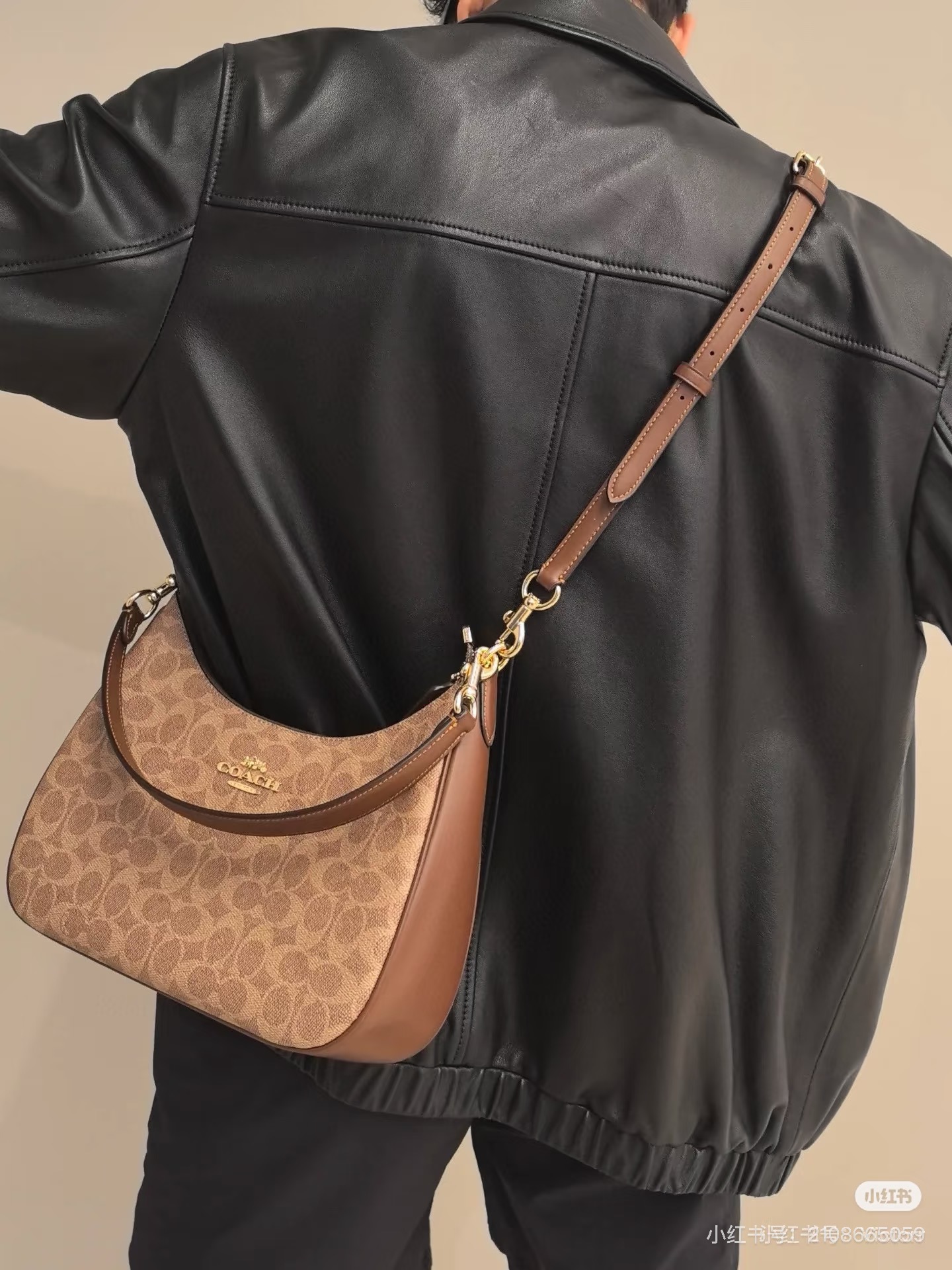 品牌经典logo面料+牛皮,新款半月包,腋下包 品牌徽标拉链开合,可斜挎/手提/单肩