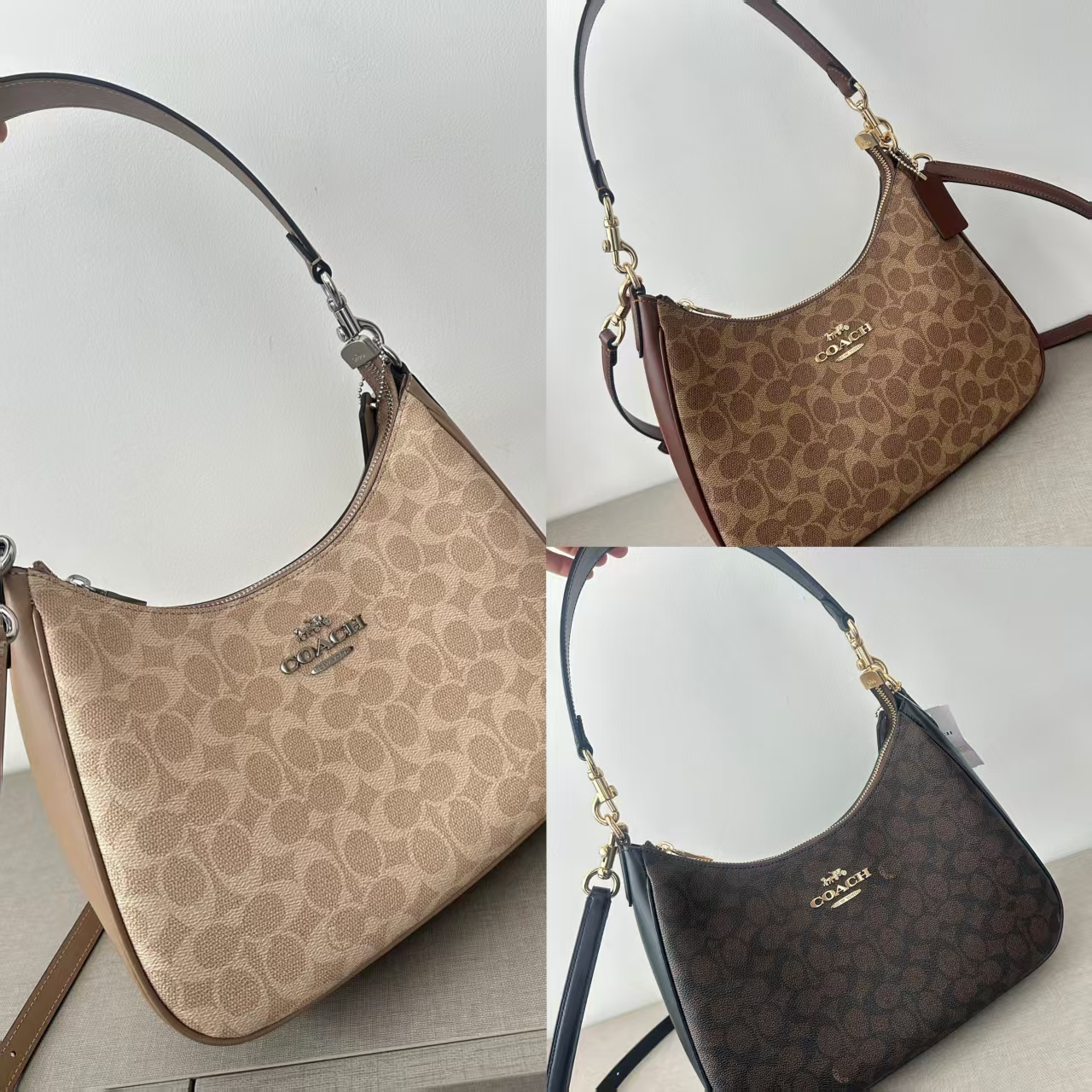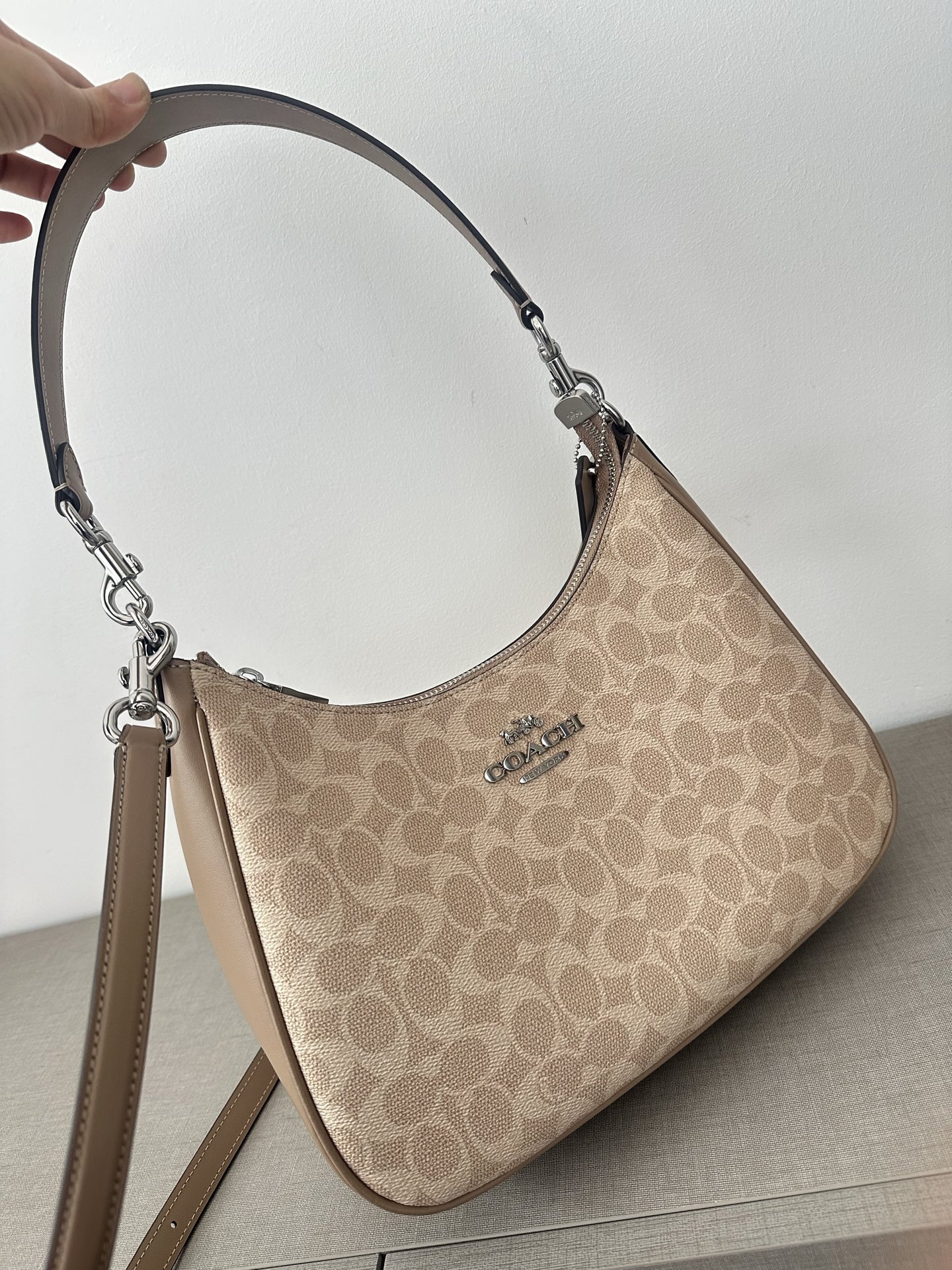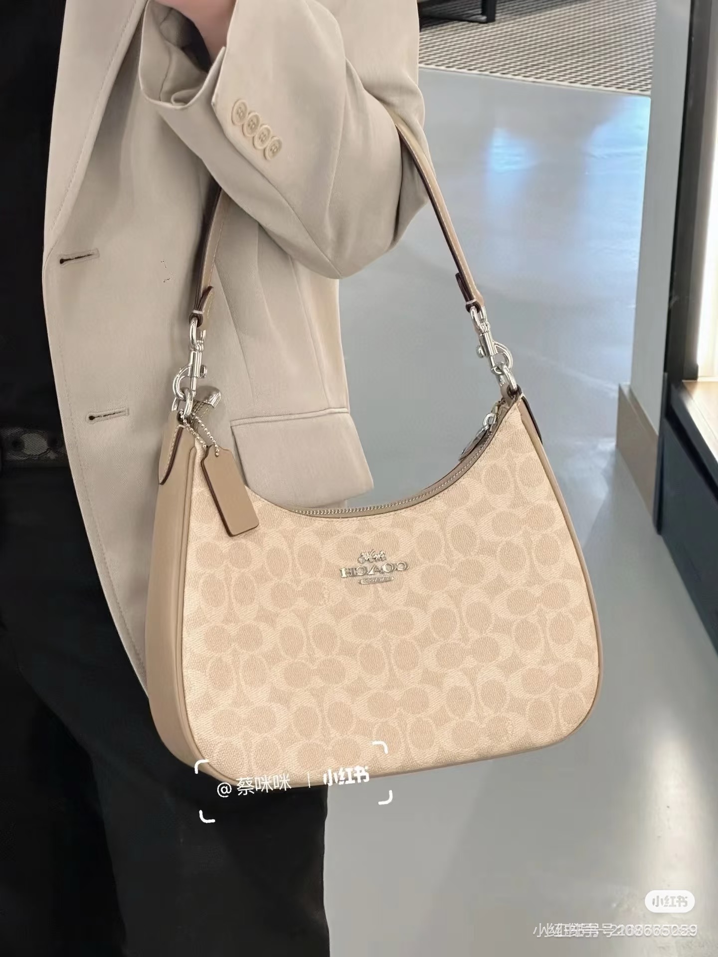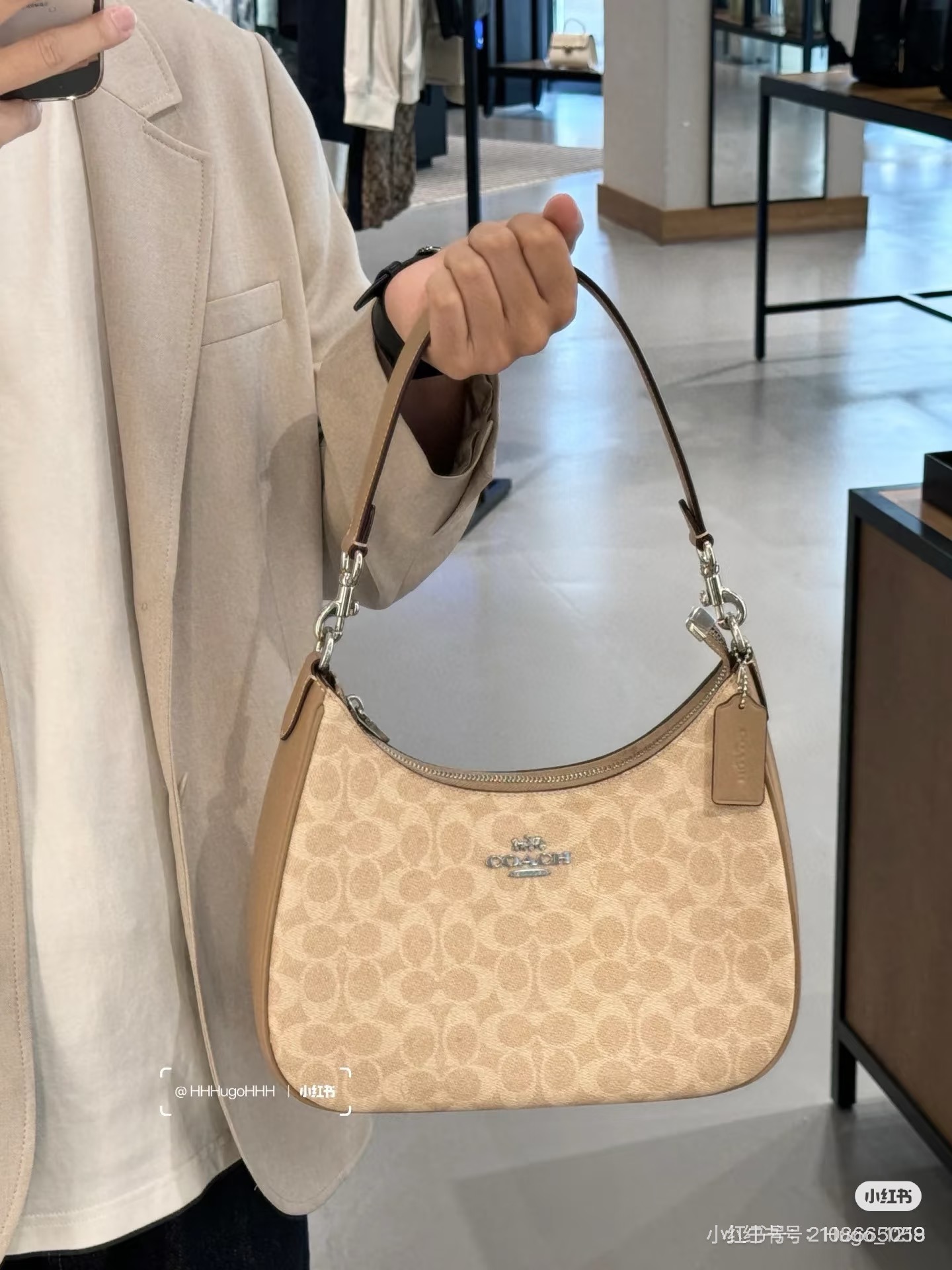 品牌经典logo面料+牛皮,新款半月包,腋下包 品牌徽标拉链开合,可斜挎/手提/单肩