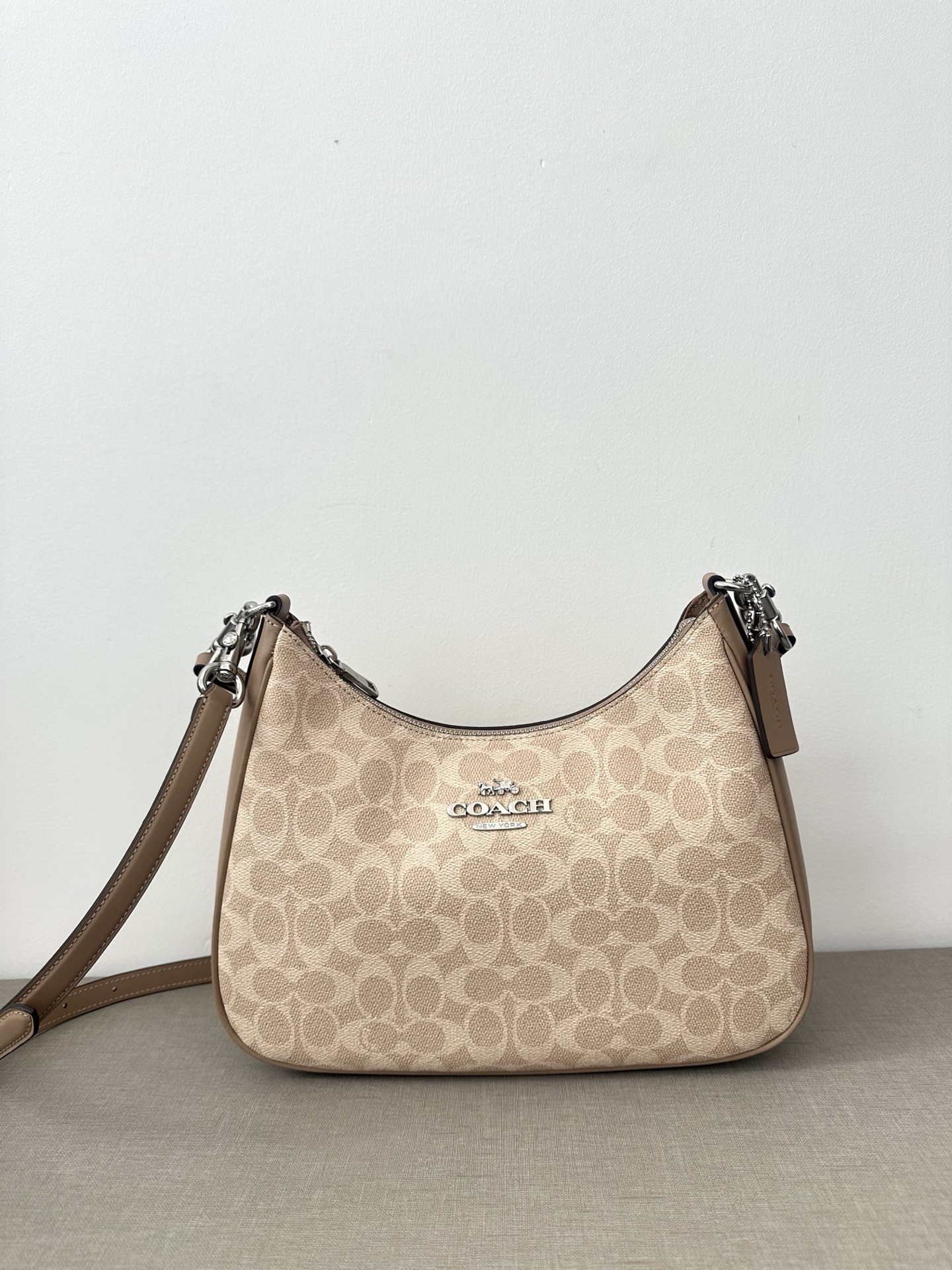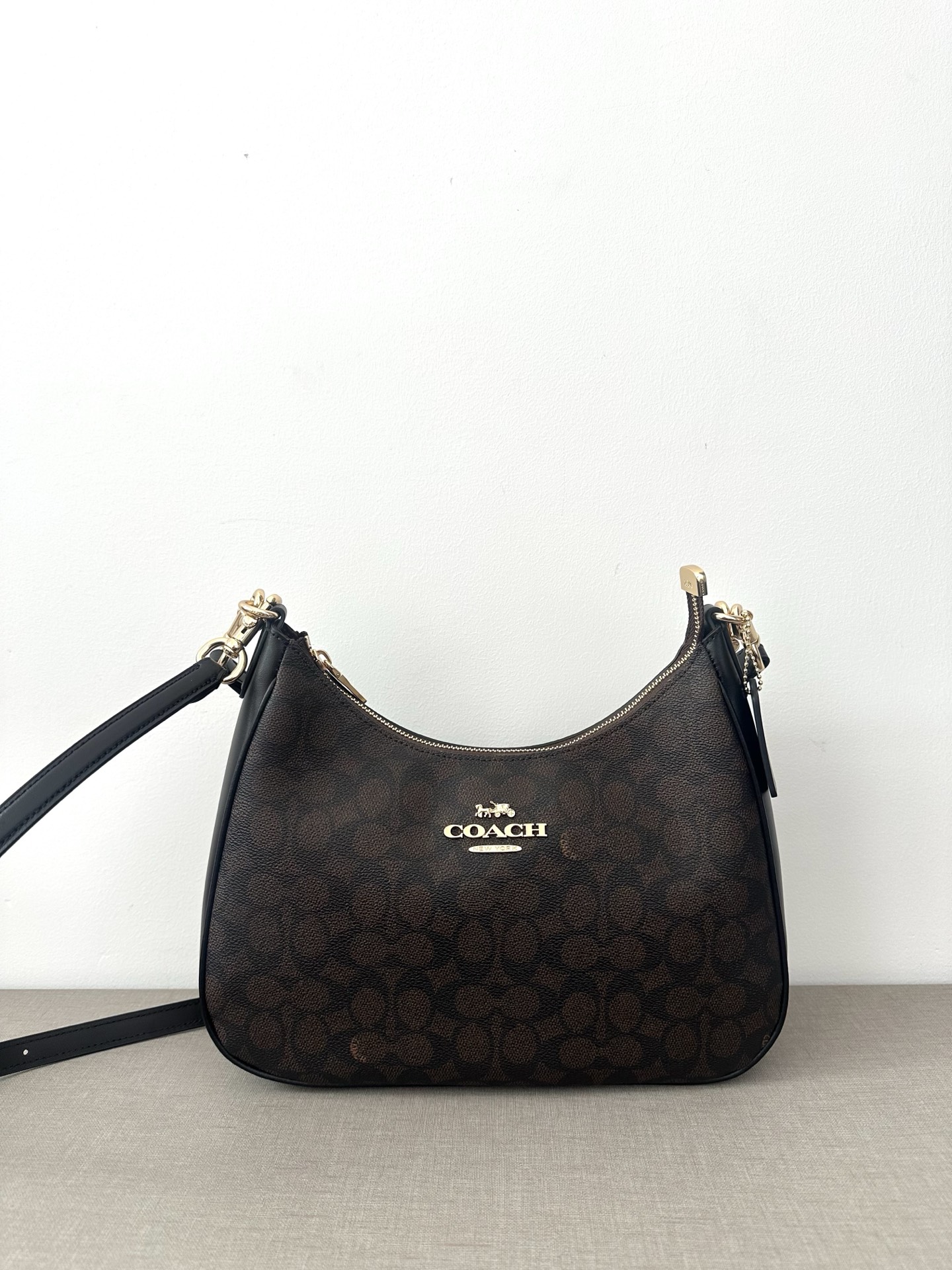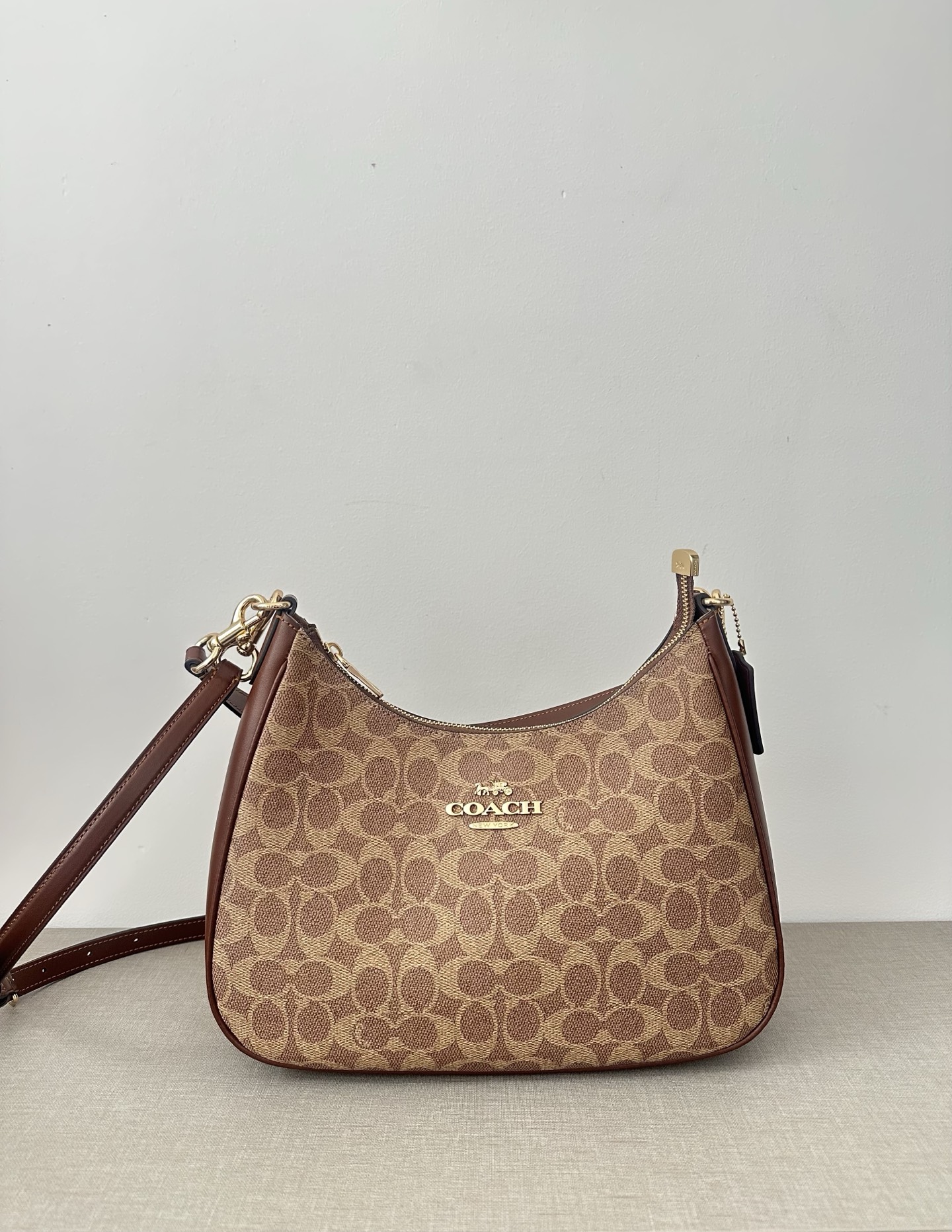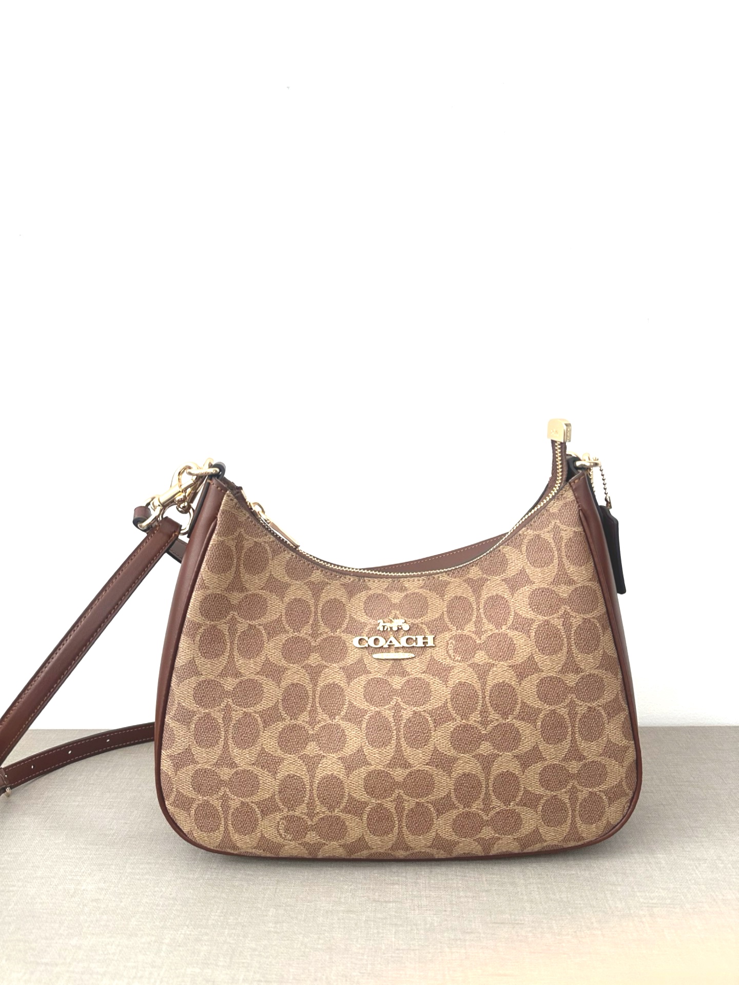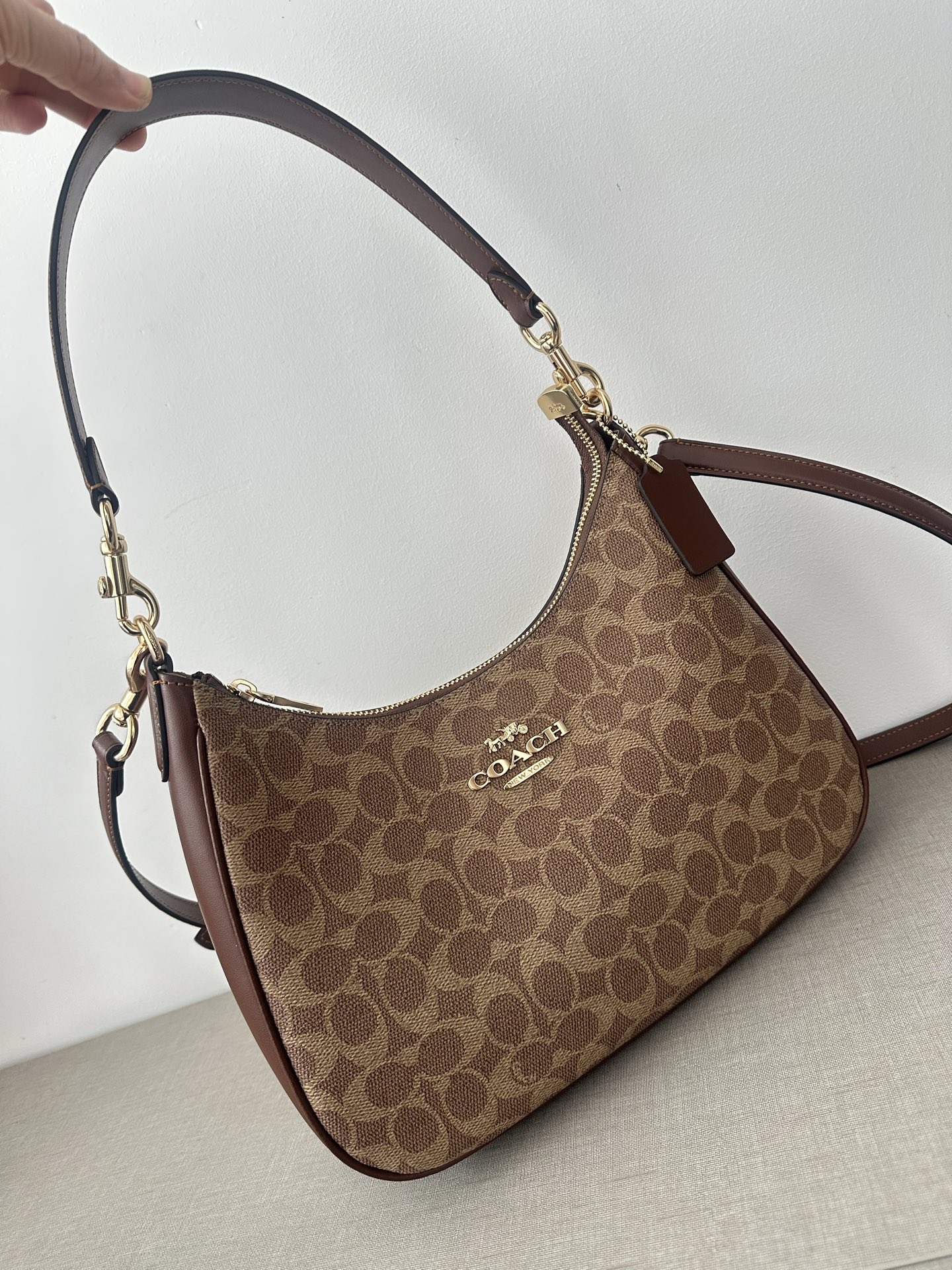 品牌经典logo面料+牛皮,新款半月包,腋下包 品牌徽标拉链开合,可斜挎/手提/单肩
