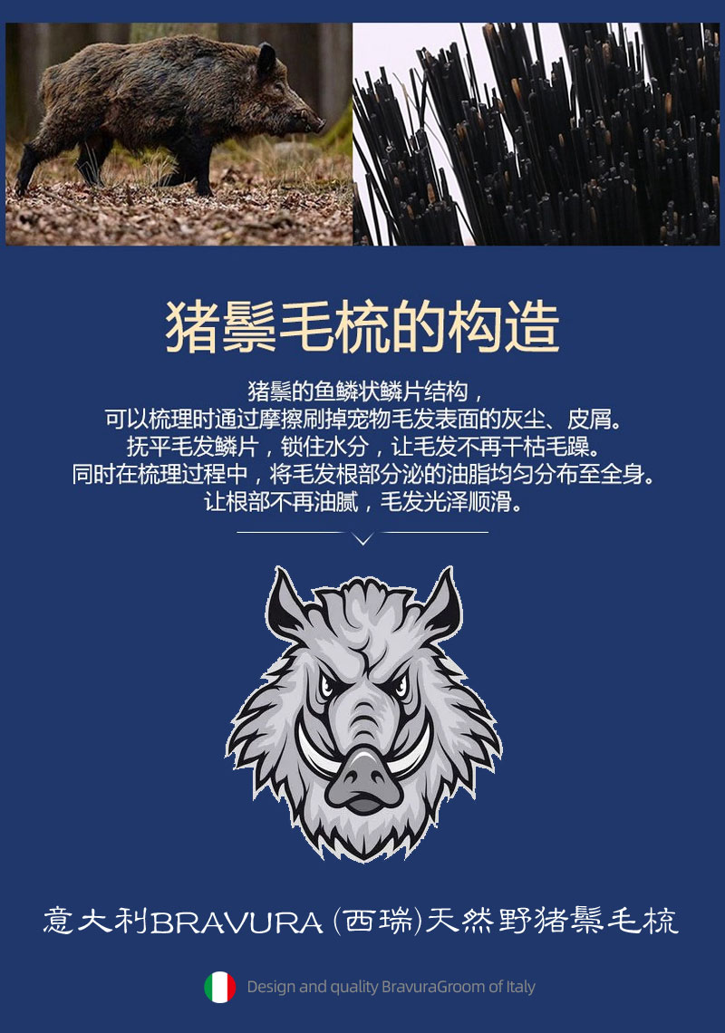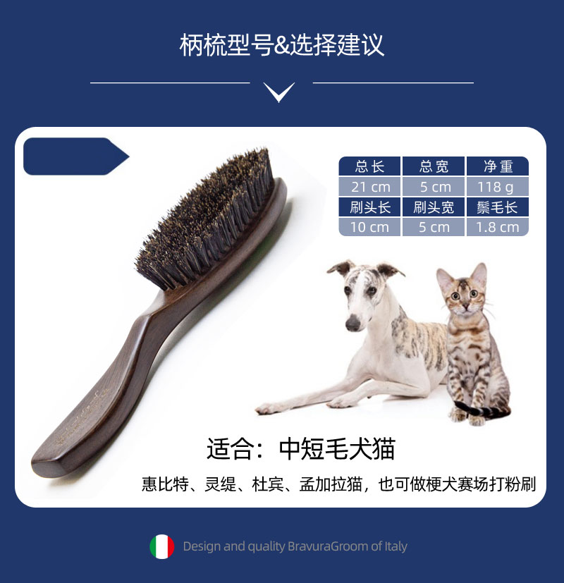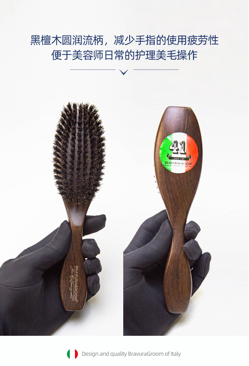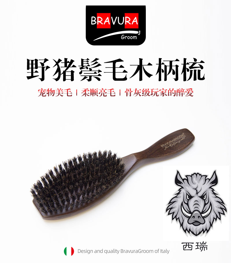 宠物西瑞野猪鬃毛梳 黑檀木猪鬃柄梳 意大利BRAVURAGROOM