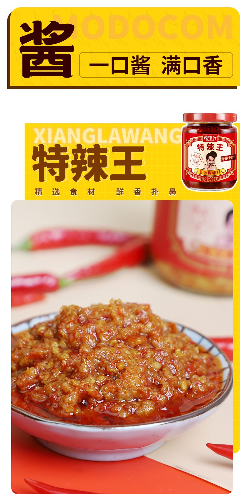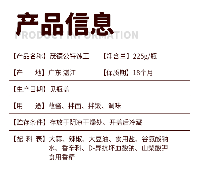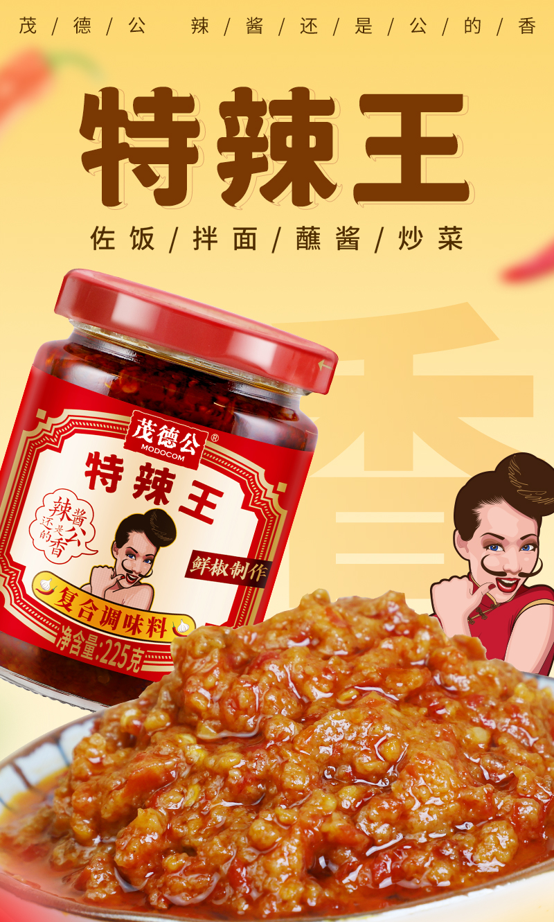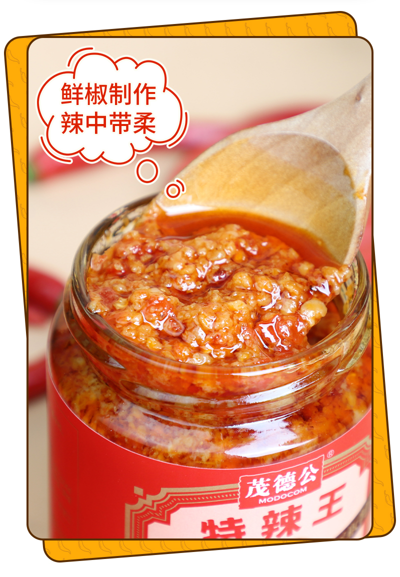 茂德公特辣王辣椒酱225g超辣蒜蓉辣酱拌饭酱拌面酱下饭菜厨房调味酱