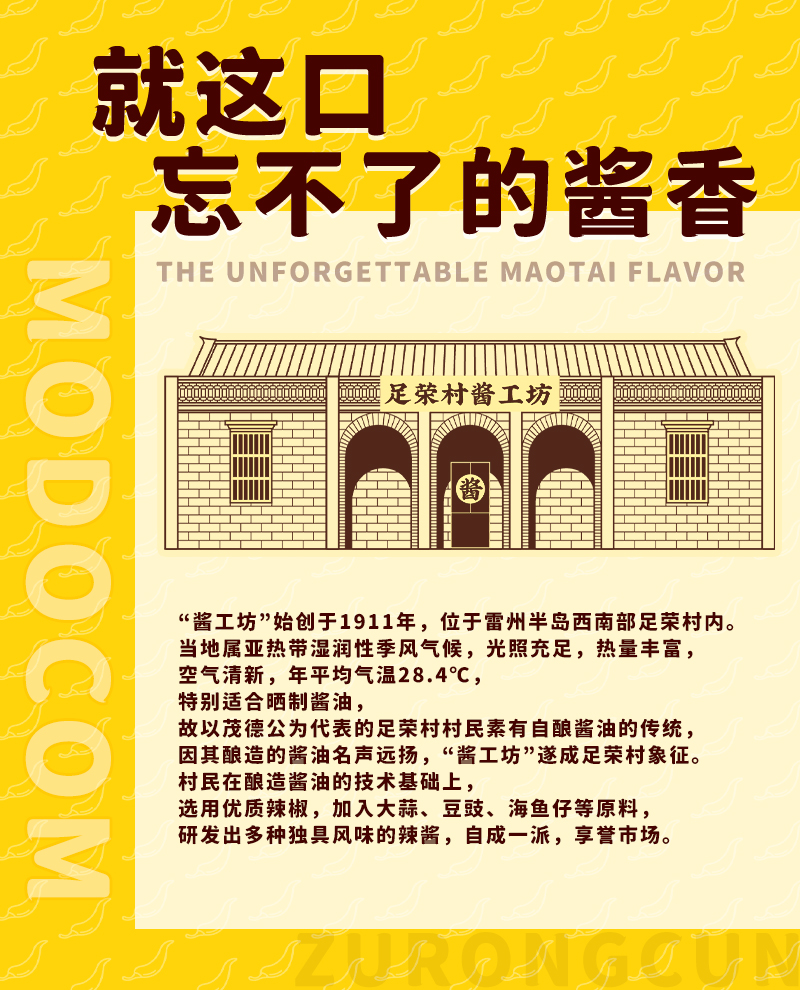 - 茂德公华南知名品牌,匠心之精心制作,保证产品品质及用户口碑;经营有:香辣酱、白酒、休闲零食、当地特产。