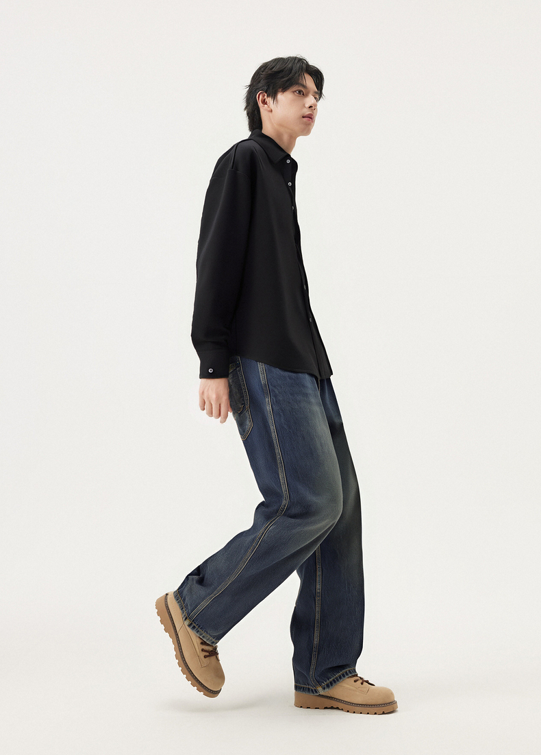 GXG男装 宽松直筒牛仔裤休闲长裤 24年冬新品G24X054084