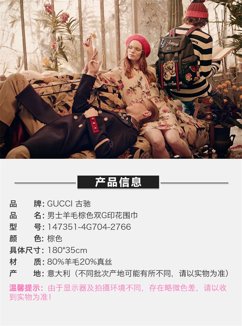 GUCCI/古驰 男士围巾米色混色羊毛 147351-4G704-2766JPY带授权招加盟代理