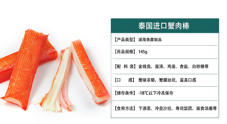 【蟹肉棒145g/袋】鱼肉含量高 手撕蟹肉、口感鲜美 即食型 寿司火锅