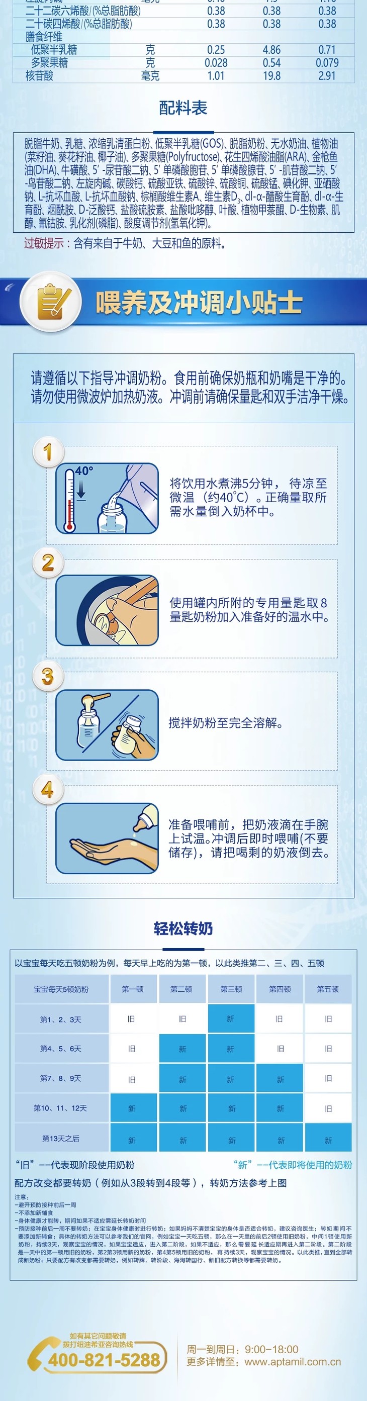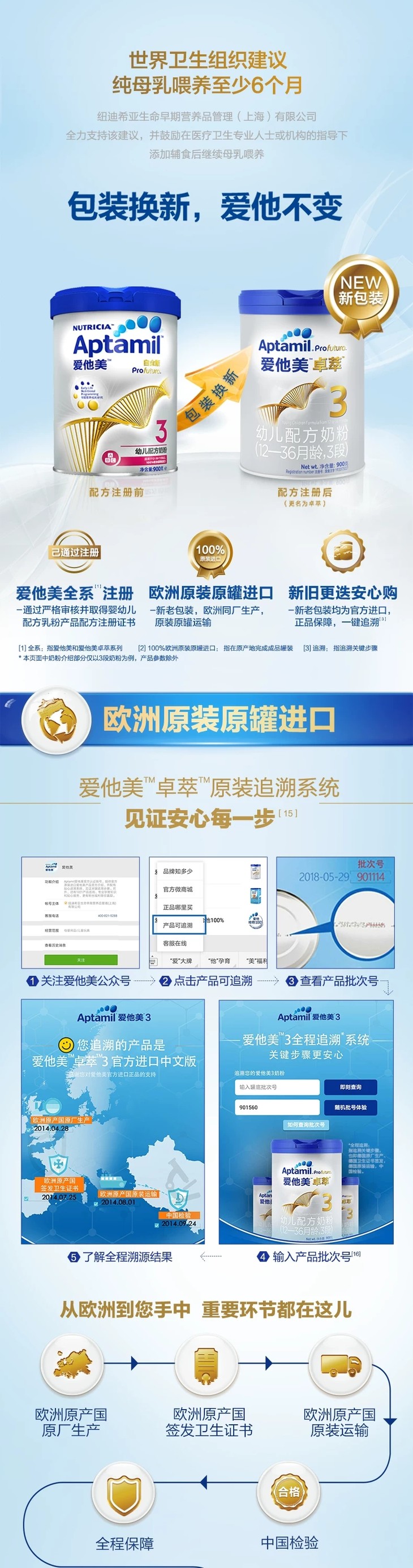 爱他美(Aptamil)卓傲幼儿配方奶粉(6-12月龄,2段) 800g