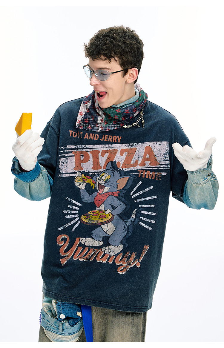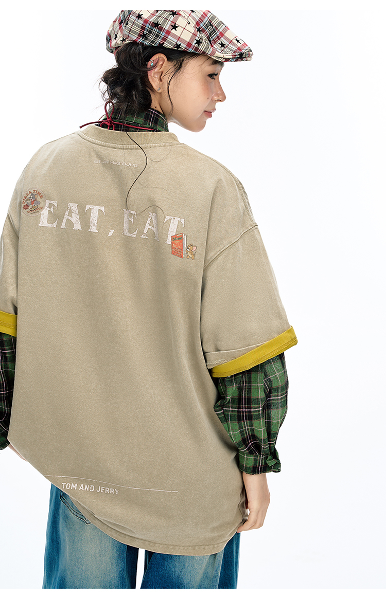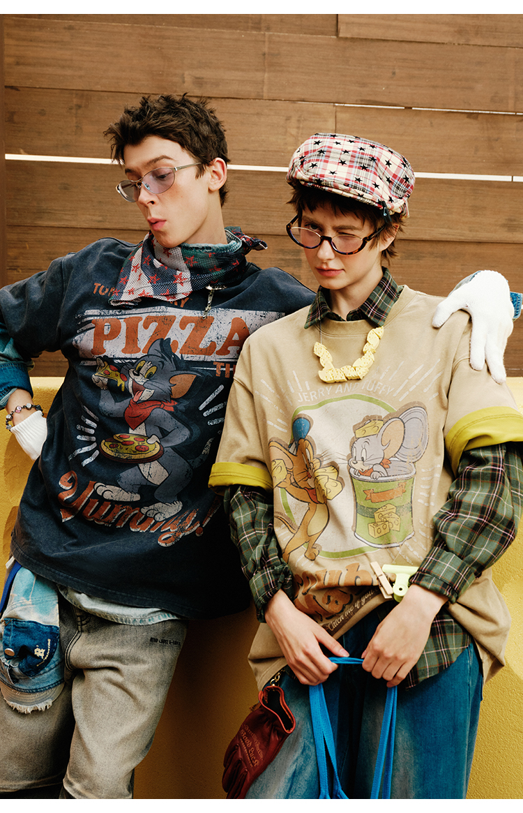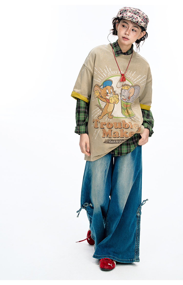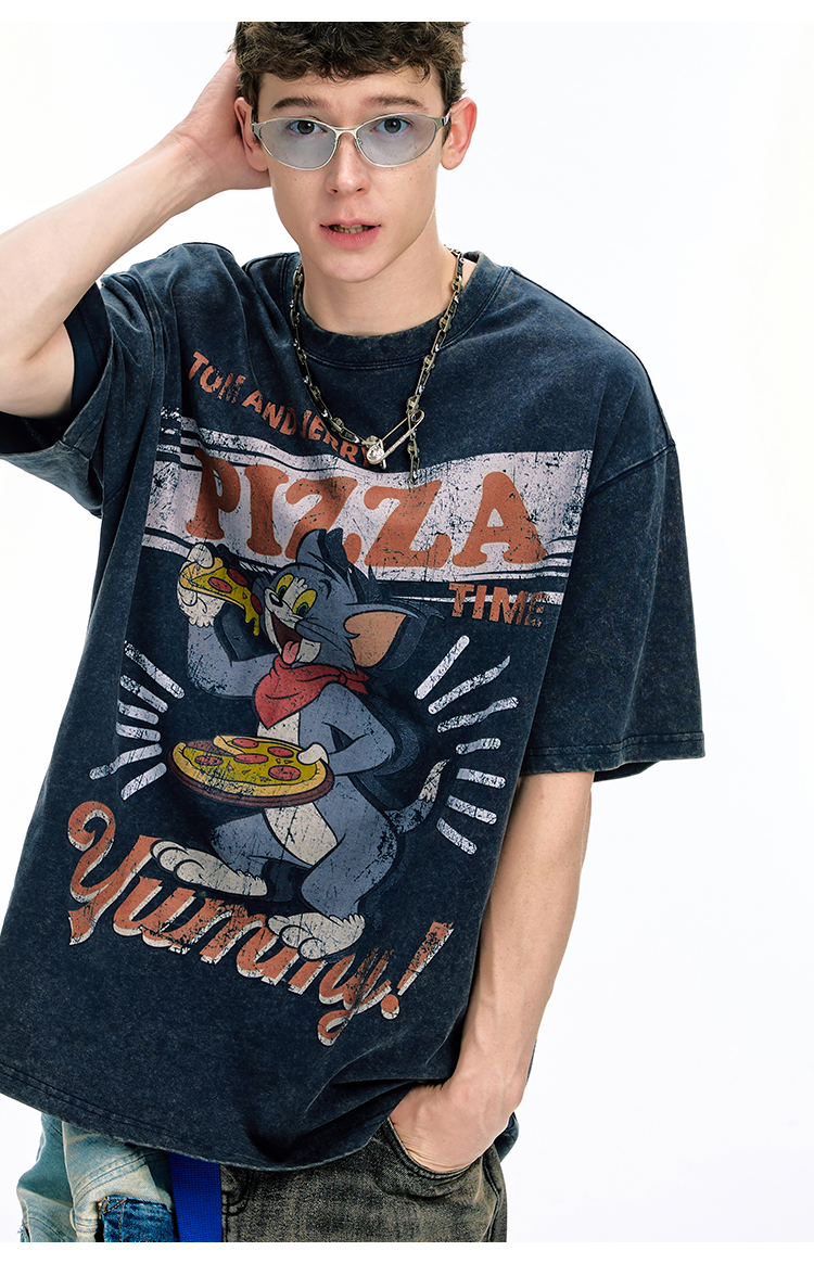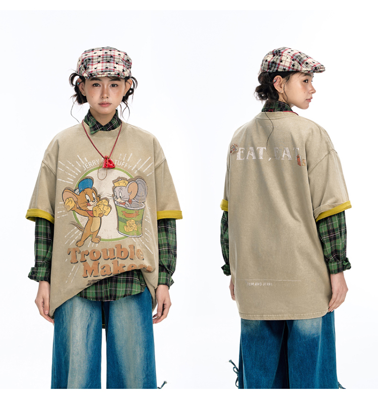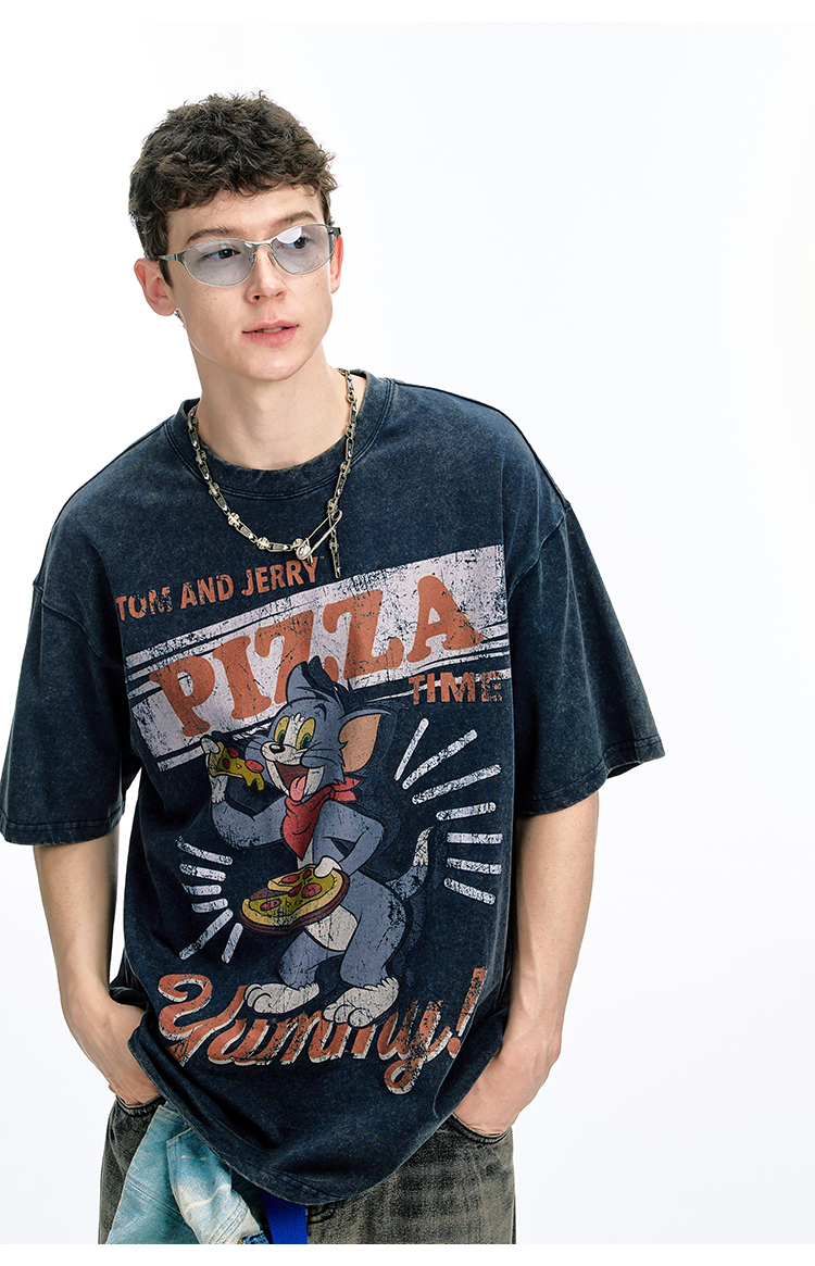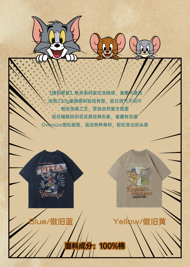 【猫和老鼠联名】 BJHG不计后果 美式短袖t恤男款夏季卡通做旧半袖t