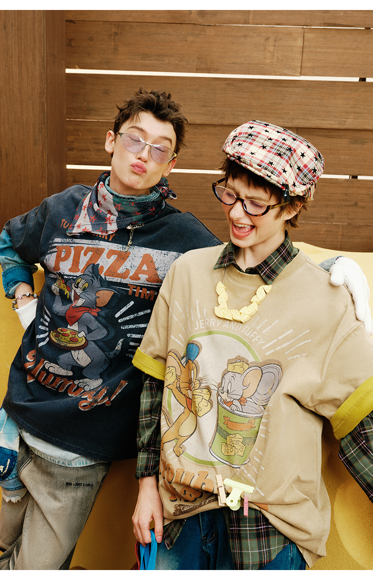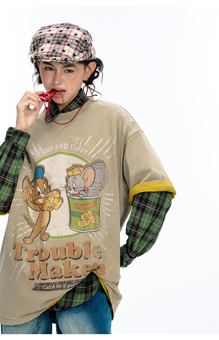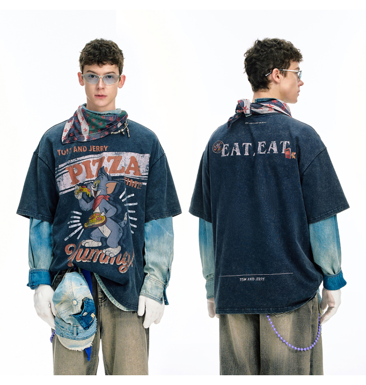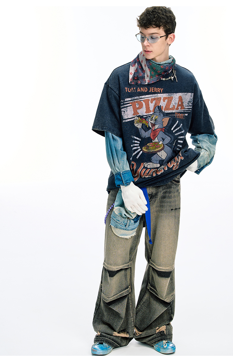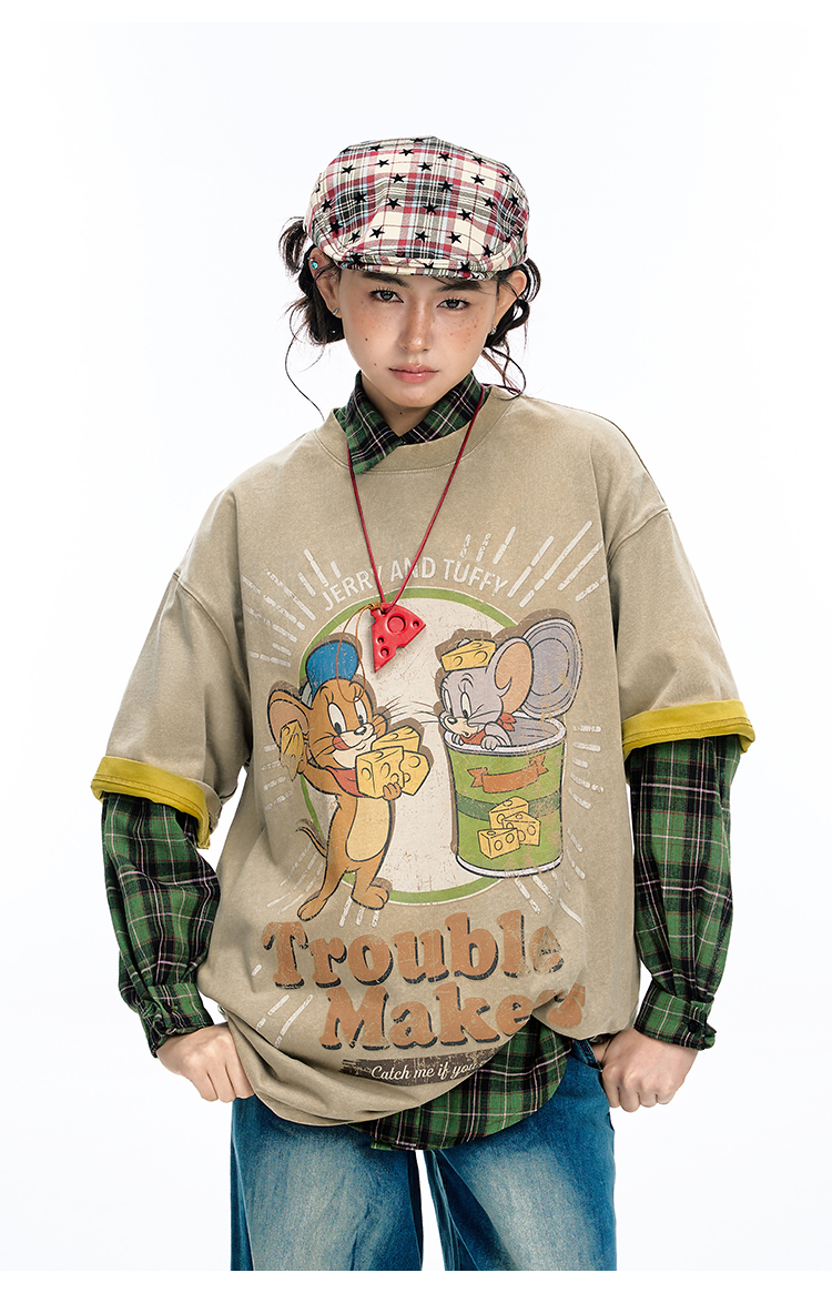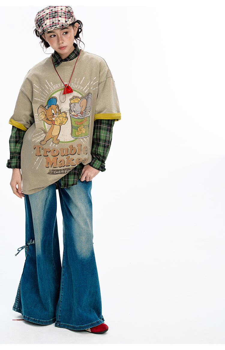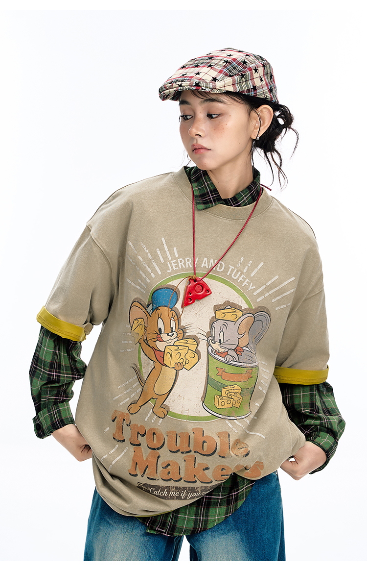 【猫和老鼠联名】 BJHG不计后果 美式短袖t恤男款夏季卡通做旧半袖t