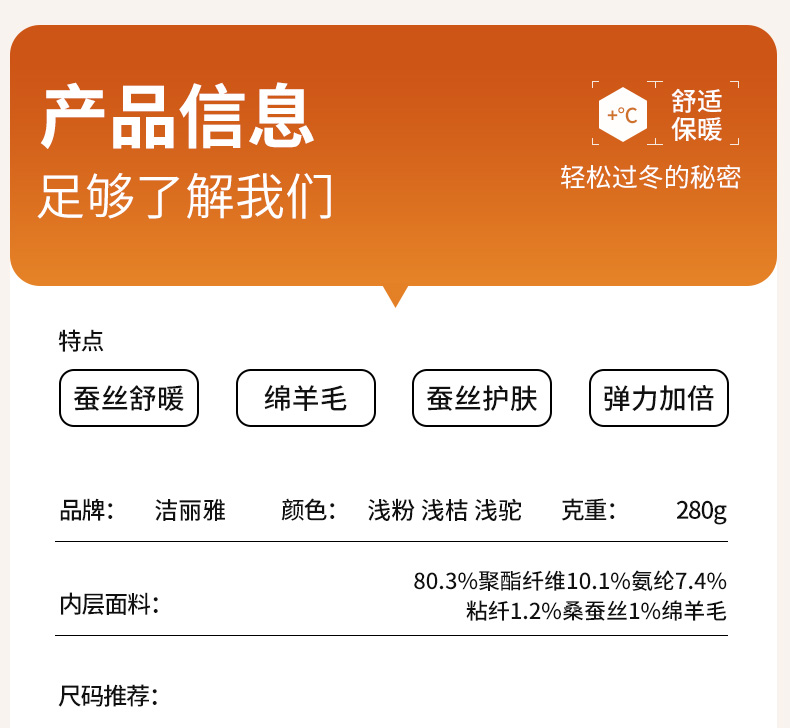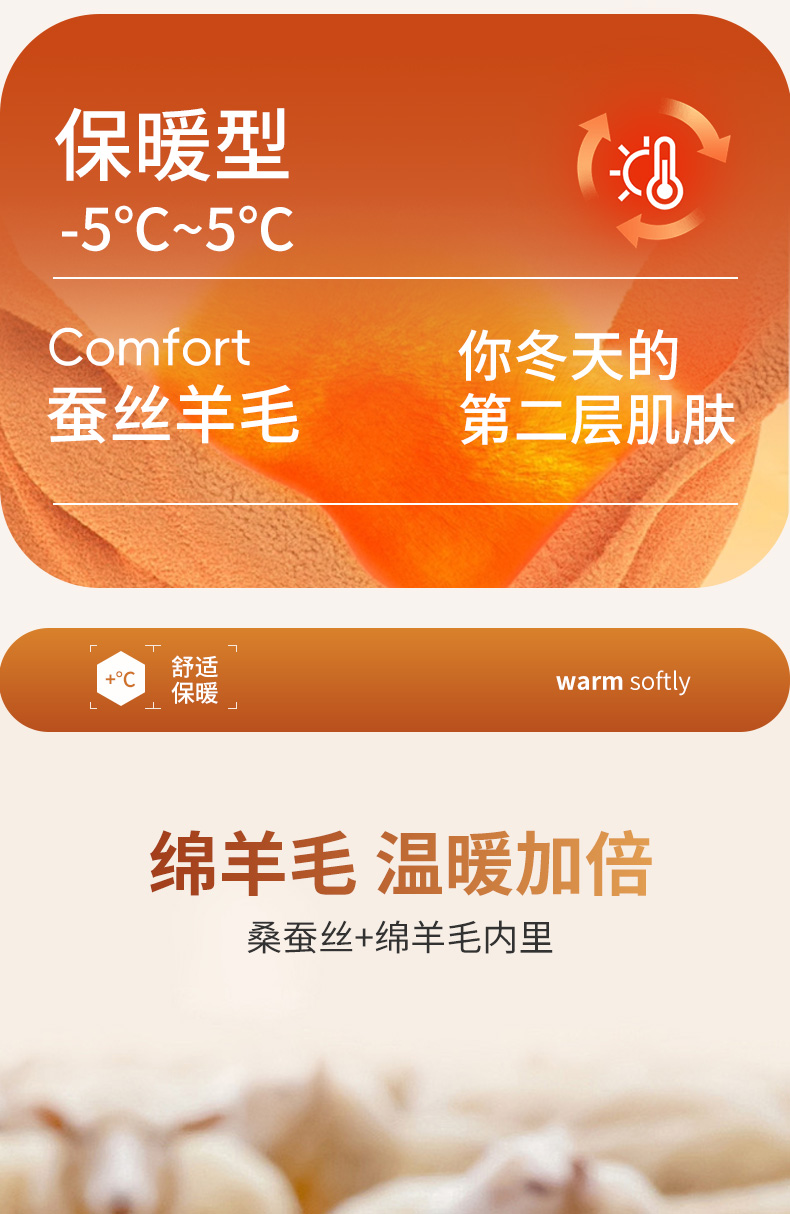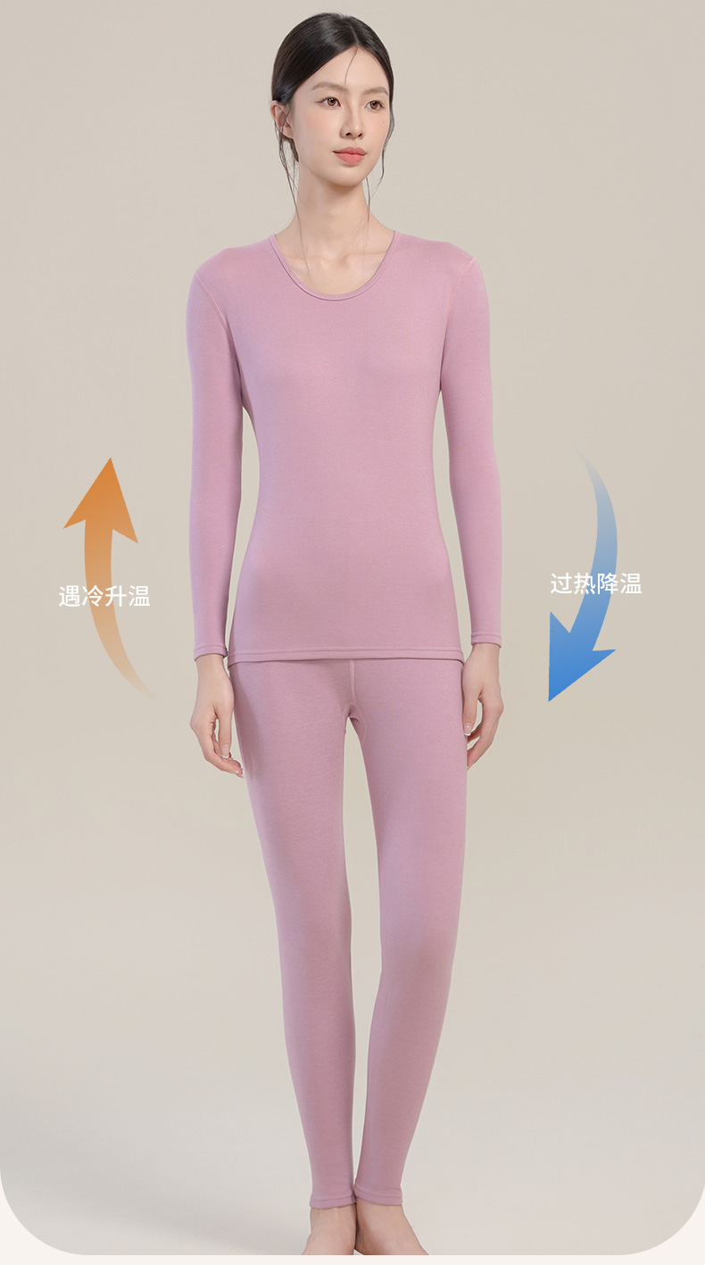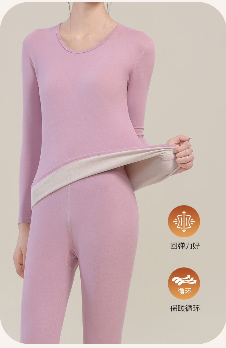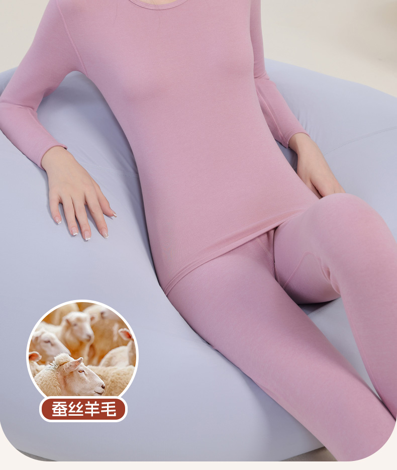 【秋冬新品】洁丽雅女士蚕丝羊毛保暖内衣舒适亲肤加绒加厚套装女