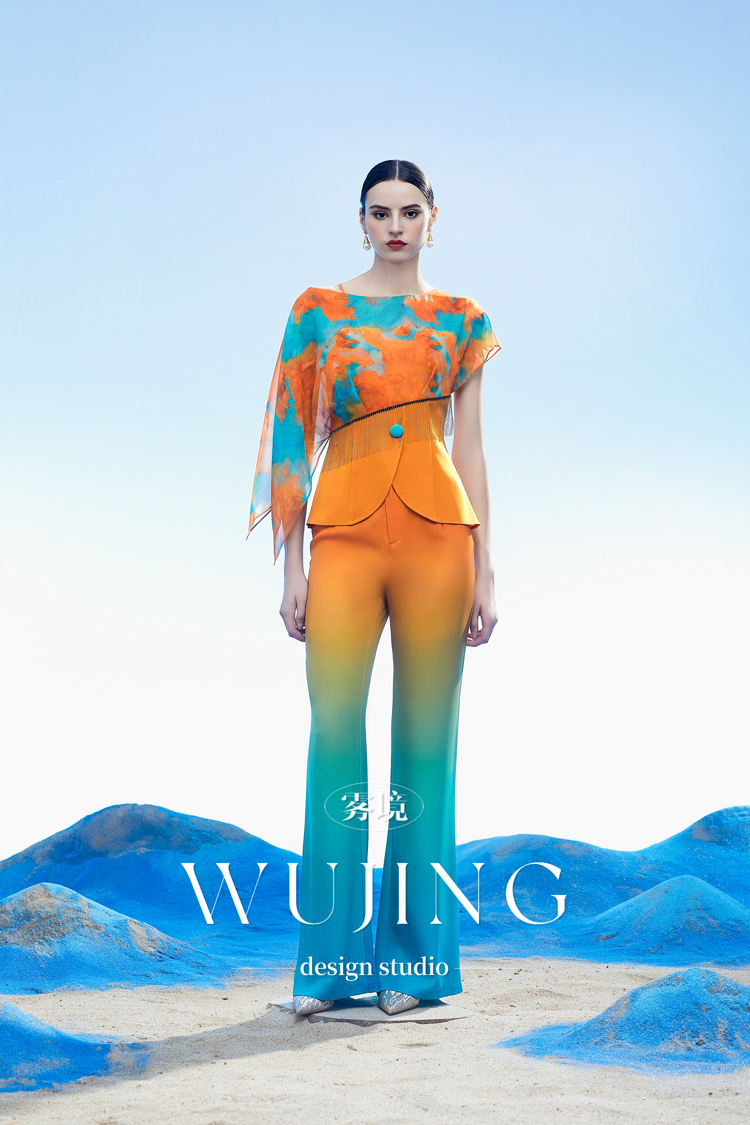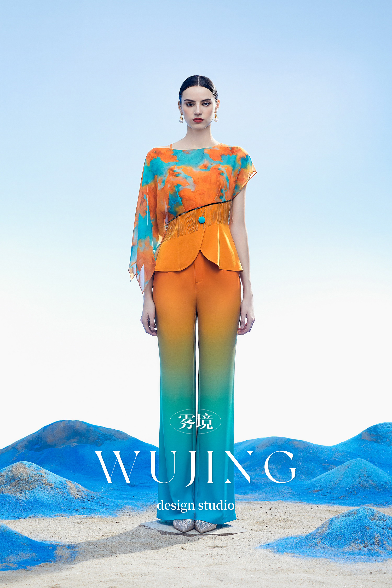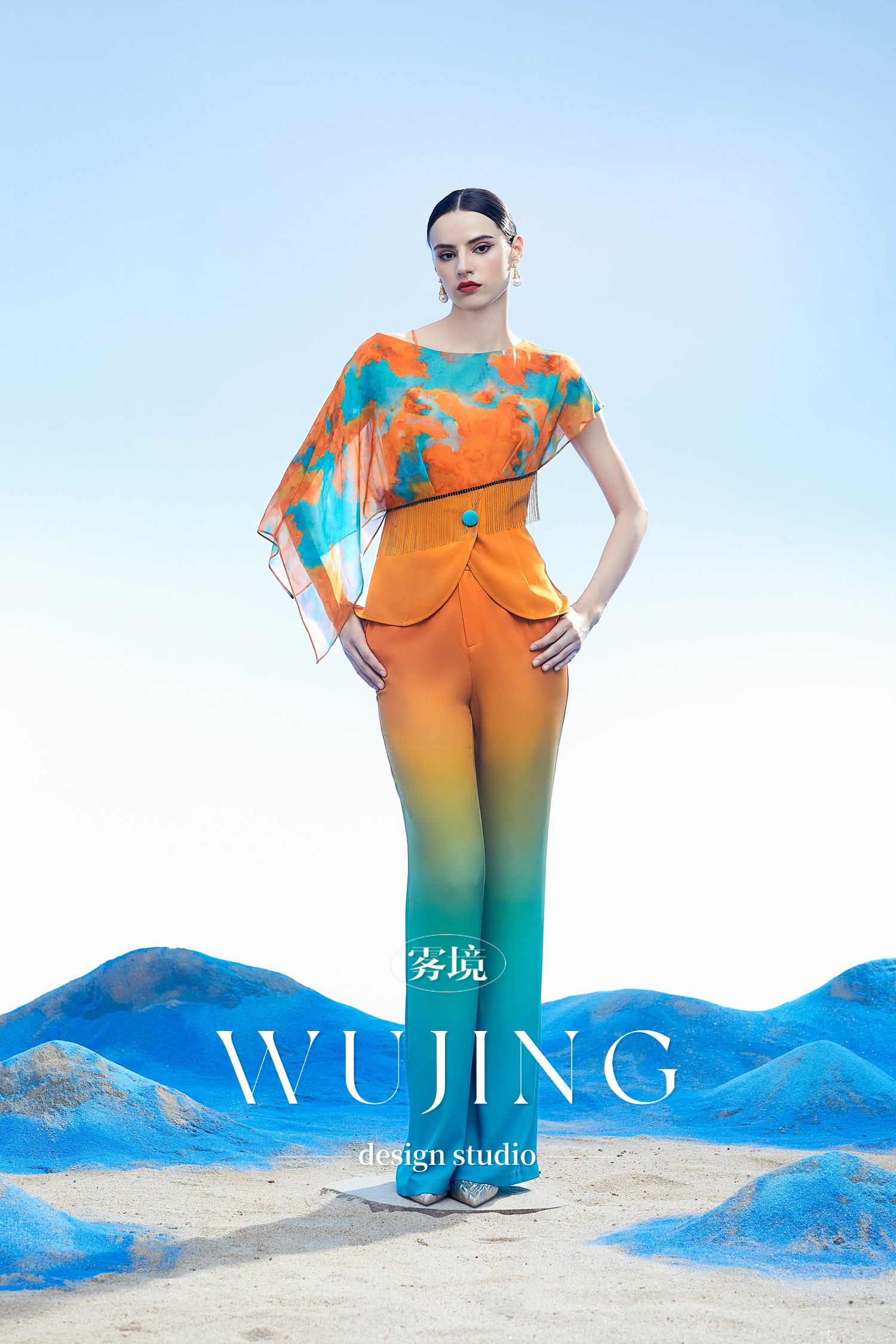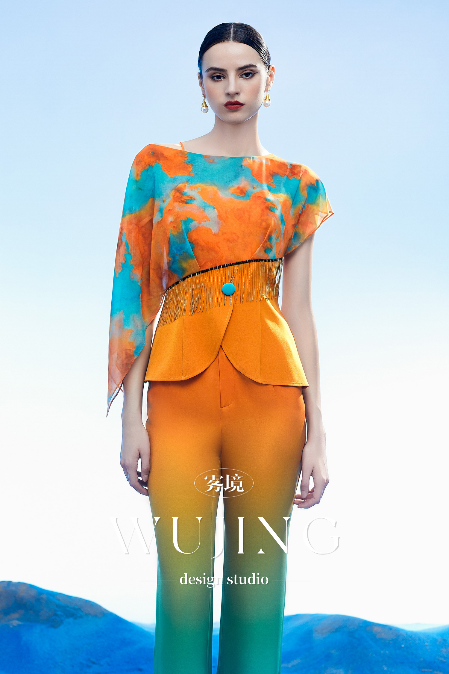 3204001 空桑秘境 韩国进口水晶乔其纱进口纹理蜂窝缎上衣 雾境