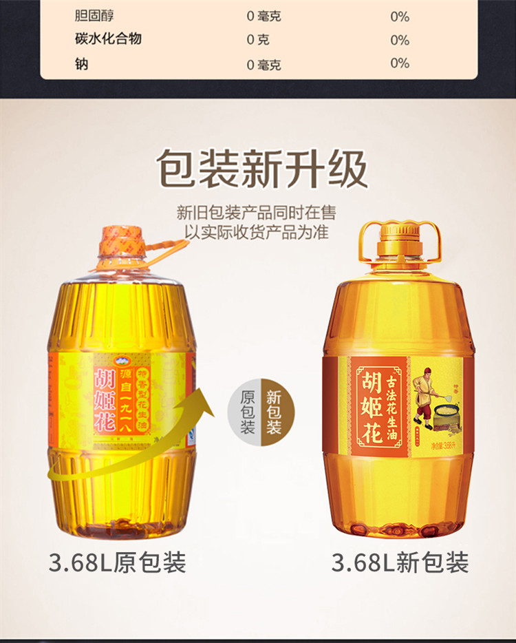 胡姬花4.98L(古法3.68L+古法花生油900ml+小榨花生油400ml)-YS