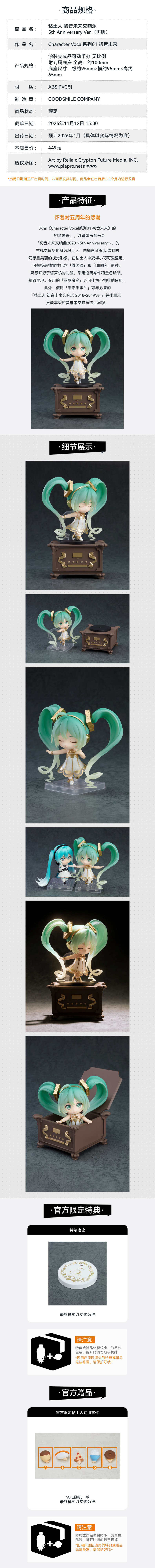 【GSC预售定金】粘土人 初音未来交响乐 5th Anniversary Ver.(再贩)附官方限定特典