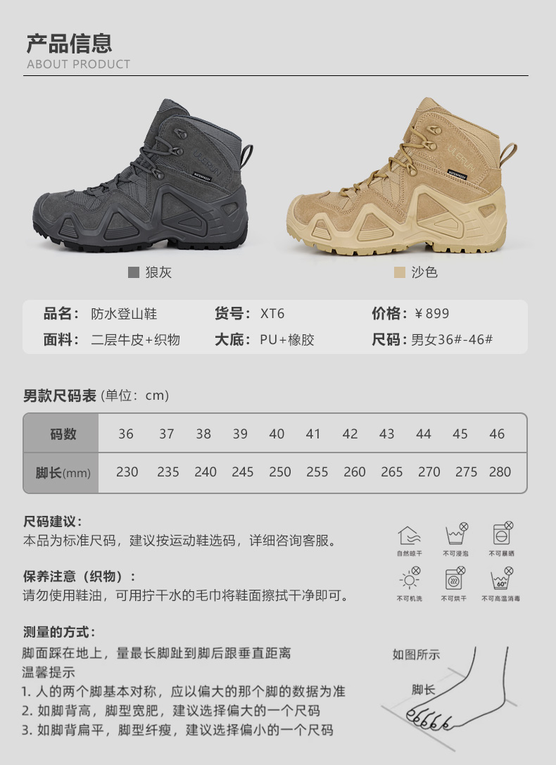 【又乐】户外高帮登山鞋防水高帮可登初级雪山XT6