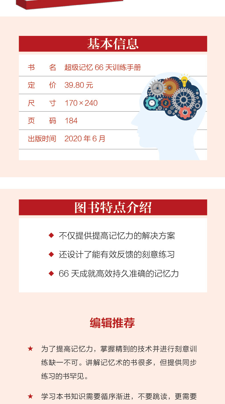 2020新书 超级记忆66天训练手册 石伟华 快速提高记忆力学习方法书籍 青少年中小学生记忆力训练指南 儿童大脑智力开发高效学习书