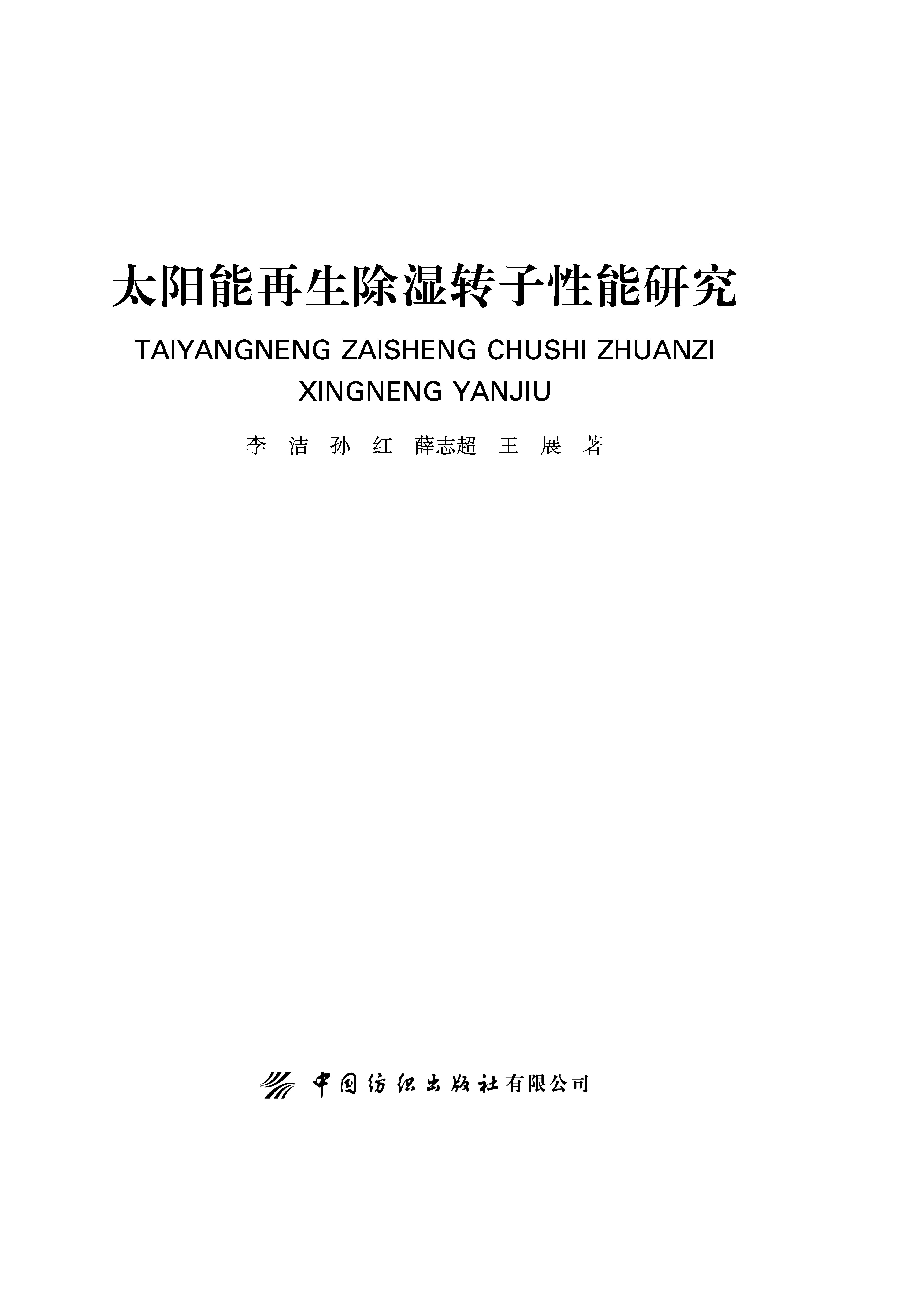 2020新书 太阳能再生除湿转子性能研究 李洁 太阳能再生除湿转子性能研究太阳能转化技术太阳能除湿空调系统技术研究人员参考用书