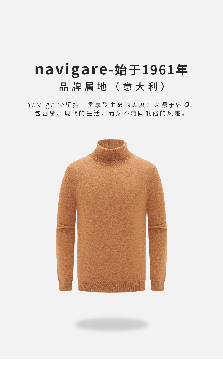 纳维凯尔Navigare意大利小帆船新款羊绒衫男高领毛衣打底衫长袖针织衫 1237081011