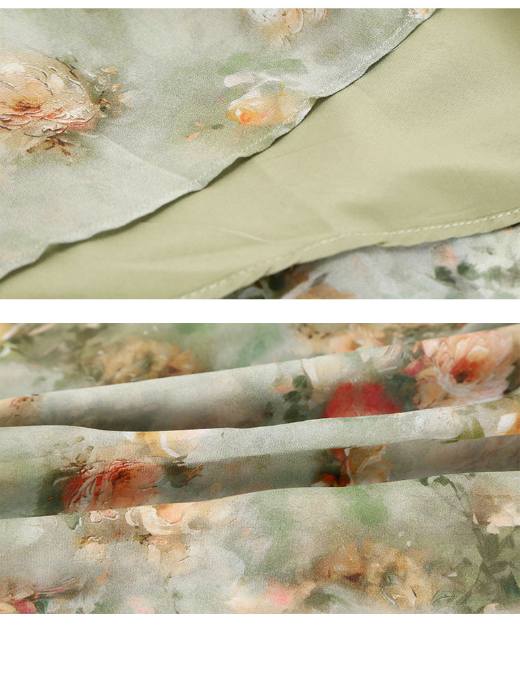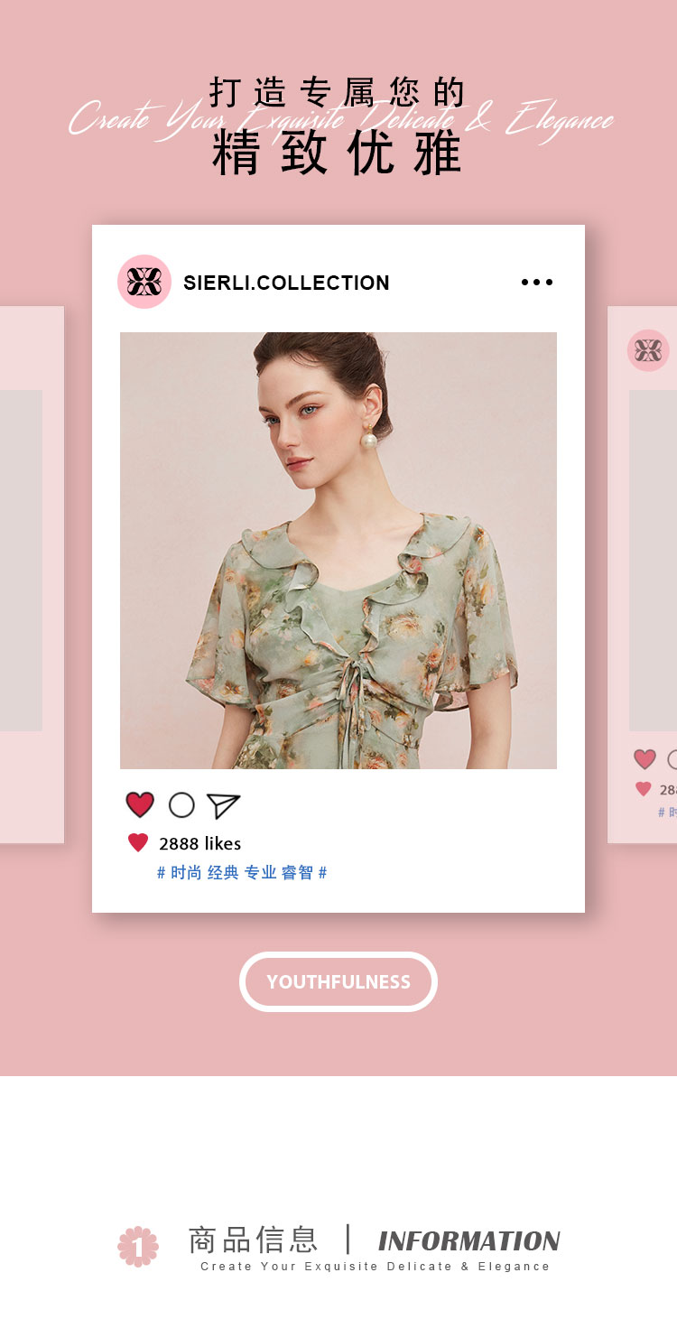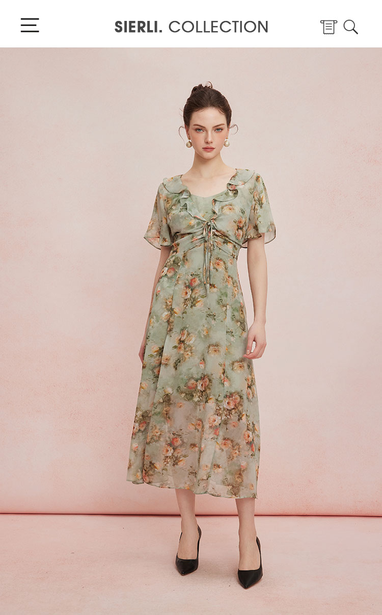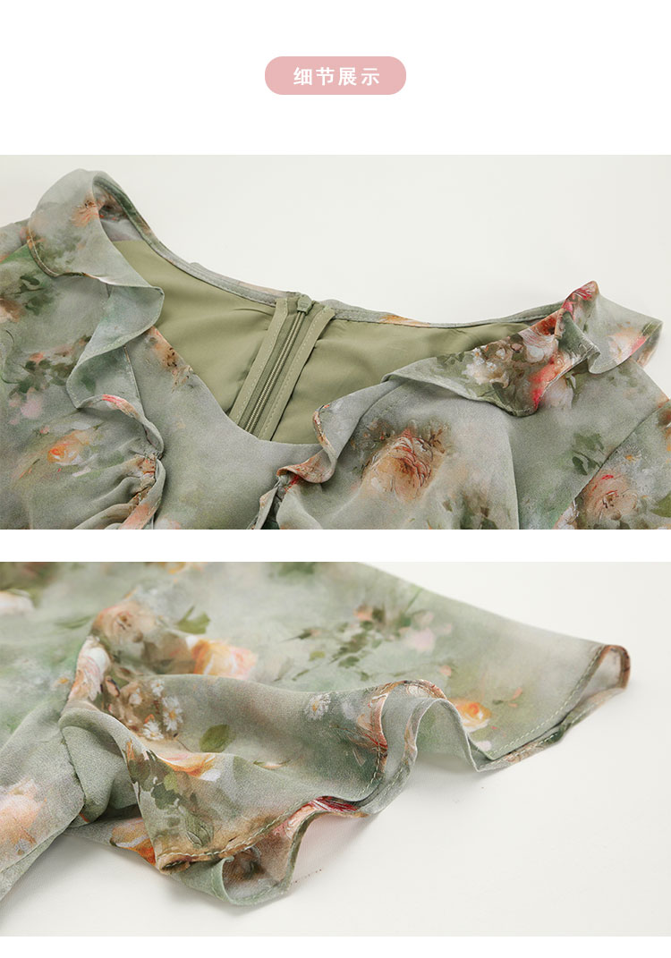 QF829斯尔丽25新款法式浪漫高腰节荷叶边女人味十足散大摆碎花连衣裙