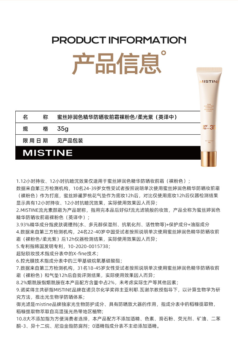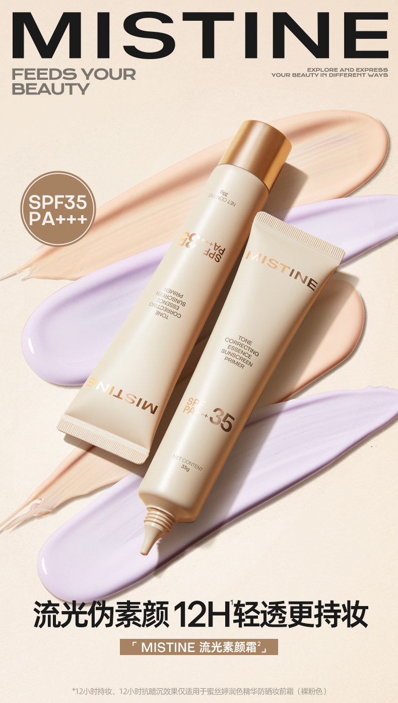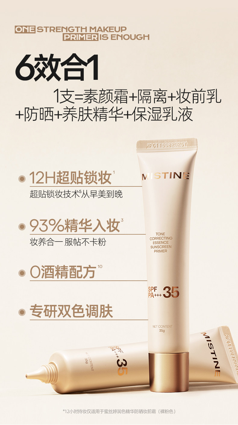 [六效合一] Mistine流光素颜霜 防晒隔离遮瑕妆前隐毛孔提亮肤色伪素颜蜜丝婷