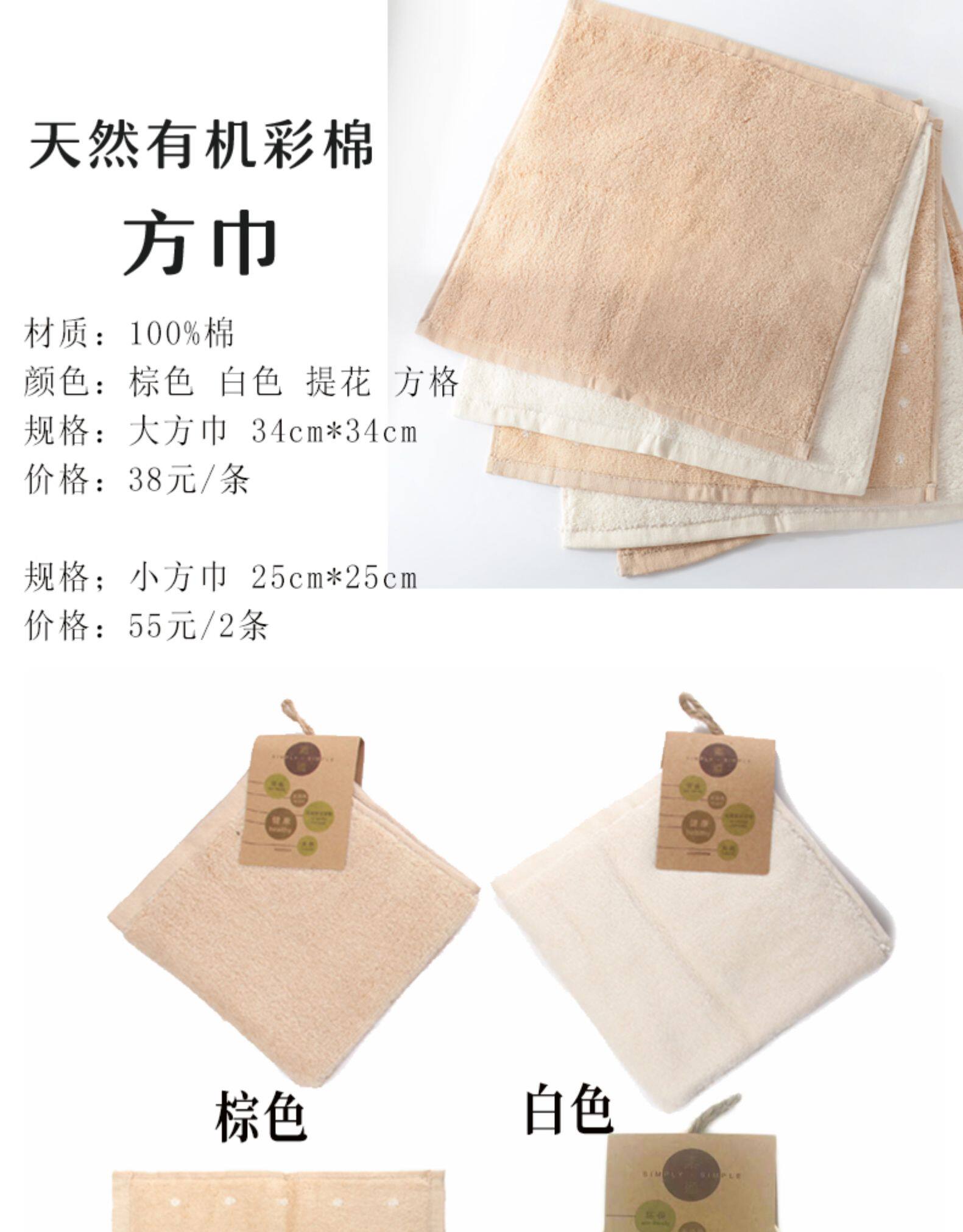 有机彩棉加厚面巾家用方巾 大(34*34cm)【孕婴强烈推荐】
