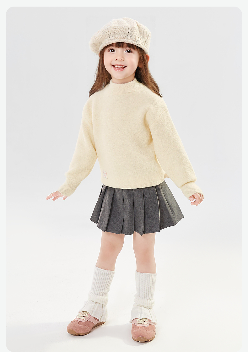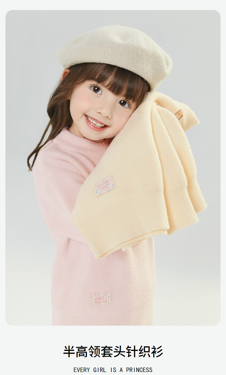 笛莎Deesha 童装女童毛衣2024冬季新款小童半高领套头针织衫