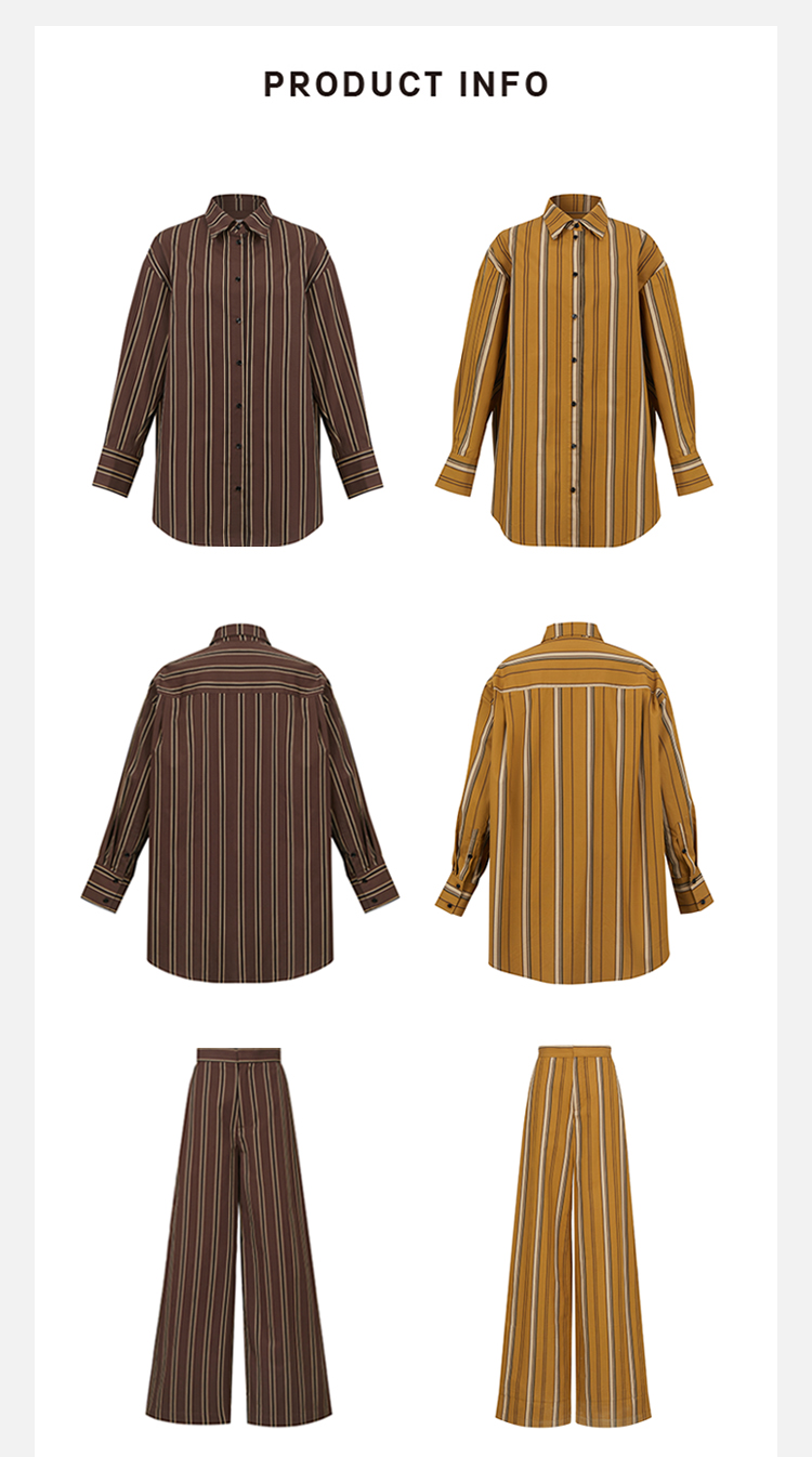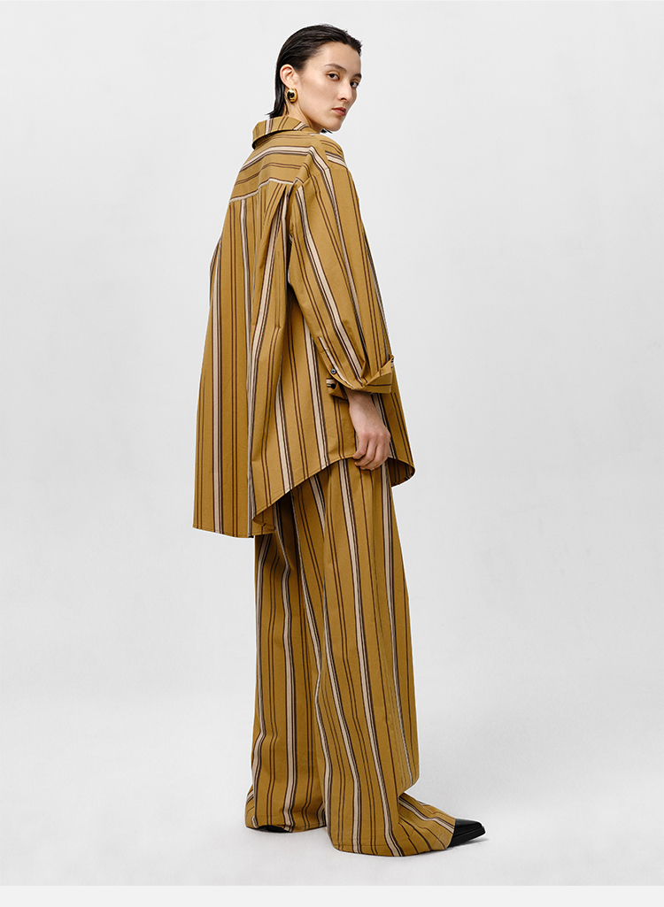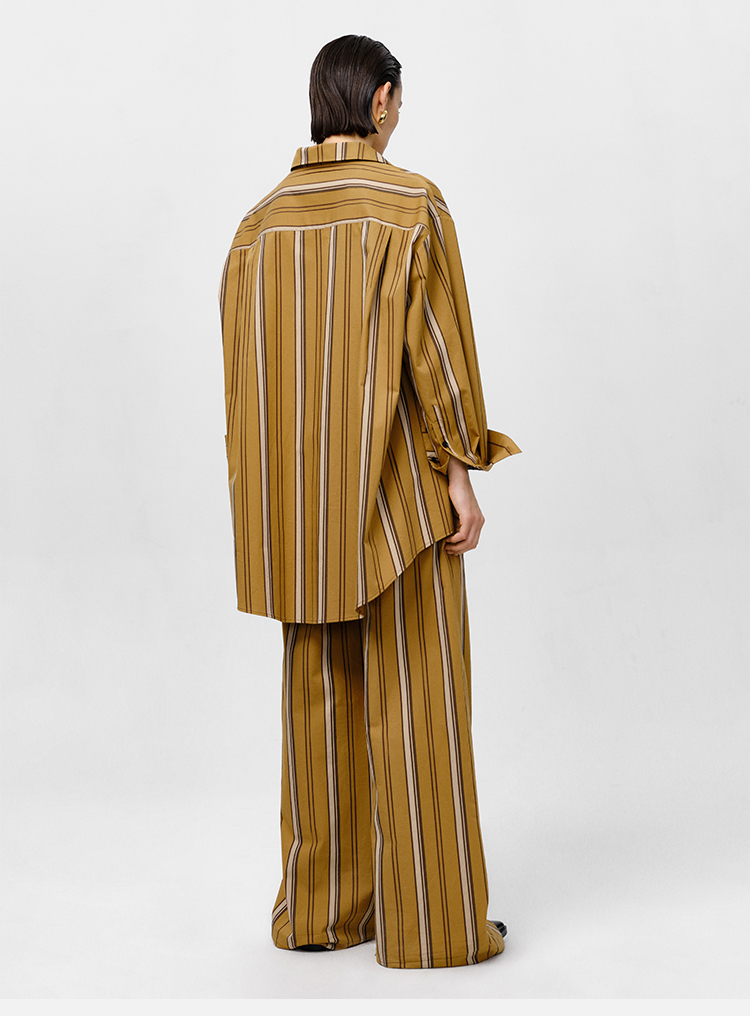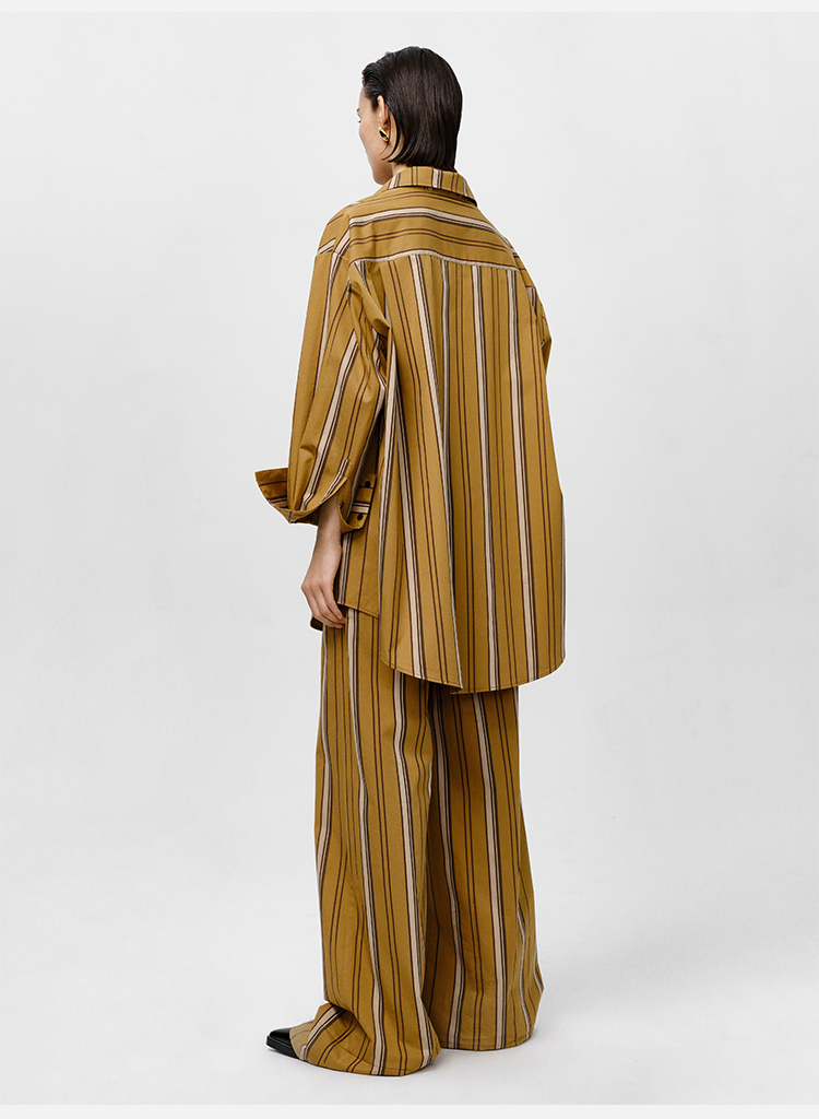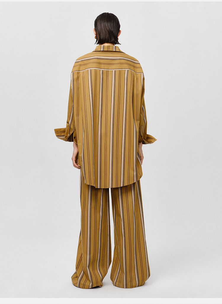 HIDEMI条纹色织水洗棉衬衫套装 衬衫/阔腿裤 姜黄色/棕色