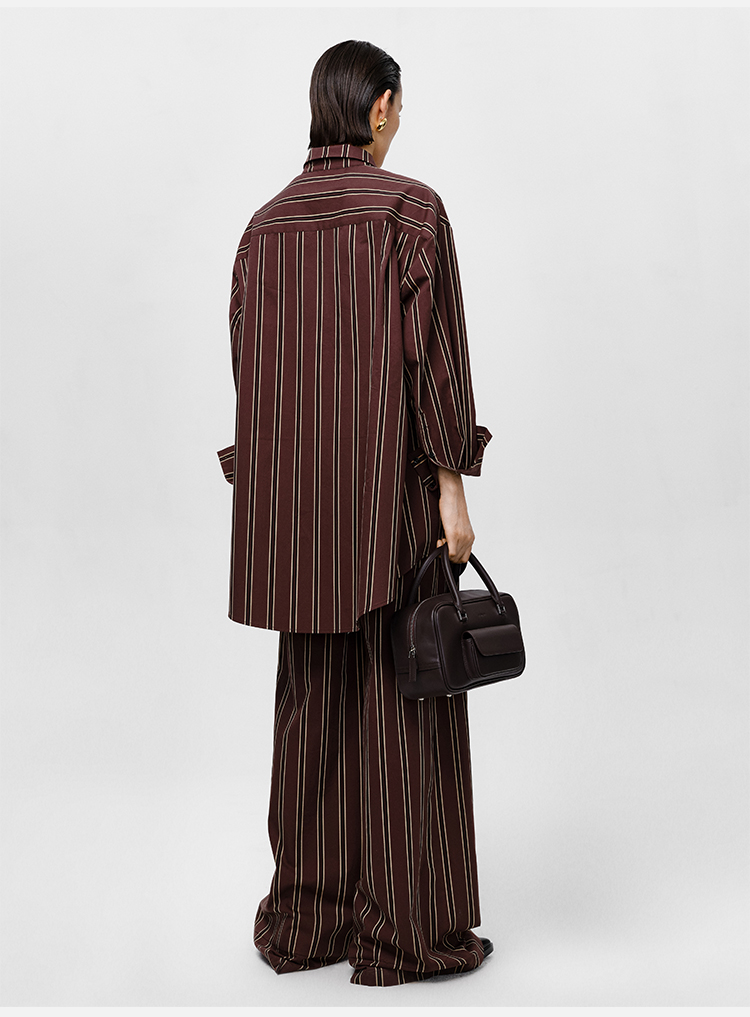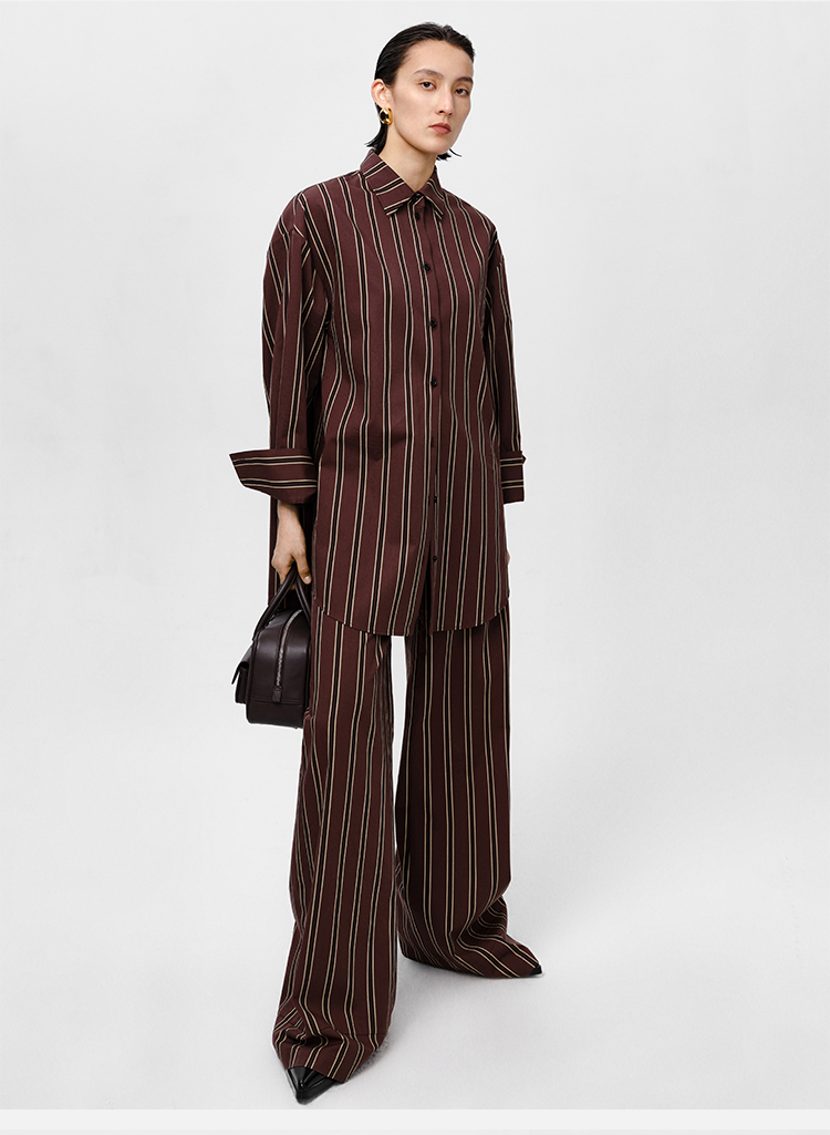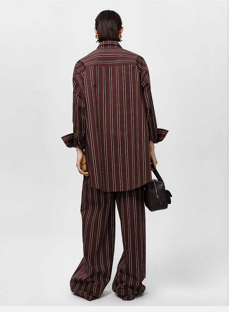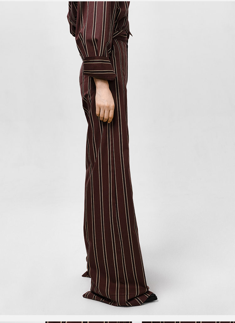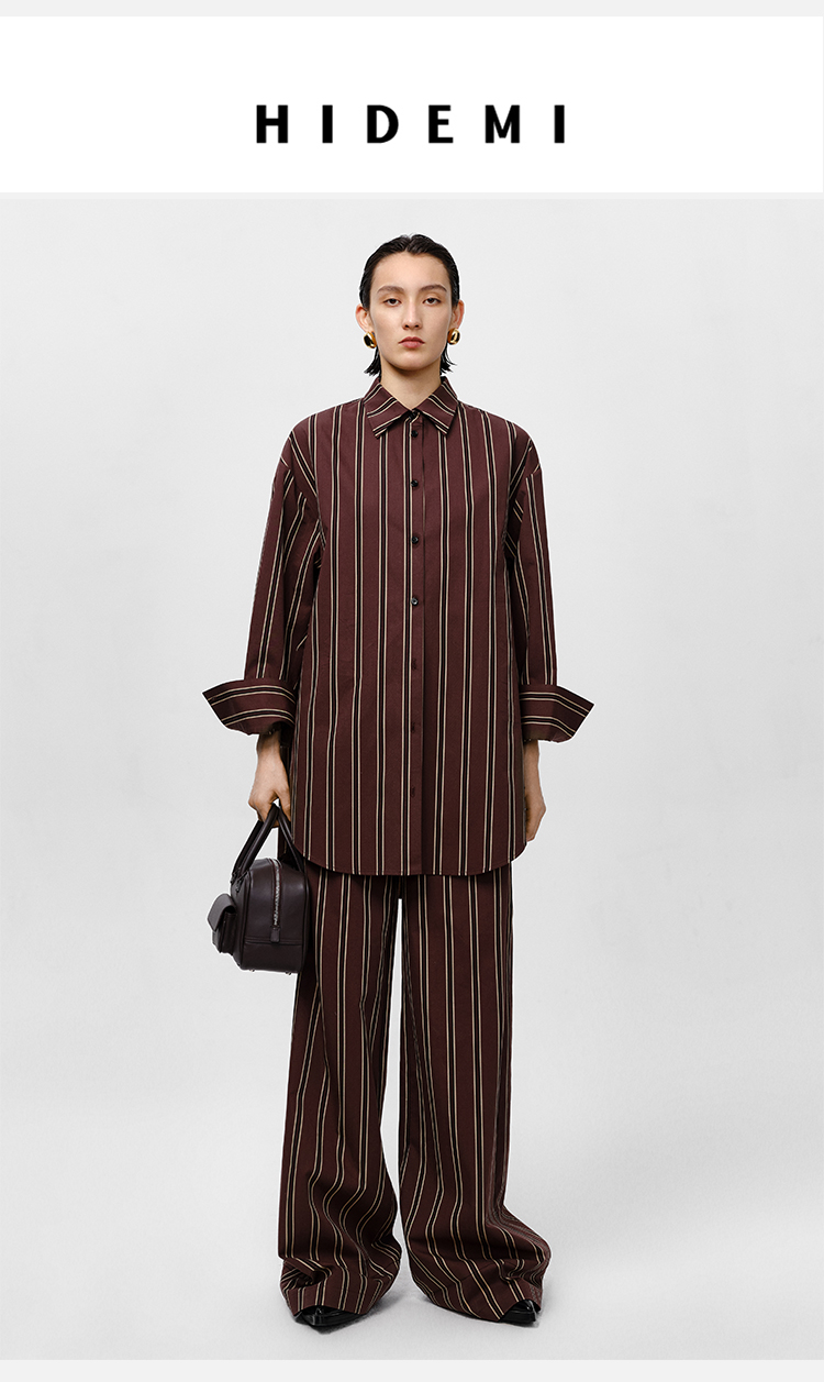 HIDEMI条纹色织水洗棉衬衫套装 衬衫/阔腿裤 姜黄色/棕色