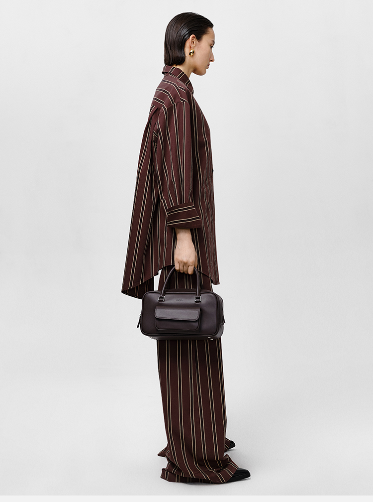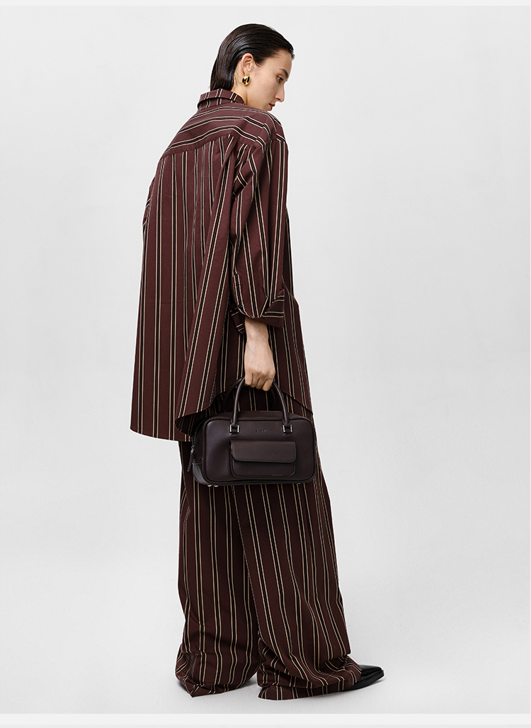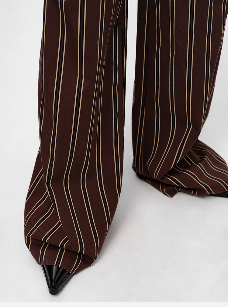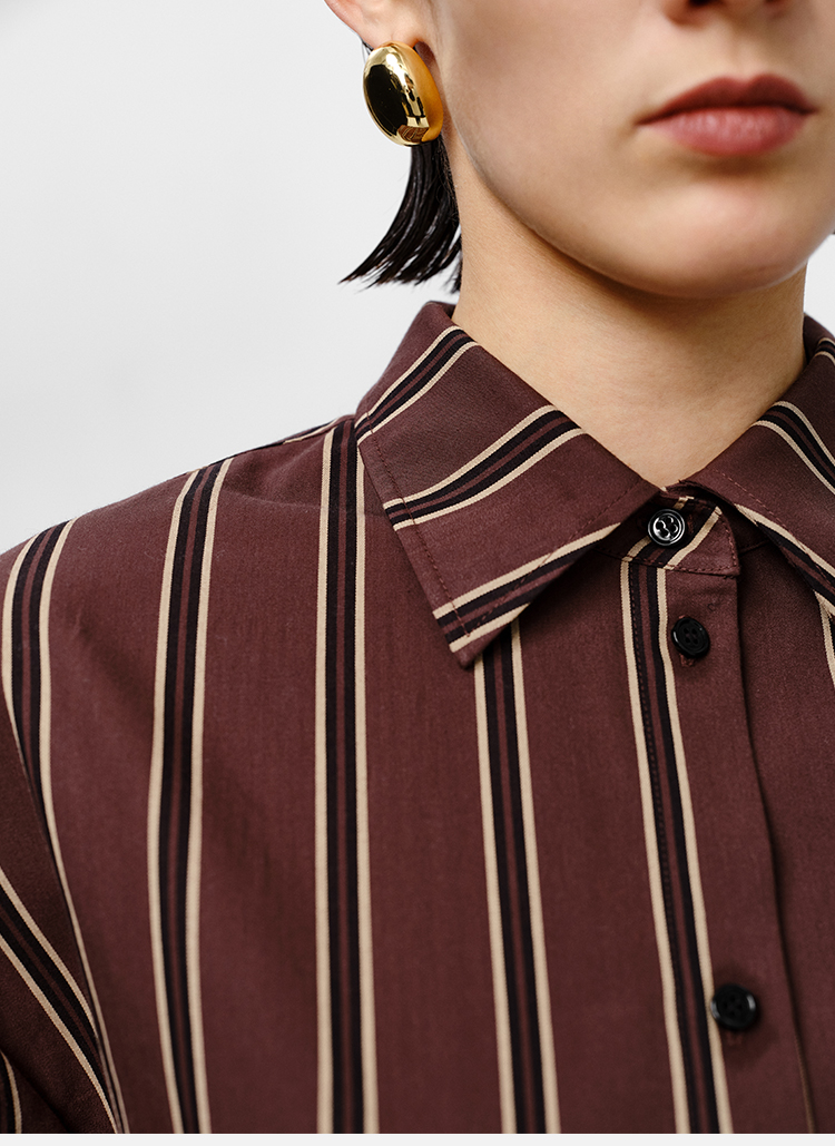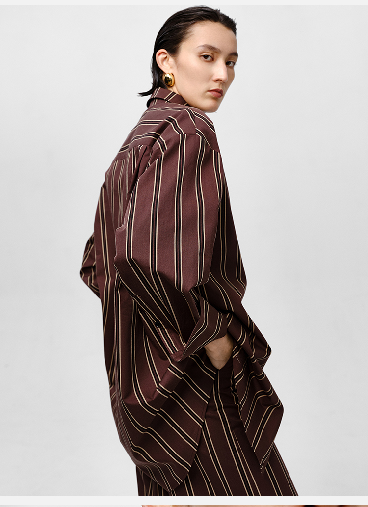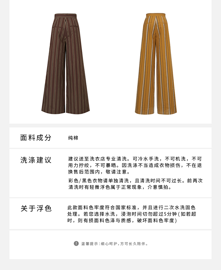 HIDEMI条纹色织水洗棉衬衫套装 衬衫/阔腿裤 姜黄色/棕色
