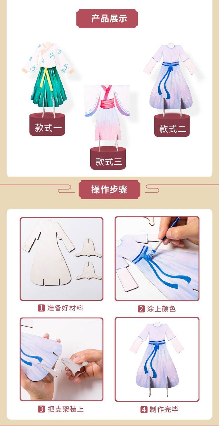 木质立体手工服装 美可diy材料包自制木质涂色中国风儿童益智彩绘服饰