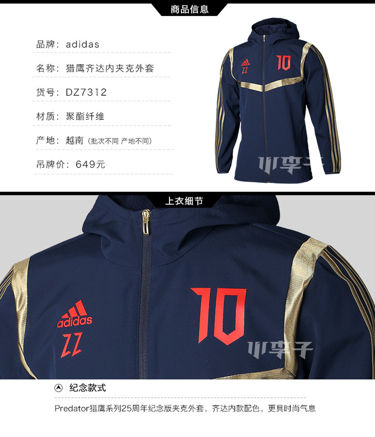 小李子:专柜正品阿迪达斯猎鹰齐达内配色长袖连帽外套长裤DZ7312