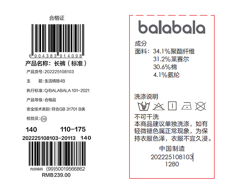 【商场同款】巴拉巴拉童装儿童长裤夏季薄款2025男大童束脚防蚊裤
