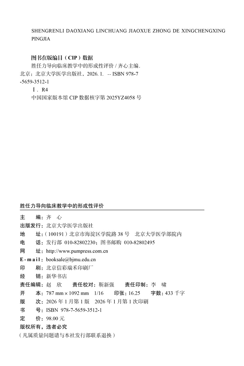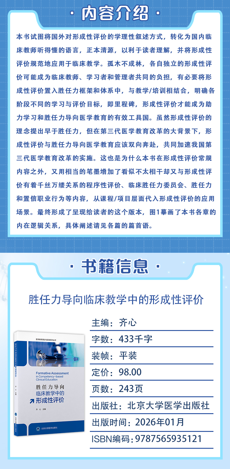 胜任力导向临床教学中的形成性评价 医学教育理论与实践系列丛书 齐心 主编 临床医学 教学评估 9787565935121 北京大学医学出版社