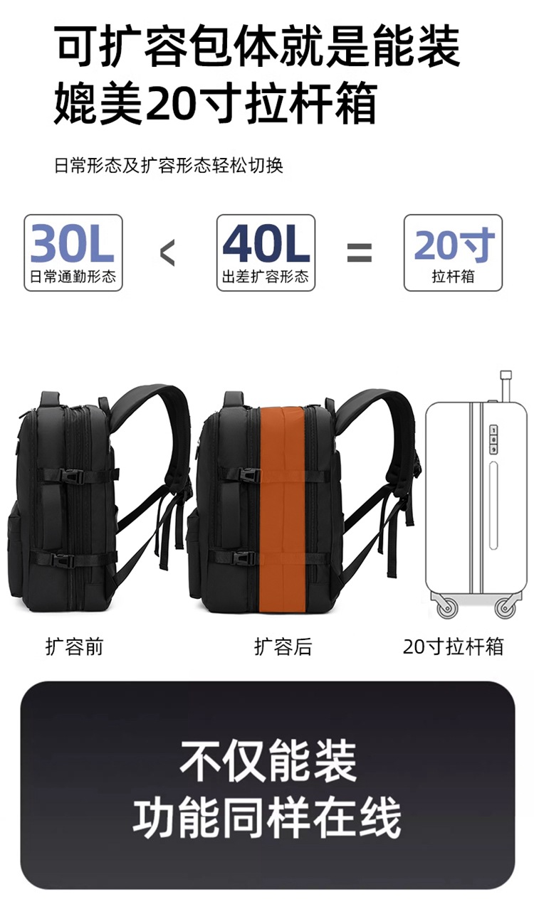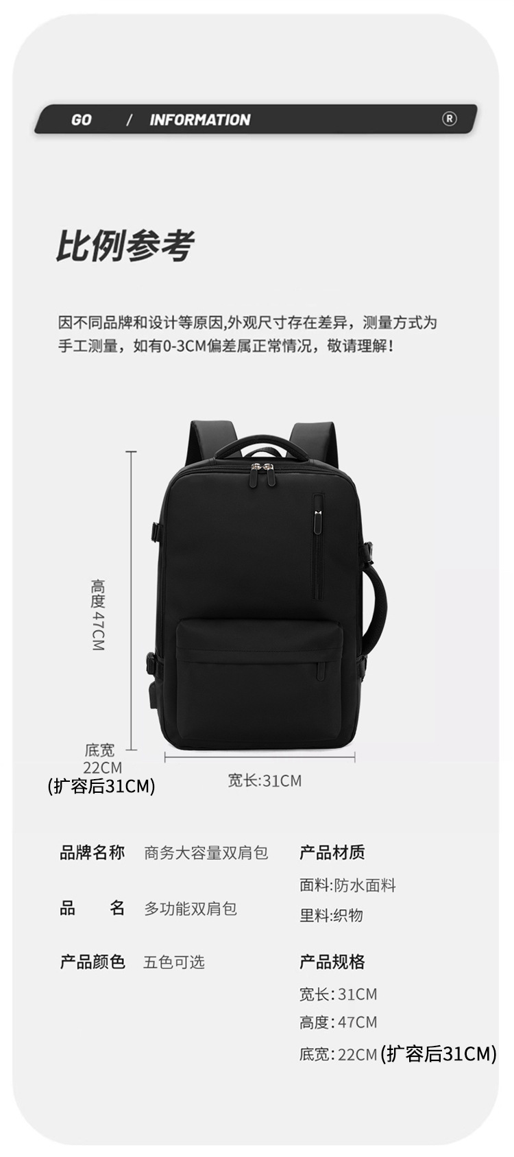 休闲可扩容大容量旅行双肩包 出差大容量高中生大学生电脑包