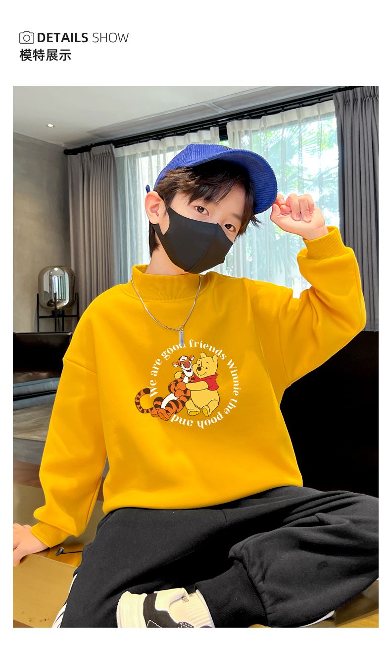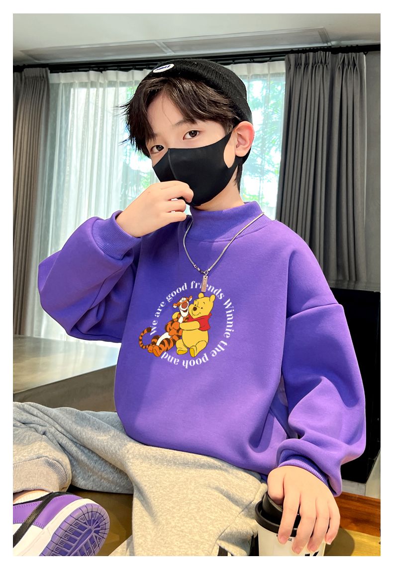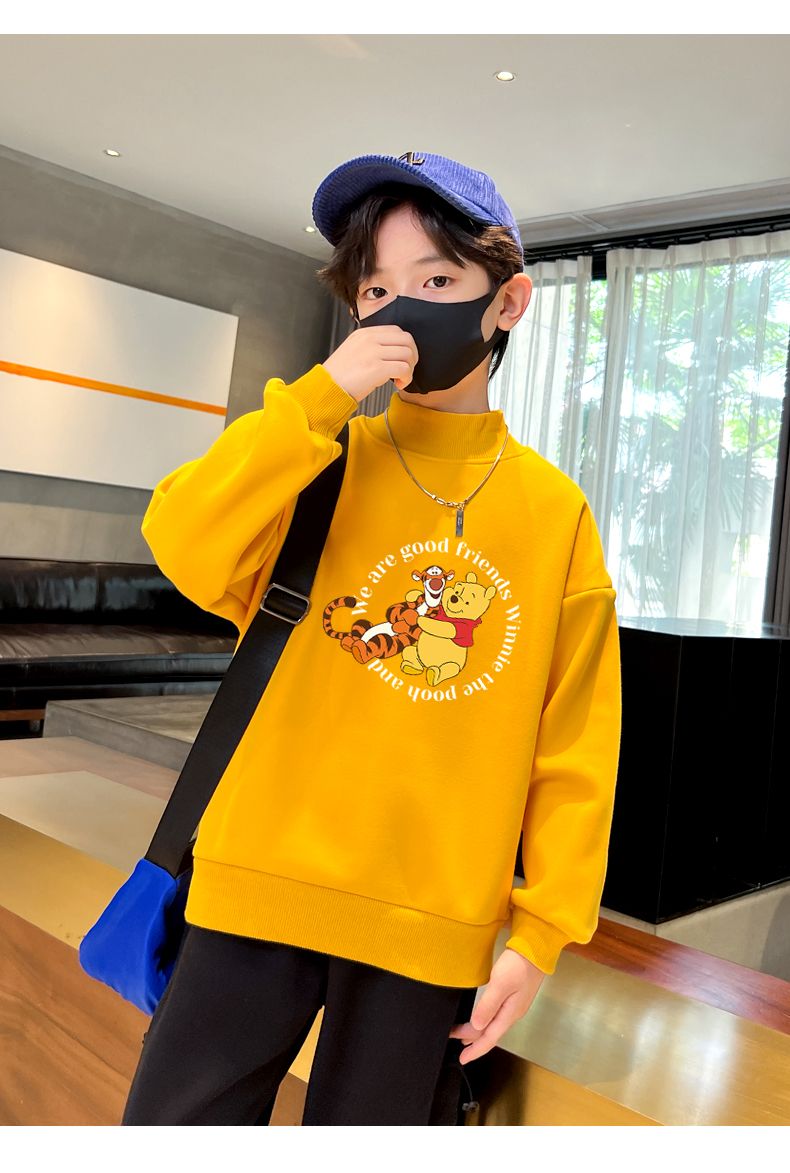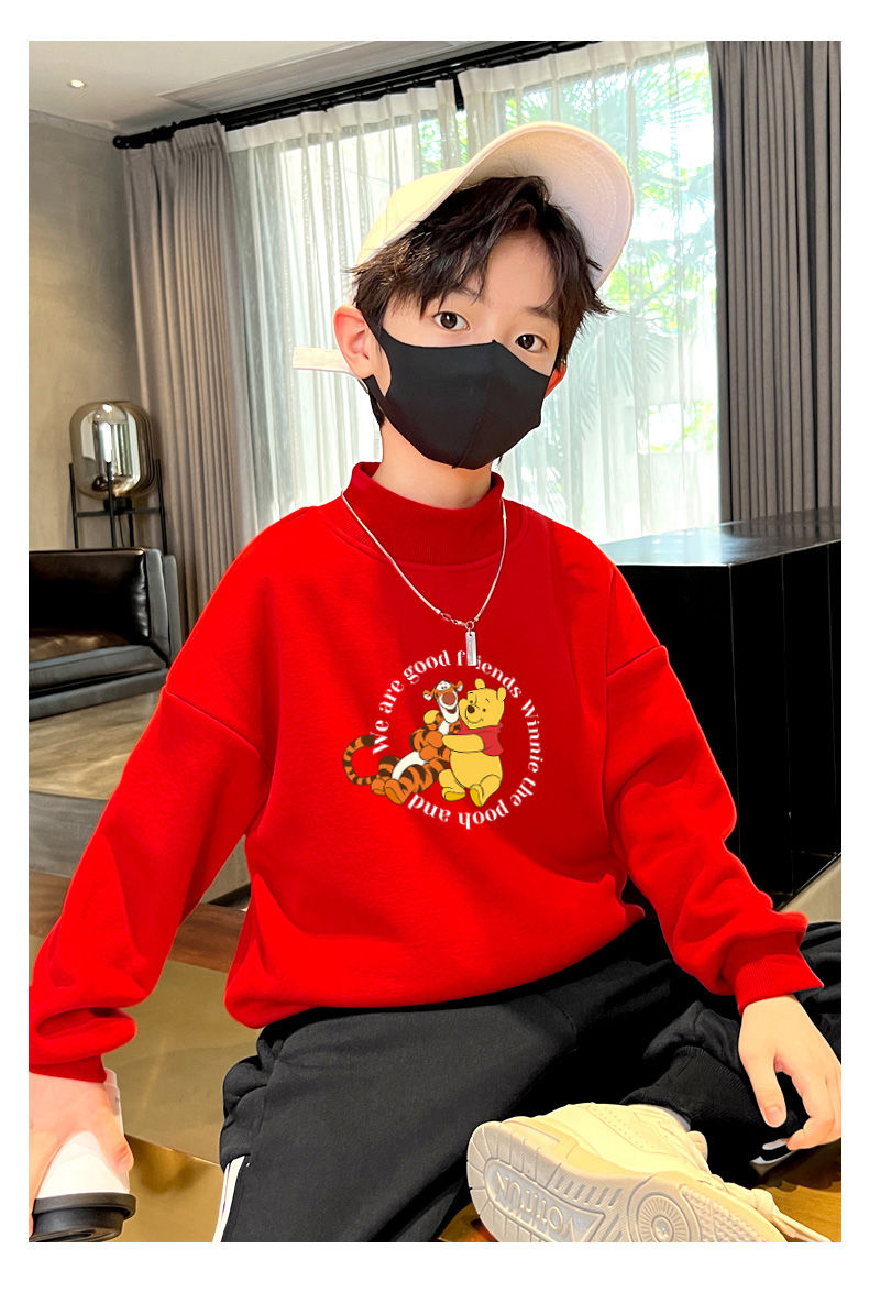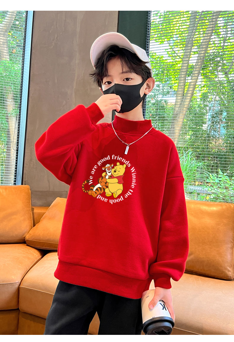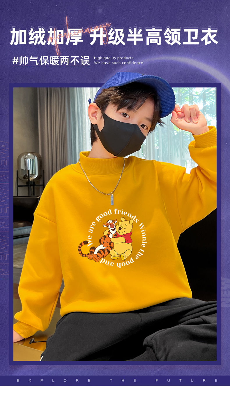 迪士尼儿童加绒卫衣秋冬2022新款冬季男童上衣加厚保暖衣大童衣服