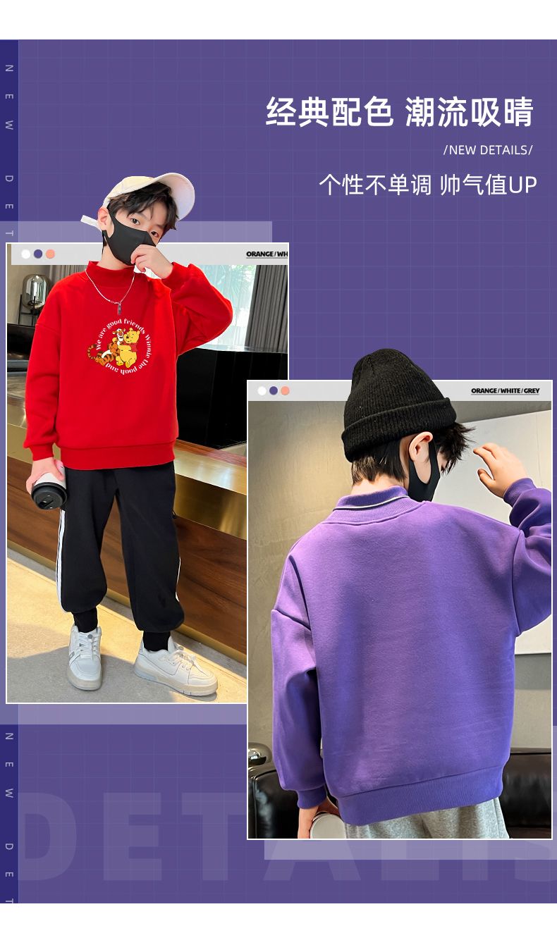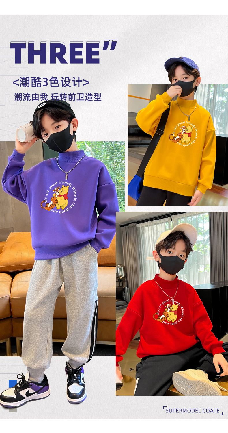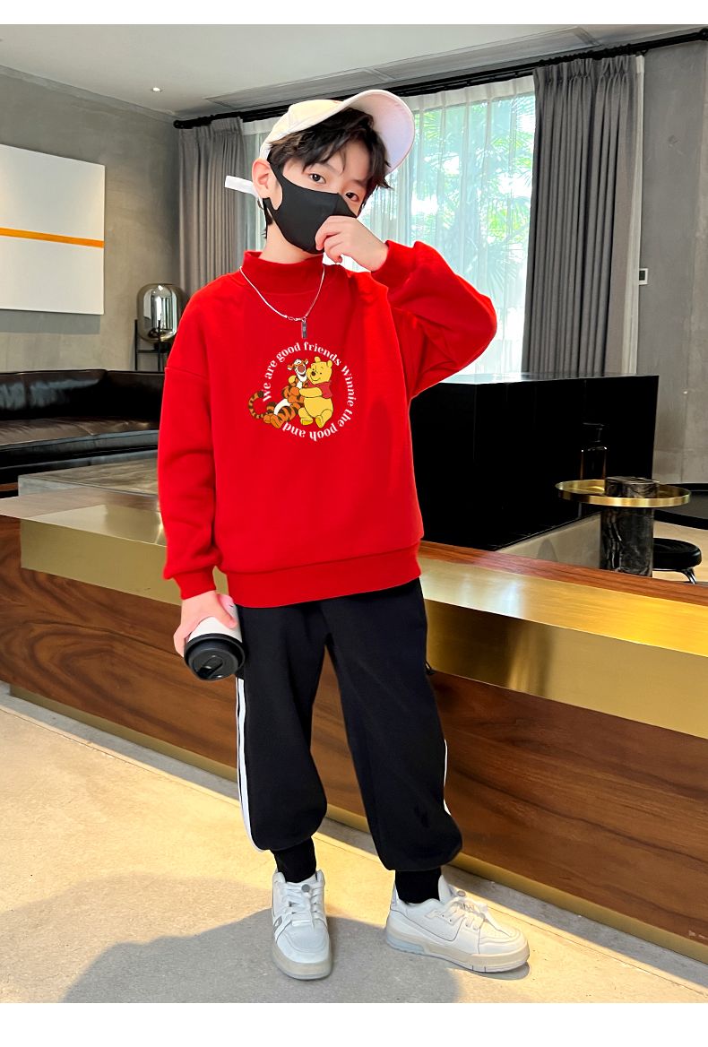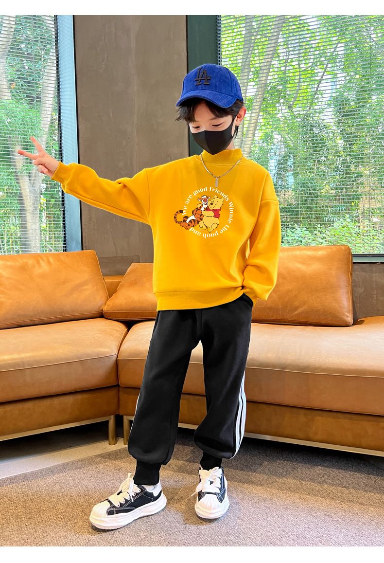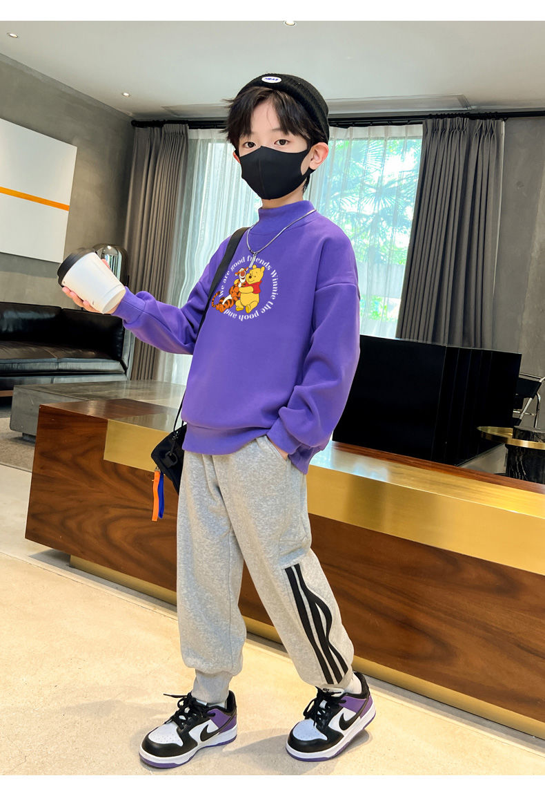 迪士尼儿童加绒卫衣秋冬2022新款冬季男童上衣加厚保暖衣大童衣服