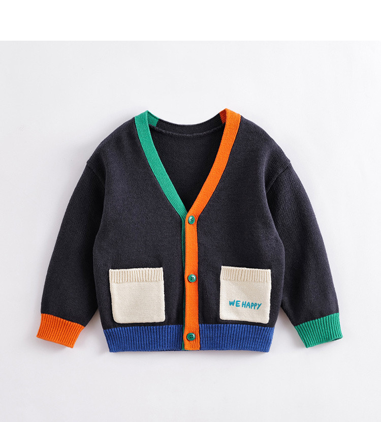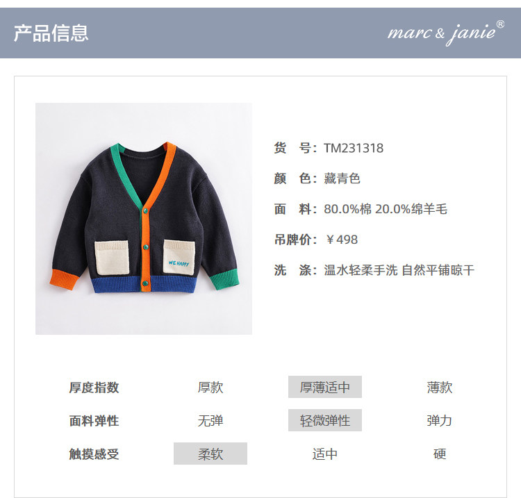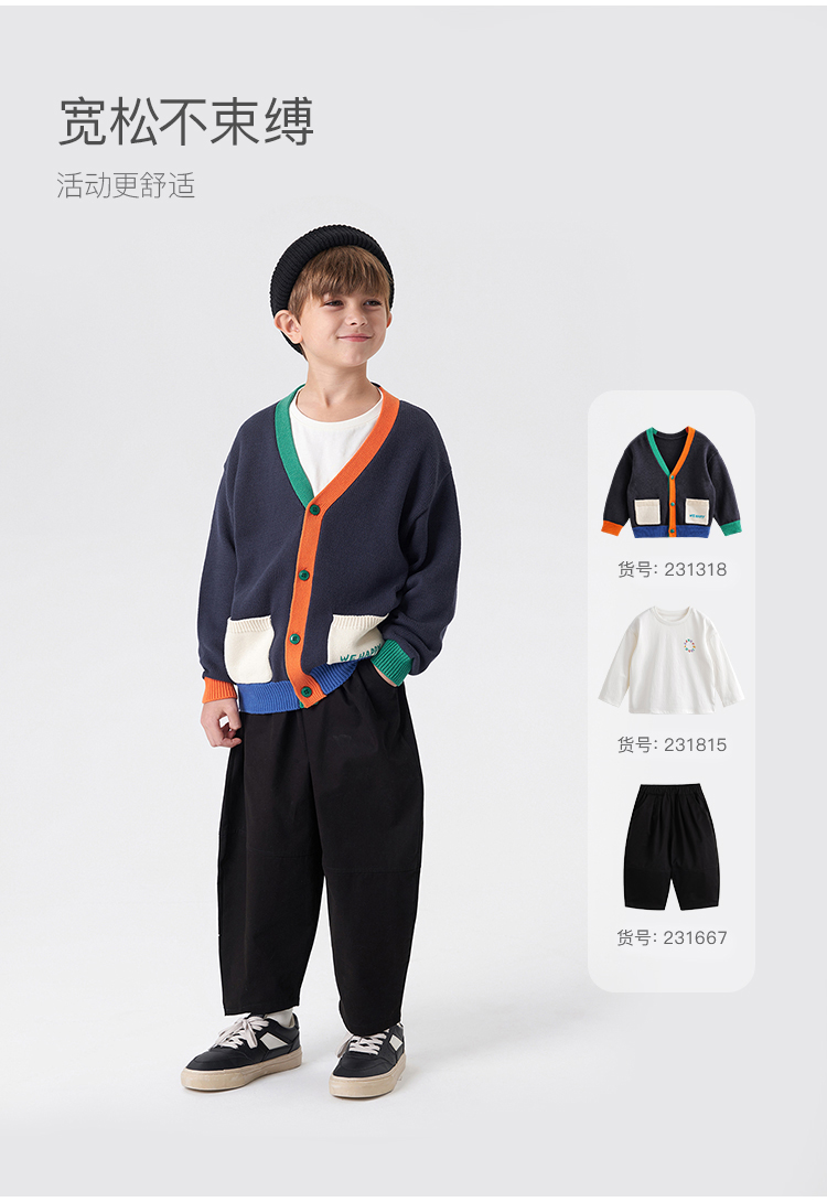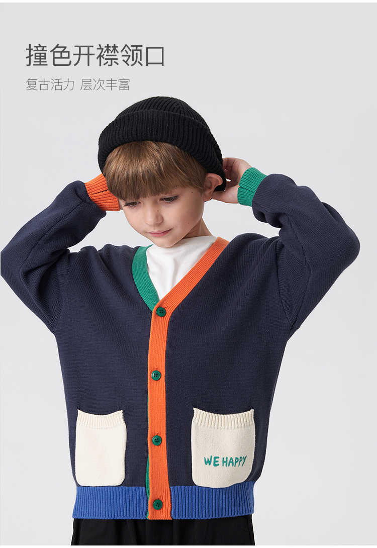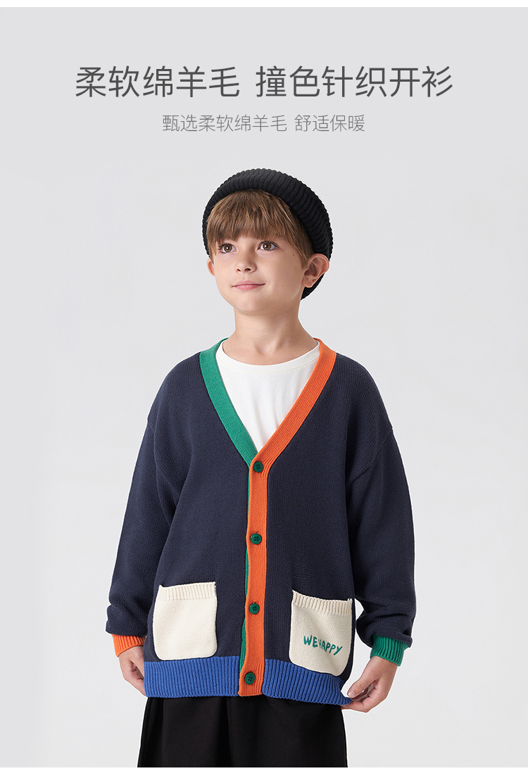 【棉羊毛】马克珍妮男女童撞色针织开衫儿童毛衣春秋款上衣231318