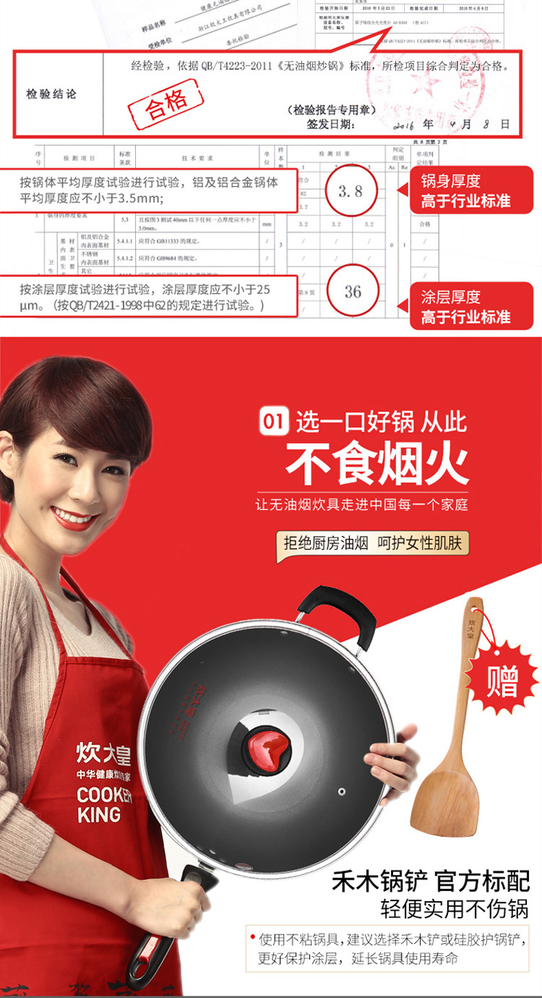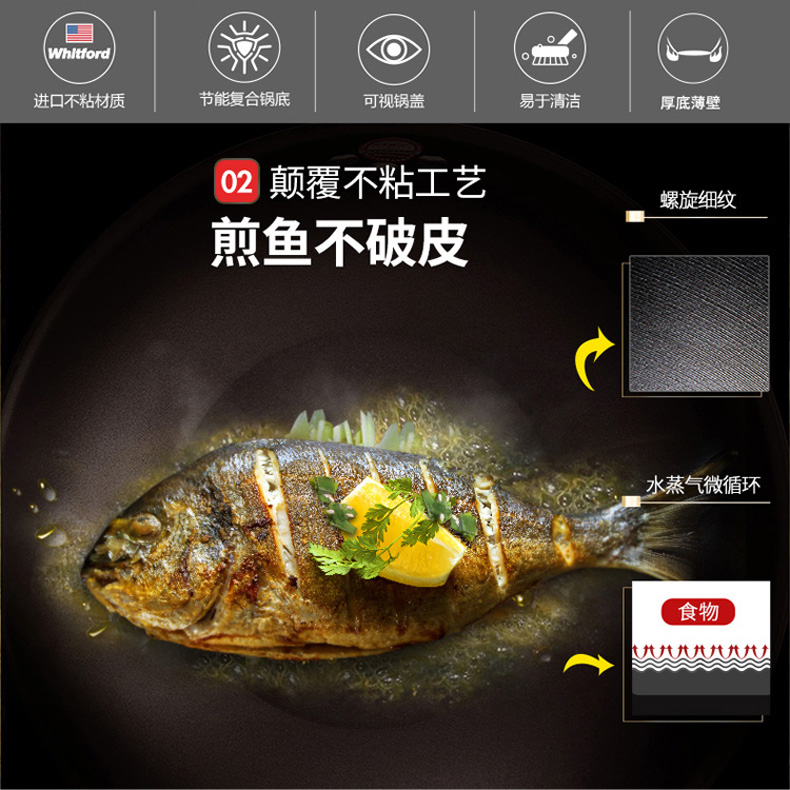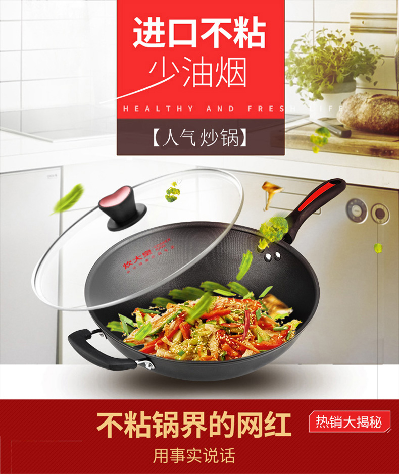 炊大皇炒锅不粘锅家用34cm少油烟锅炒菜锅燃气电磁炉通用烹饪锅具