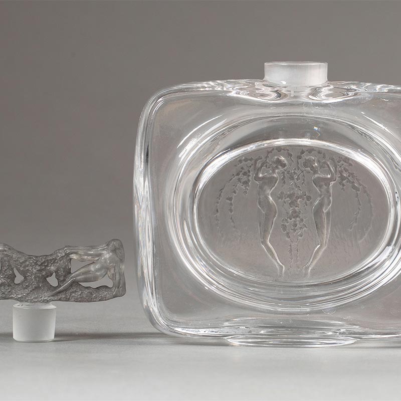1912年法国顶级水晶工坊莱俪LALIQUE设计出品「Deux Figurines Bouchon Figurines」款水晶香水瓶