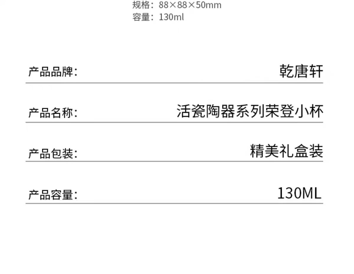 【活瓷陶器】荣登小茶杯2只装130ml