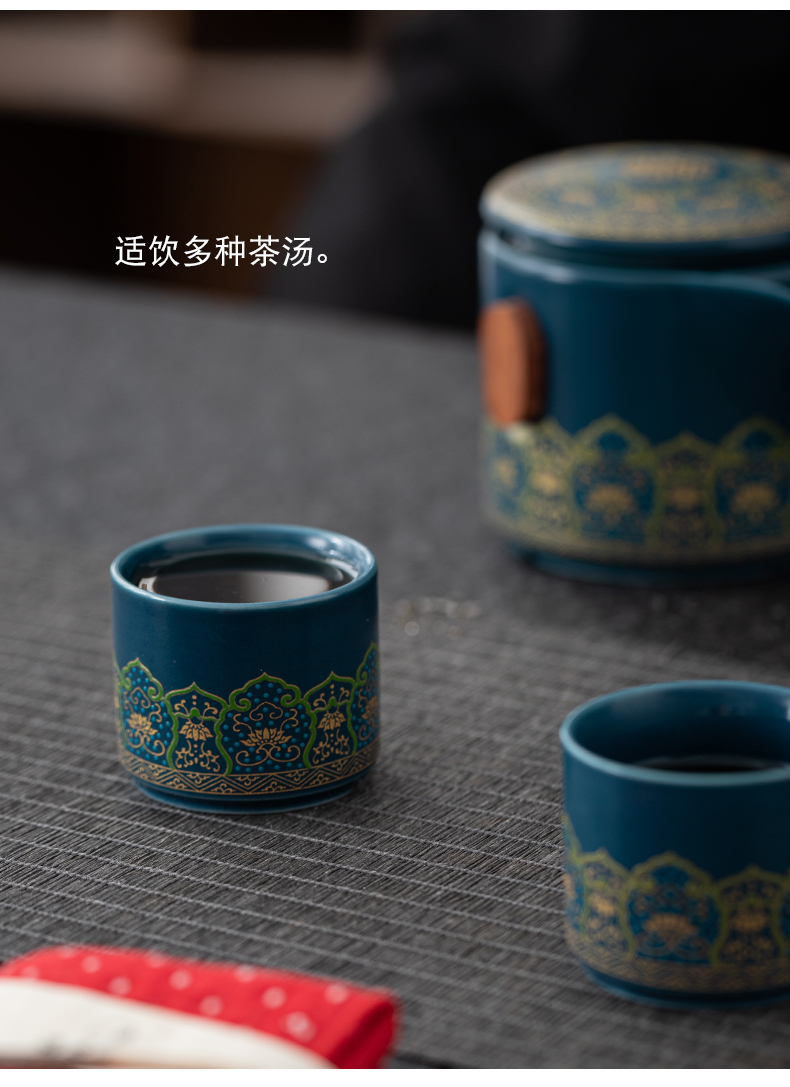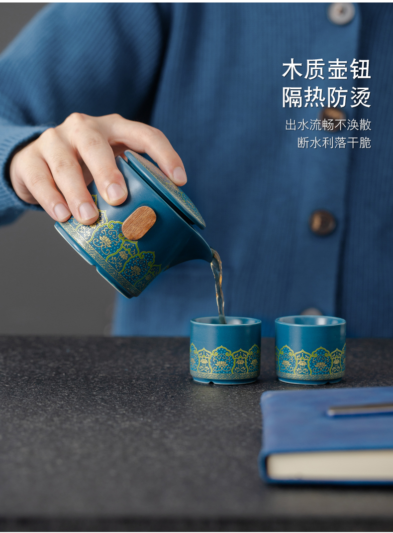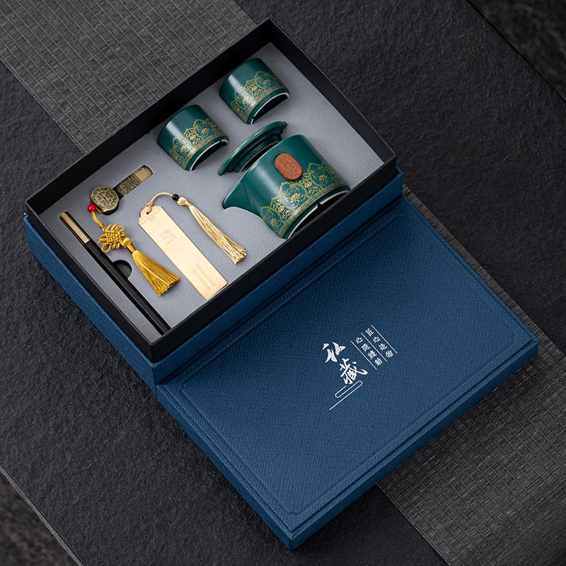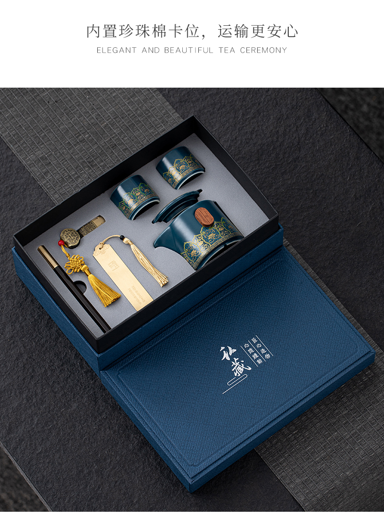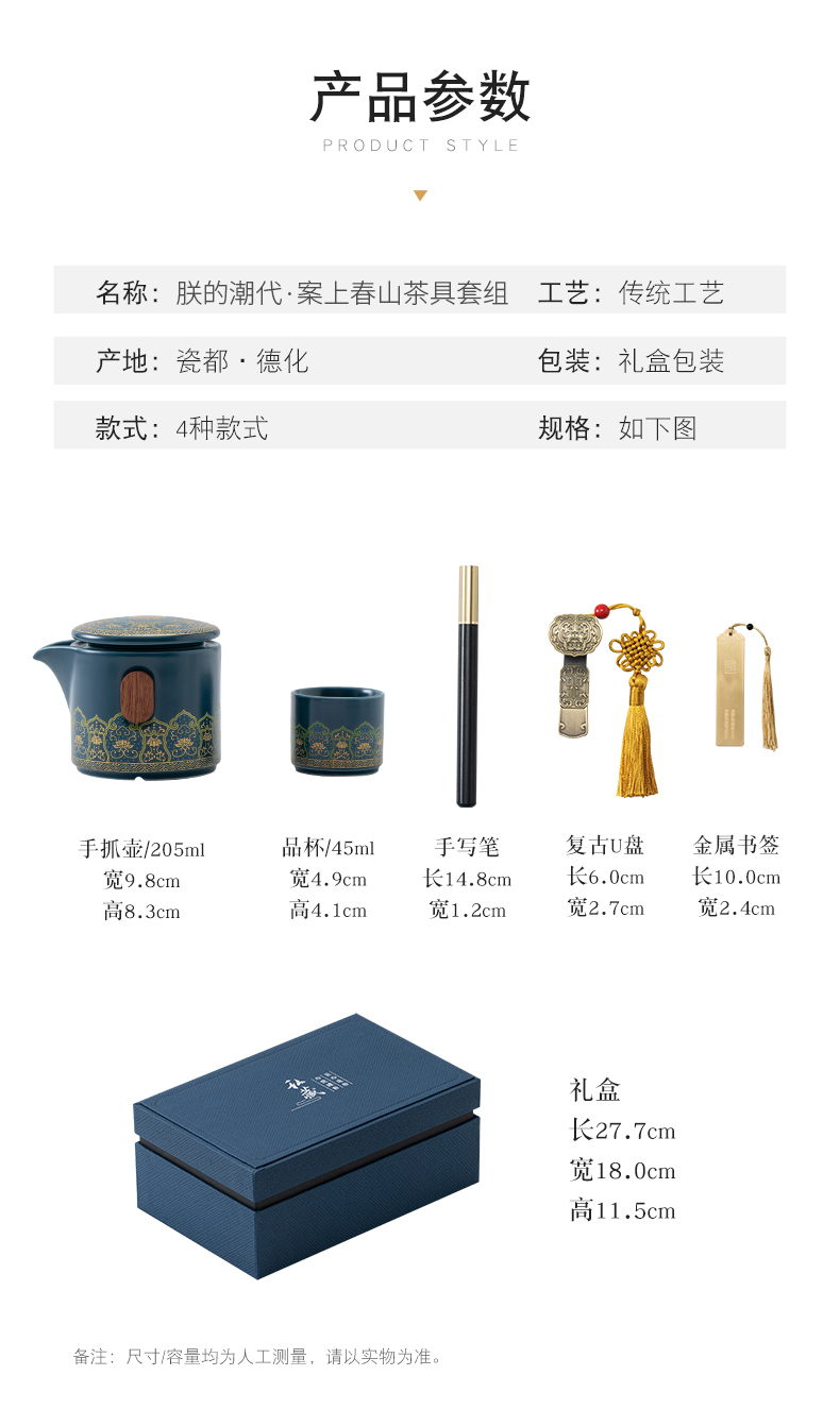 朕的潮代·案上春山茶具礼盒,产自瓷都德化,鎏金堆花勾勒山峦轮廓,古香古色