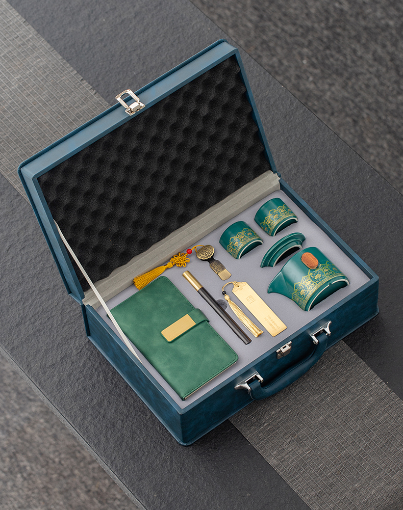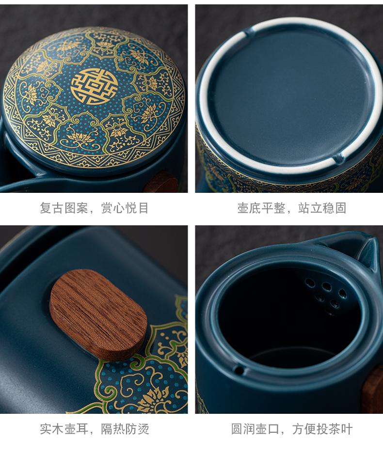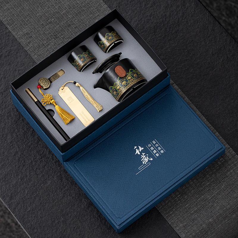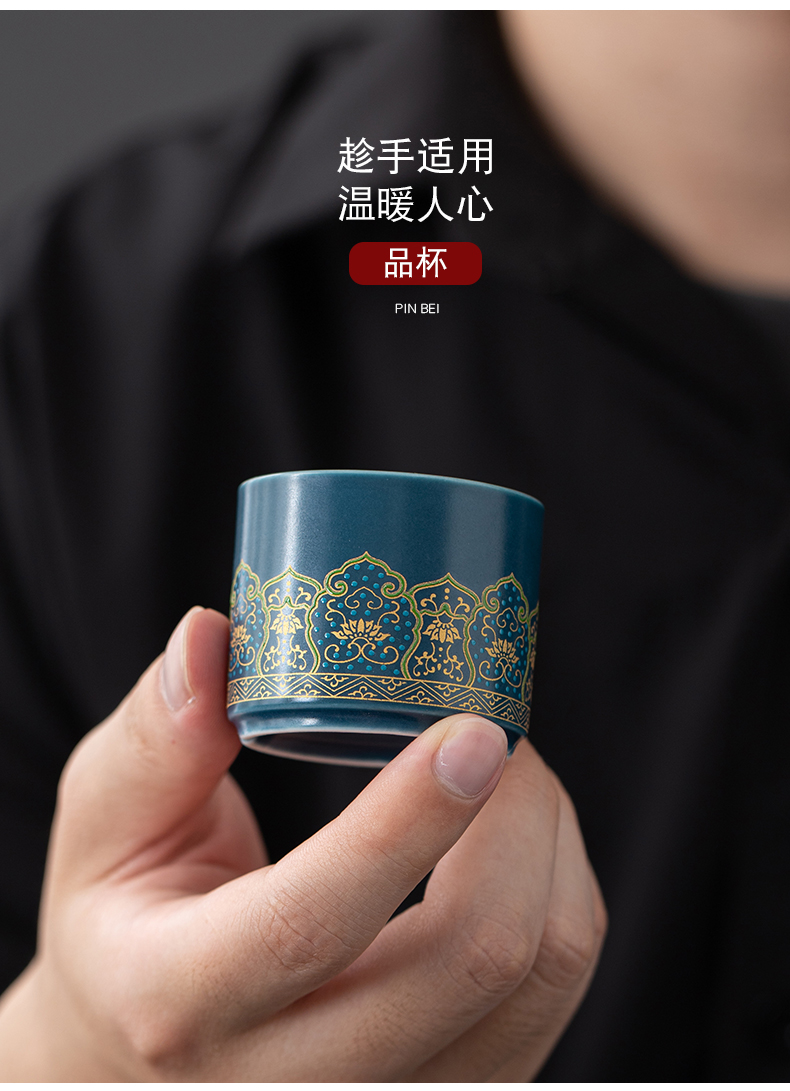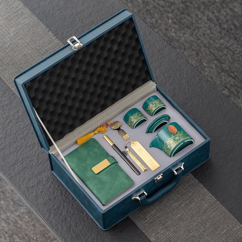 朕的潮代·案上春山茶具礼盒,产自瓷都德化,鎏金堆花勾勒山峦轮廓,古香古色