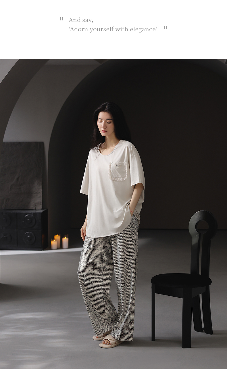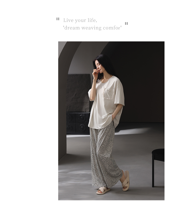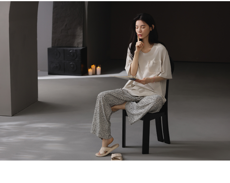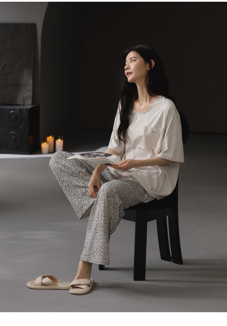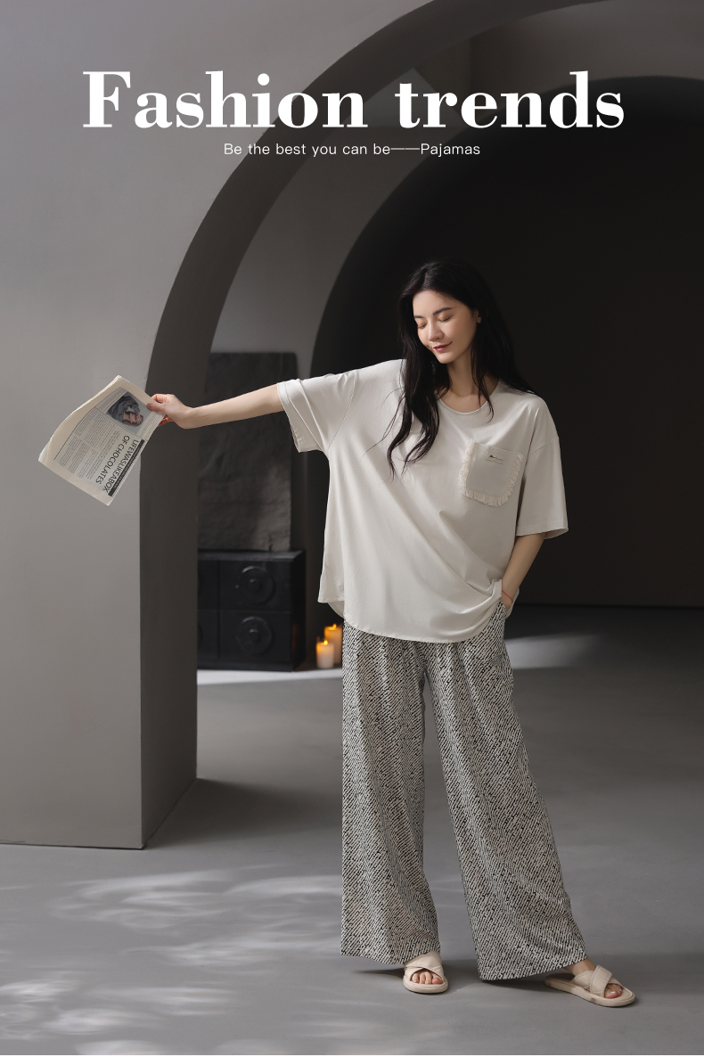可人儿带胸垫睡衣夏季凉感莫代尔女士家居服短袖长裤套装可外穿