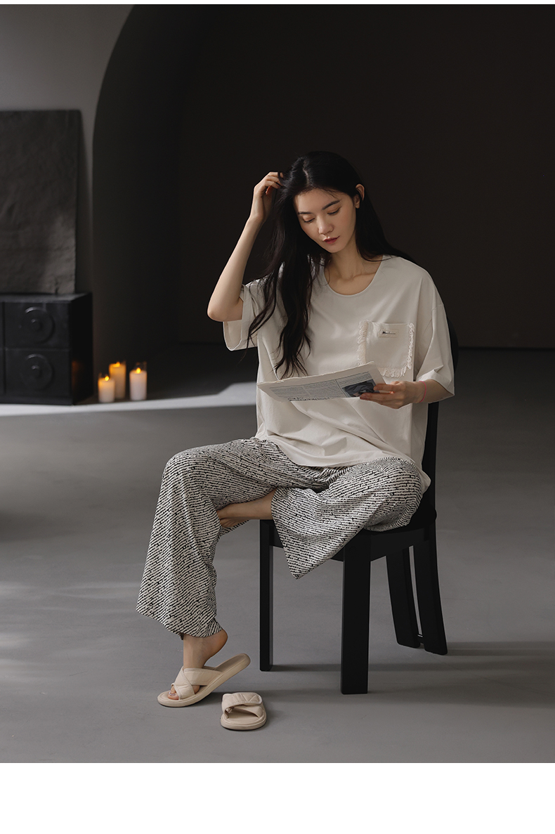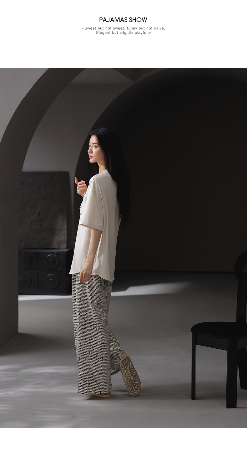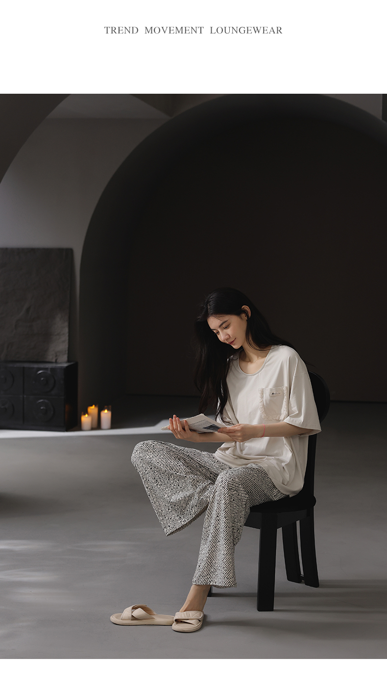 可人儿带胸垫睡衣夏季凉感莫代尔女士家居服短袖长裤套装可外穿