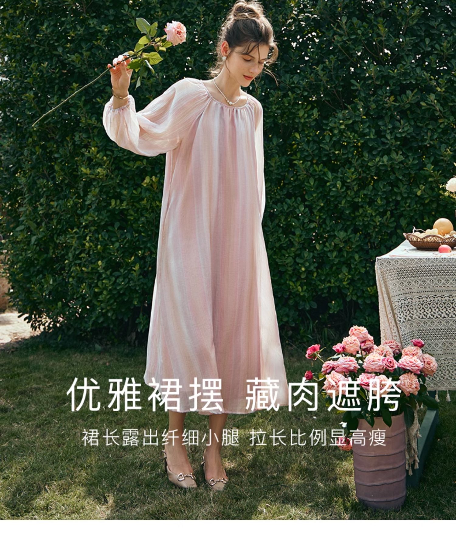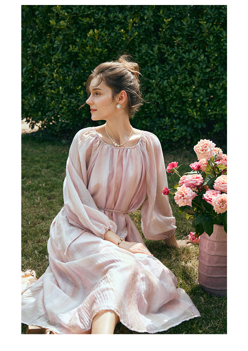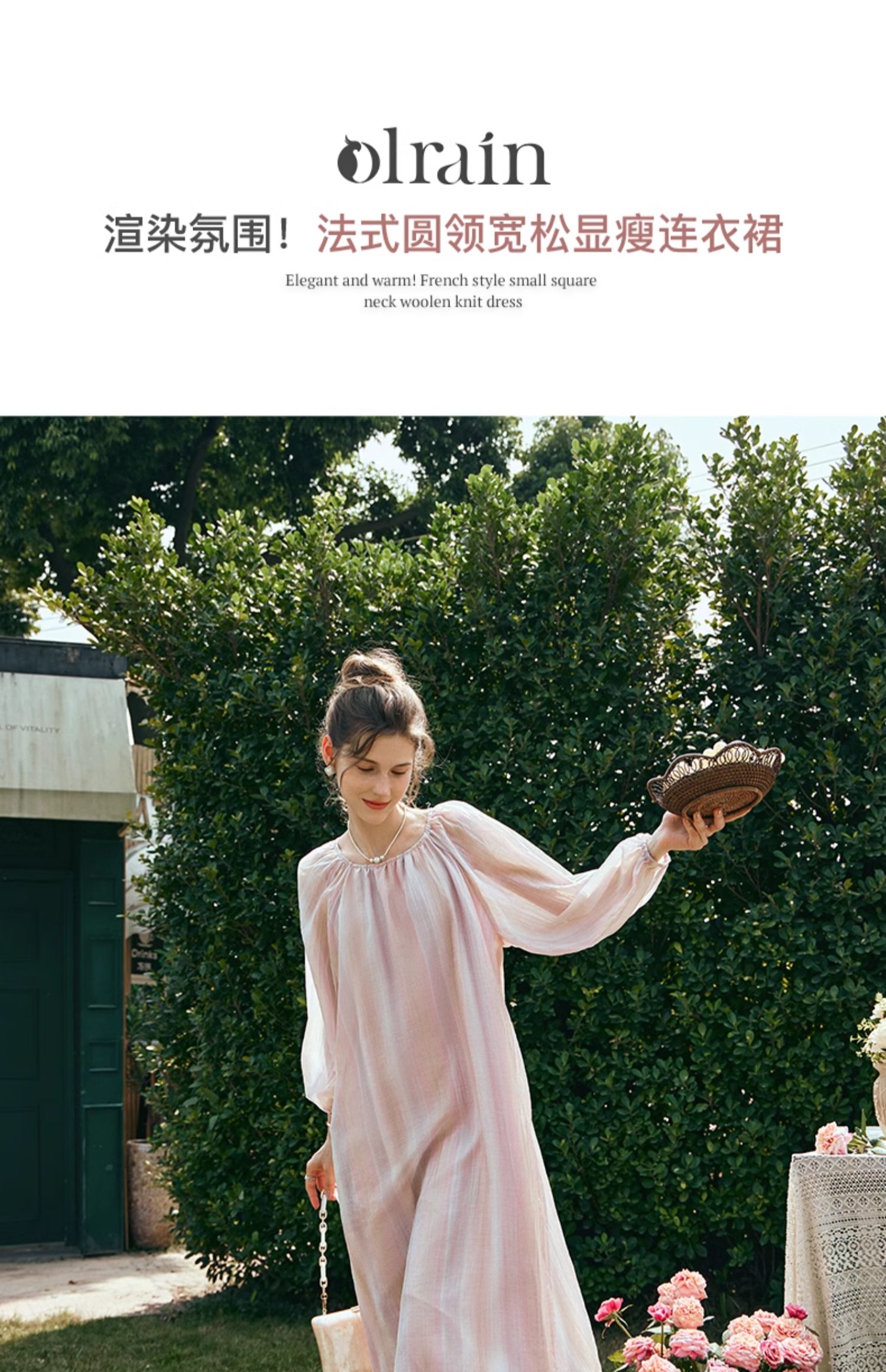 OLrain欧芮儿法式粉色连衣裙女早春2024年新款慵懒宽松显瘦裙子