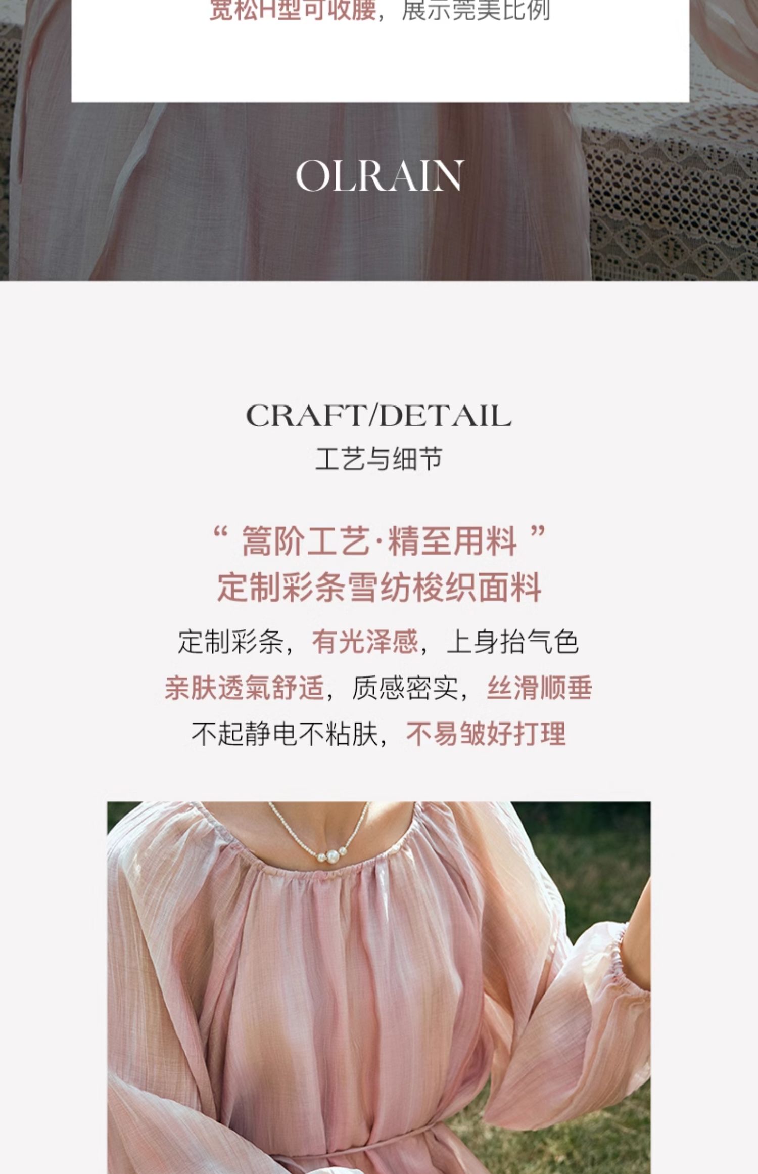 - “精致”是欧芮儿olrain品牌文化的核心,欧芮儿认为,精致的女人,不但要外在动人,更要内在迷人,内外兼修,有魅力、有气质、有内涵,自信而不自傲,优雅而不矫揉,自有万种风情而不轻浮,更不故作矜持。