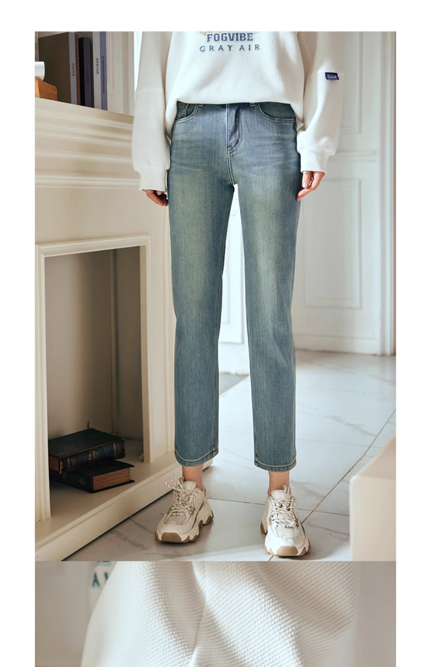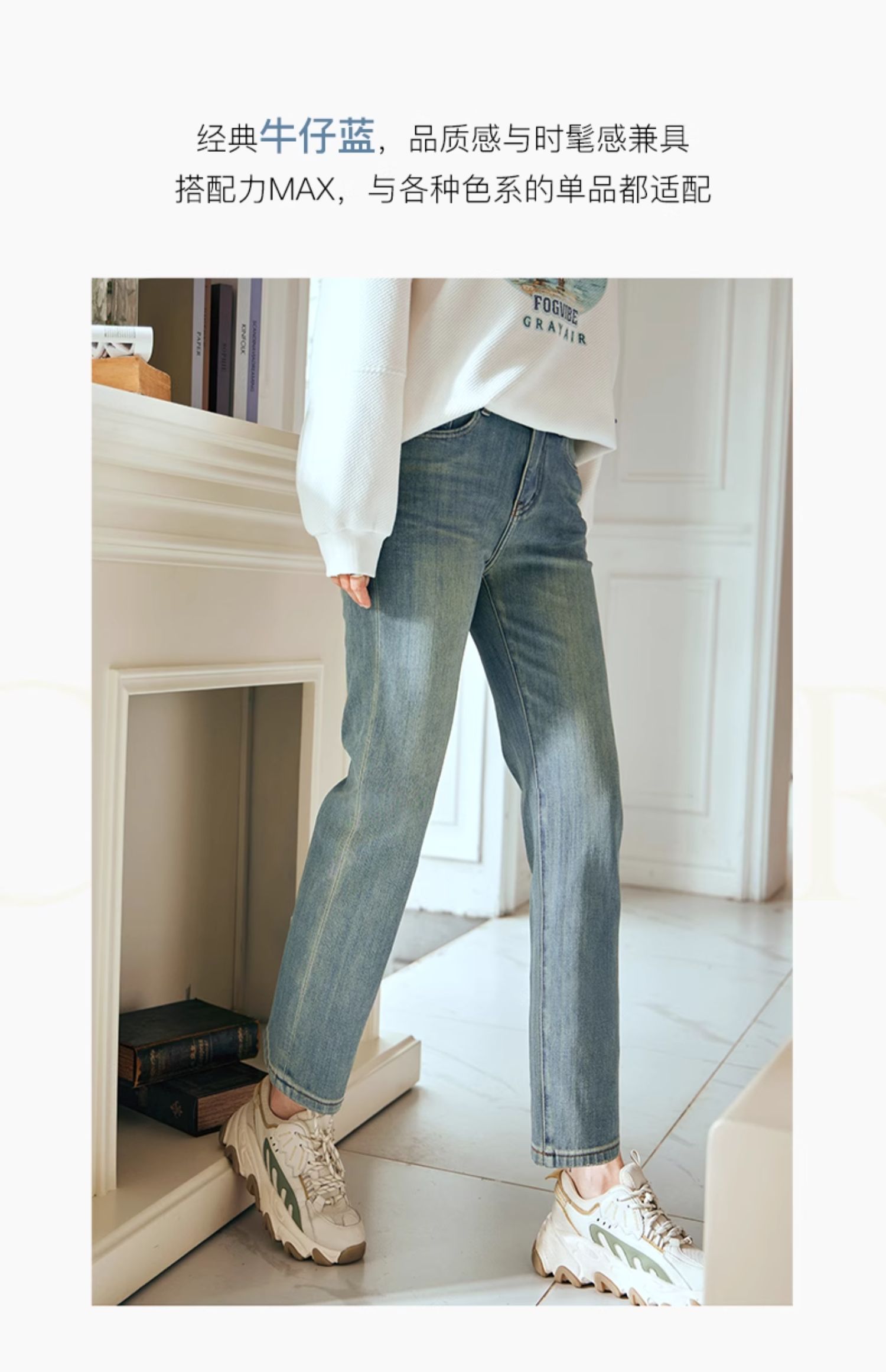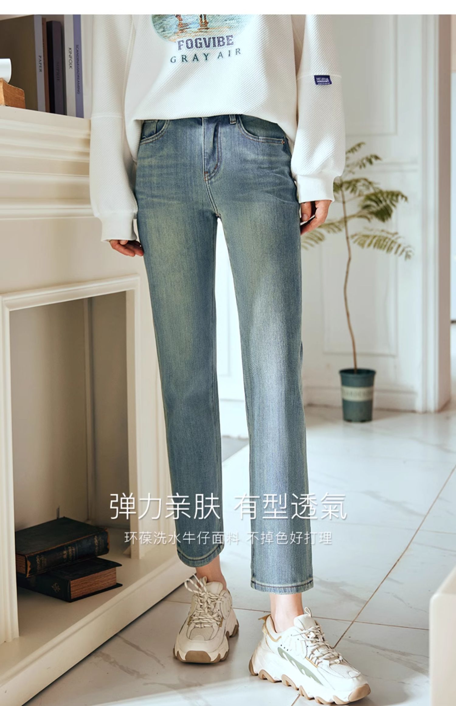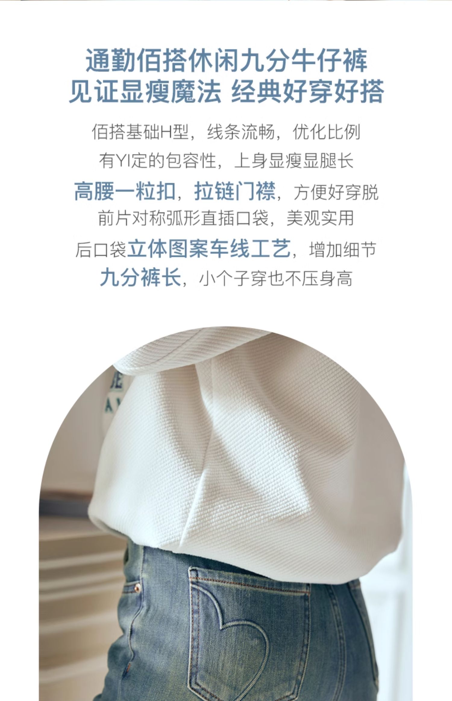 OLrain欧芮儿休闲牛仔裤女早春2024年新款水洗蓝通勤百搭九分裤子