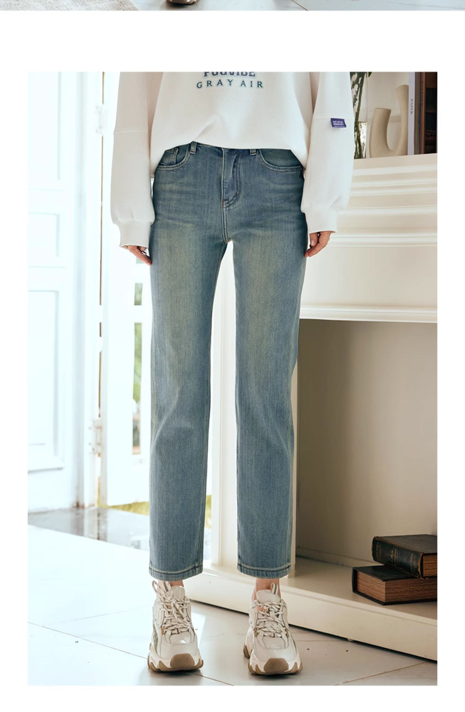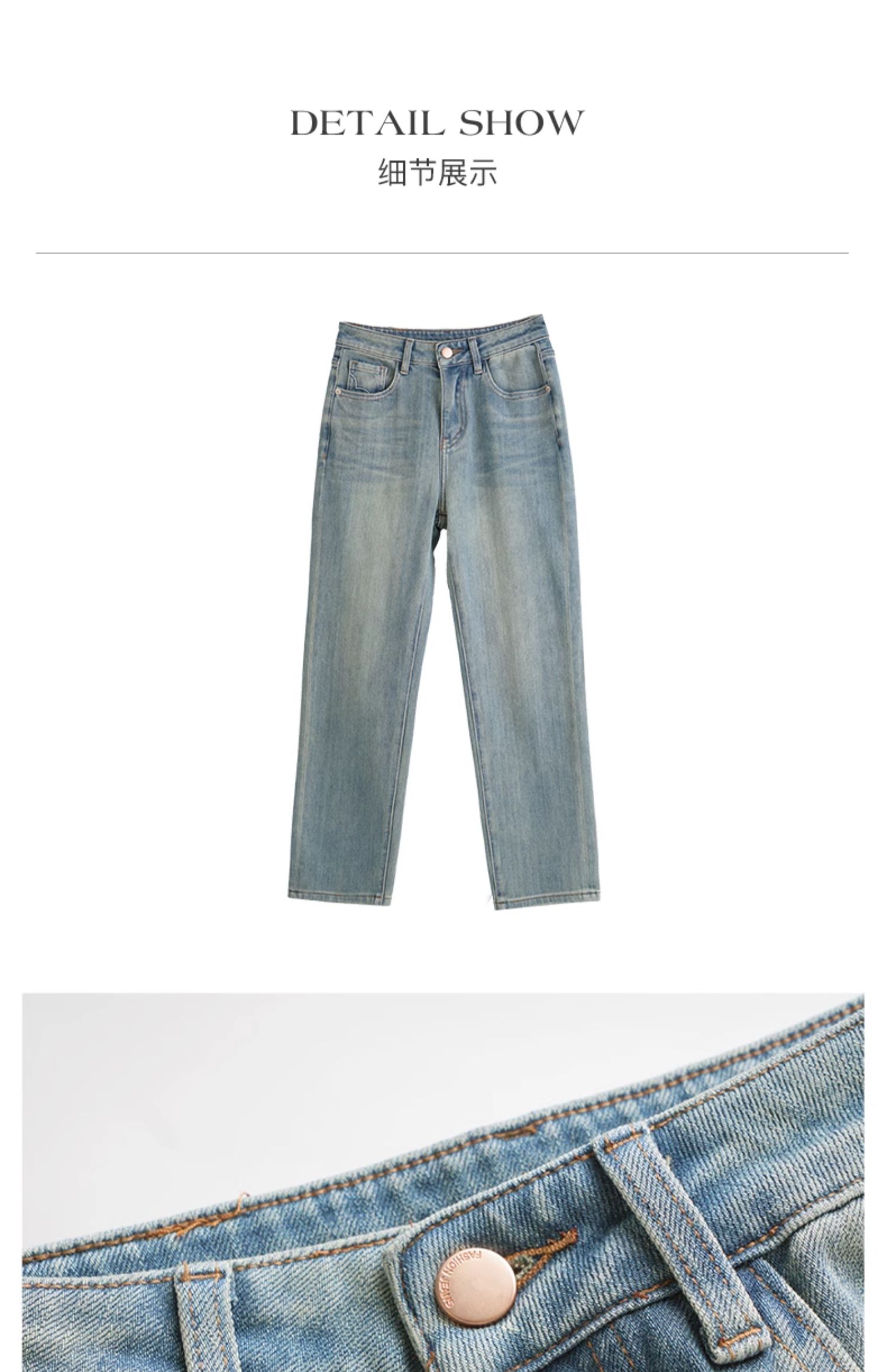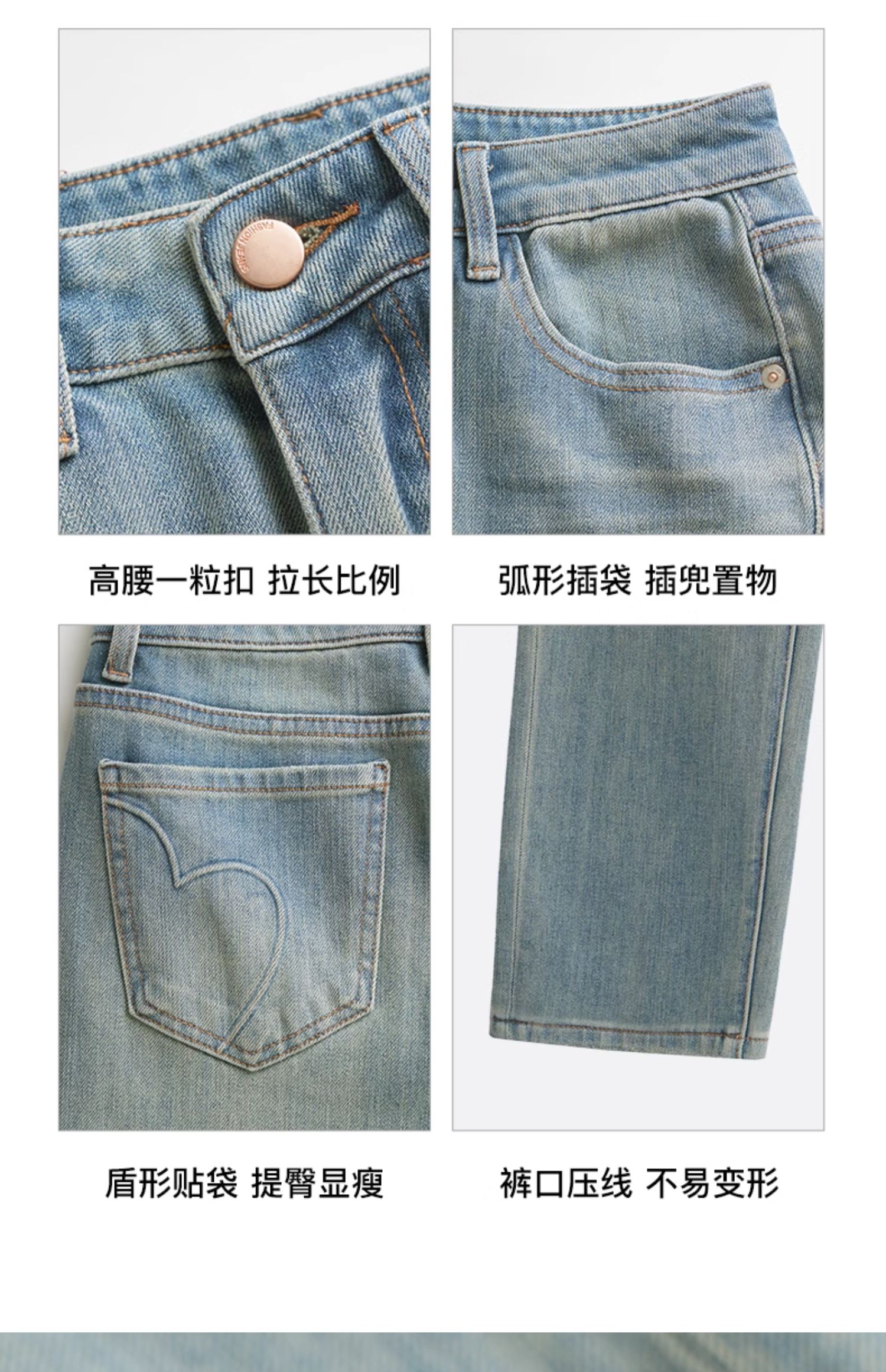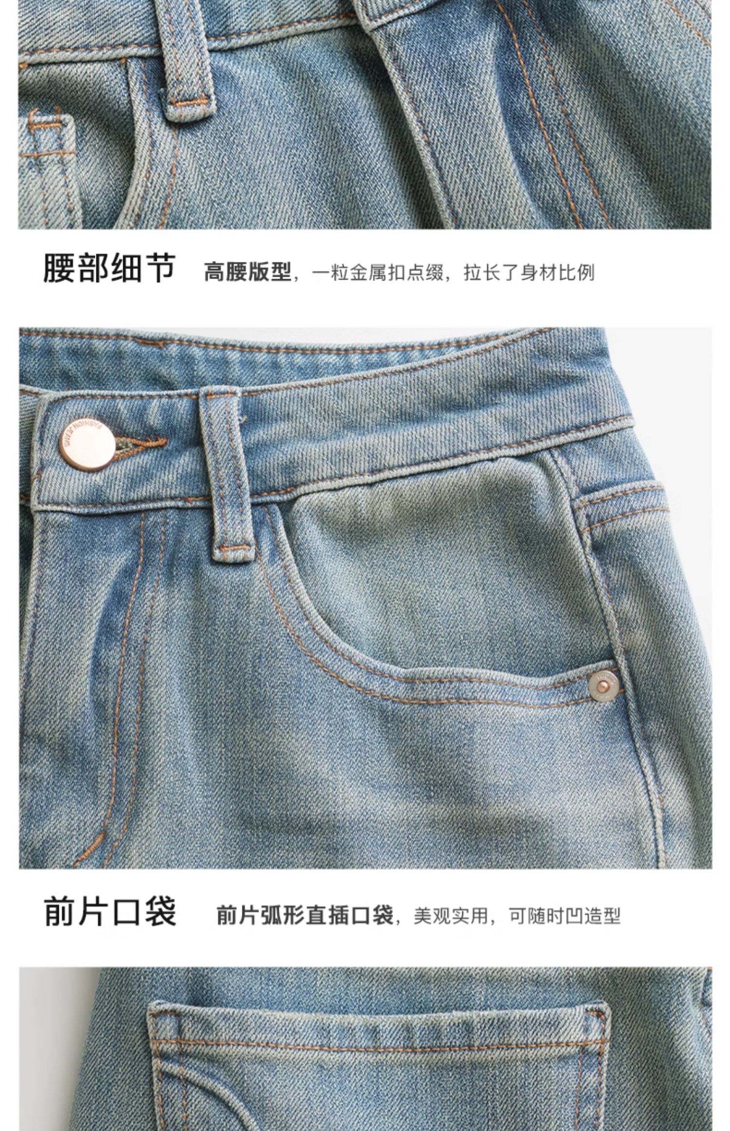 OLrain欧芮儿休闲牛仔裤女早春2024年新款水洗蓝通勤百搭九分裤子