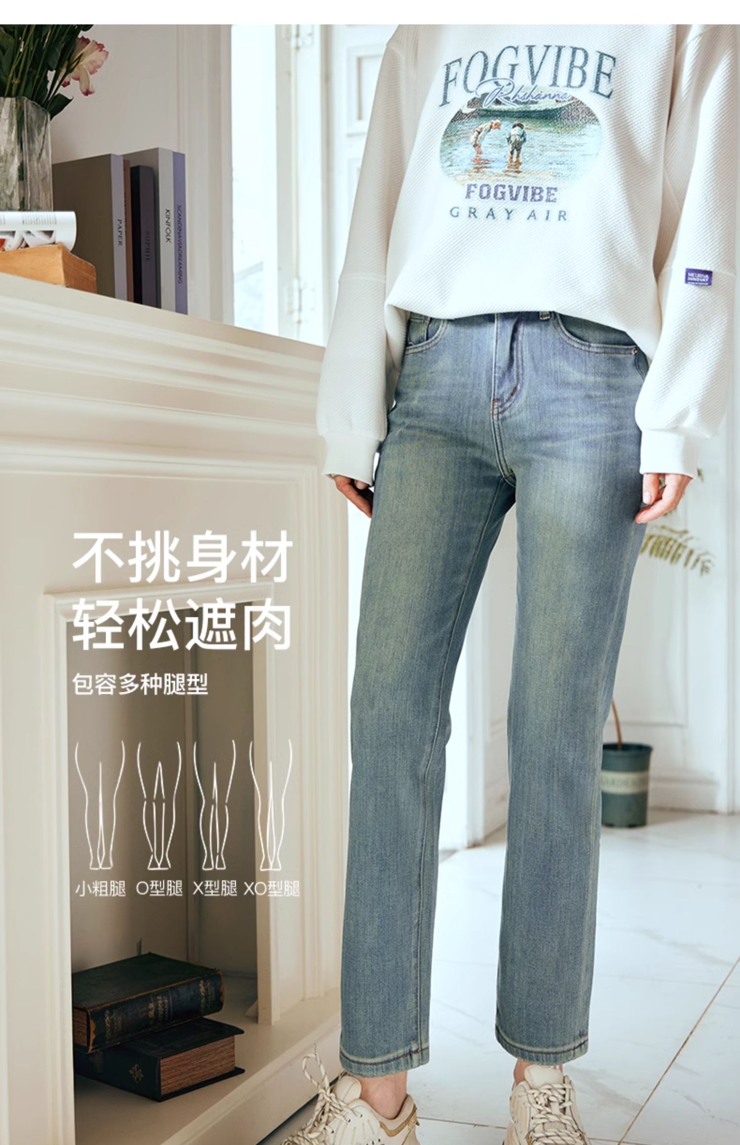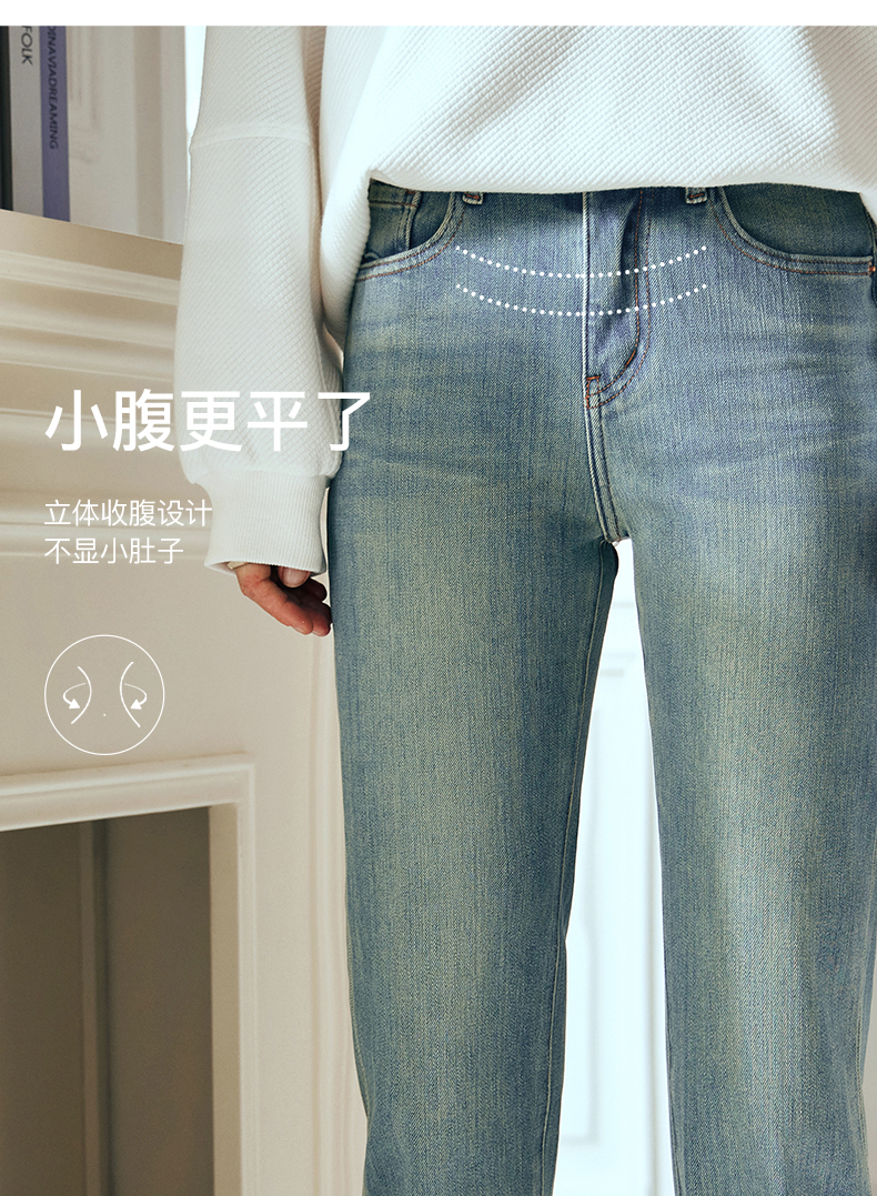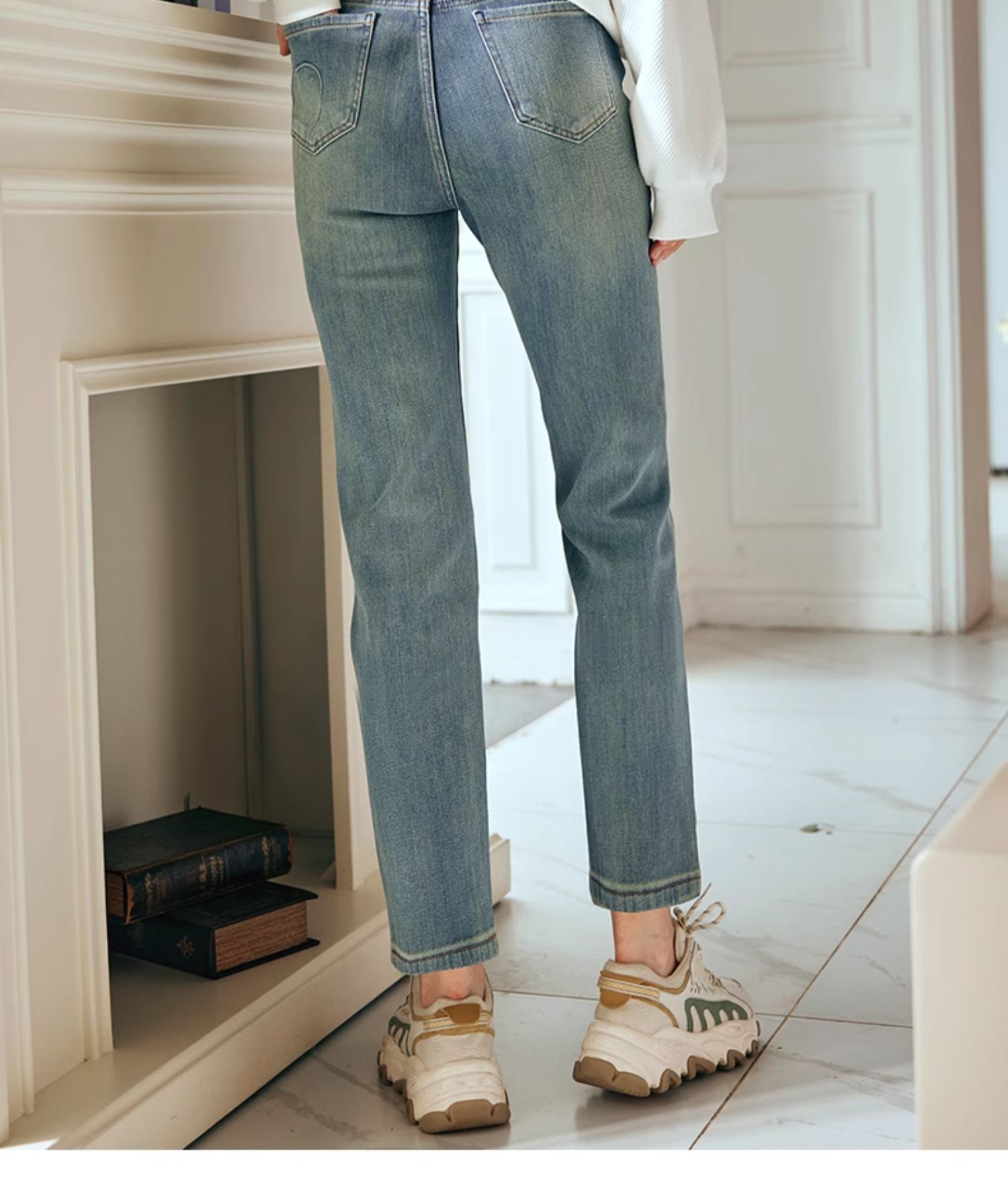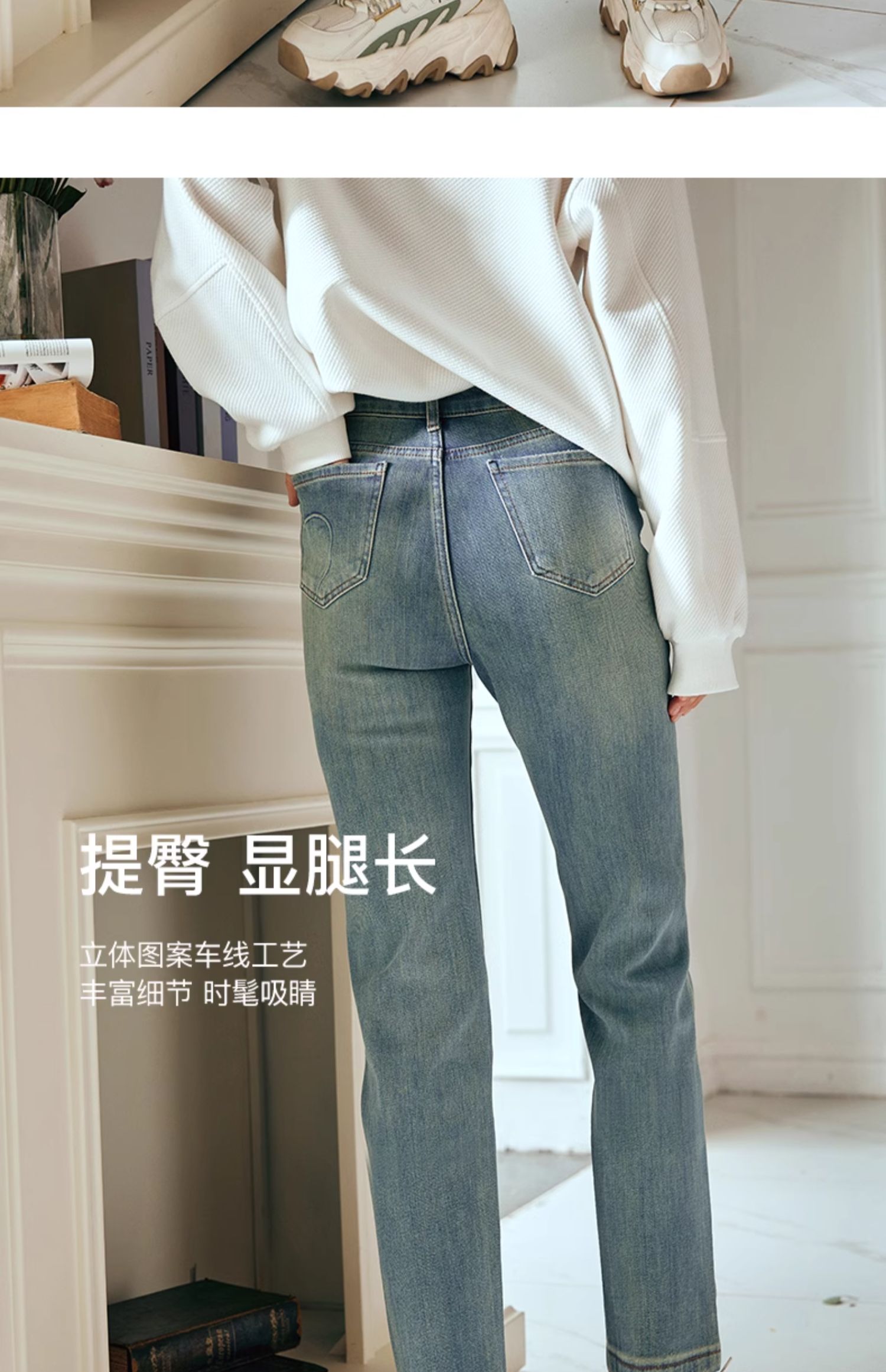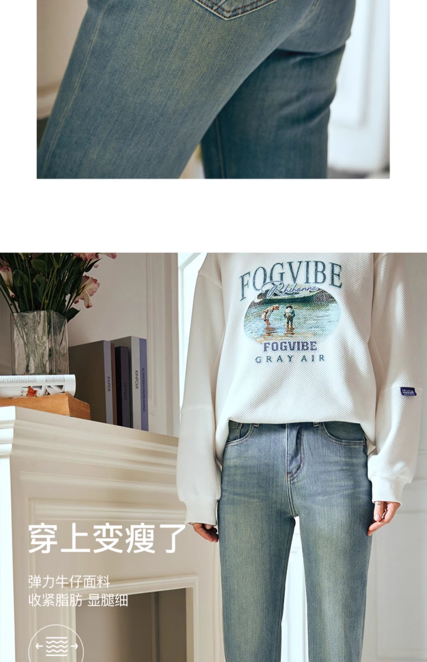 OLrain欧芮儿休闲牛仔裤女早春2024年新款水洗蓝通勤百搭九分裤子