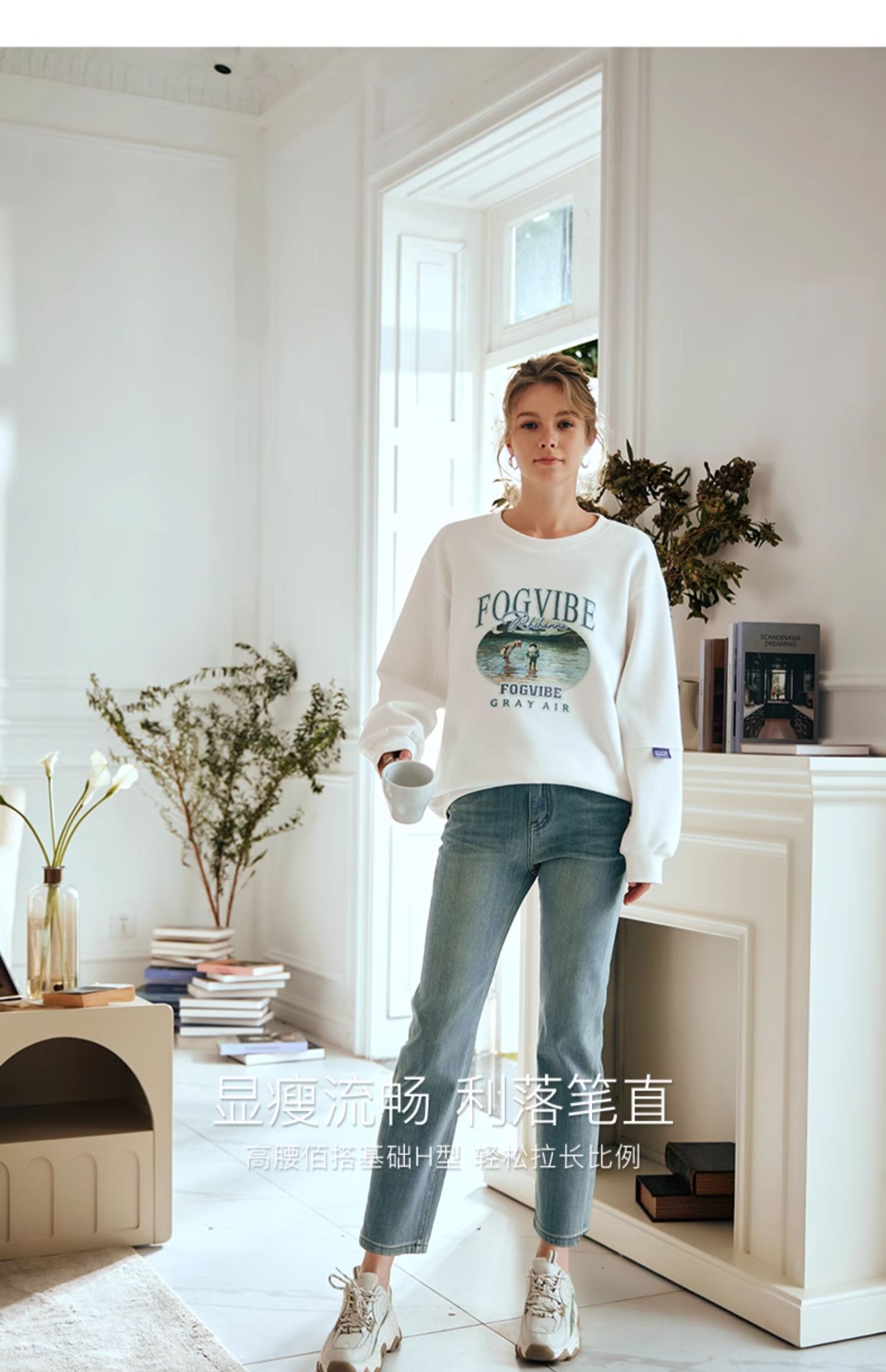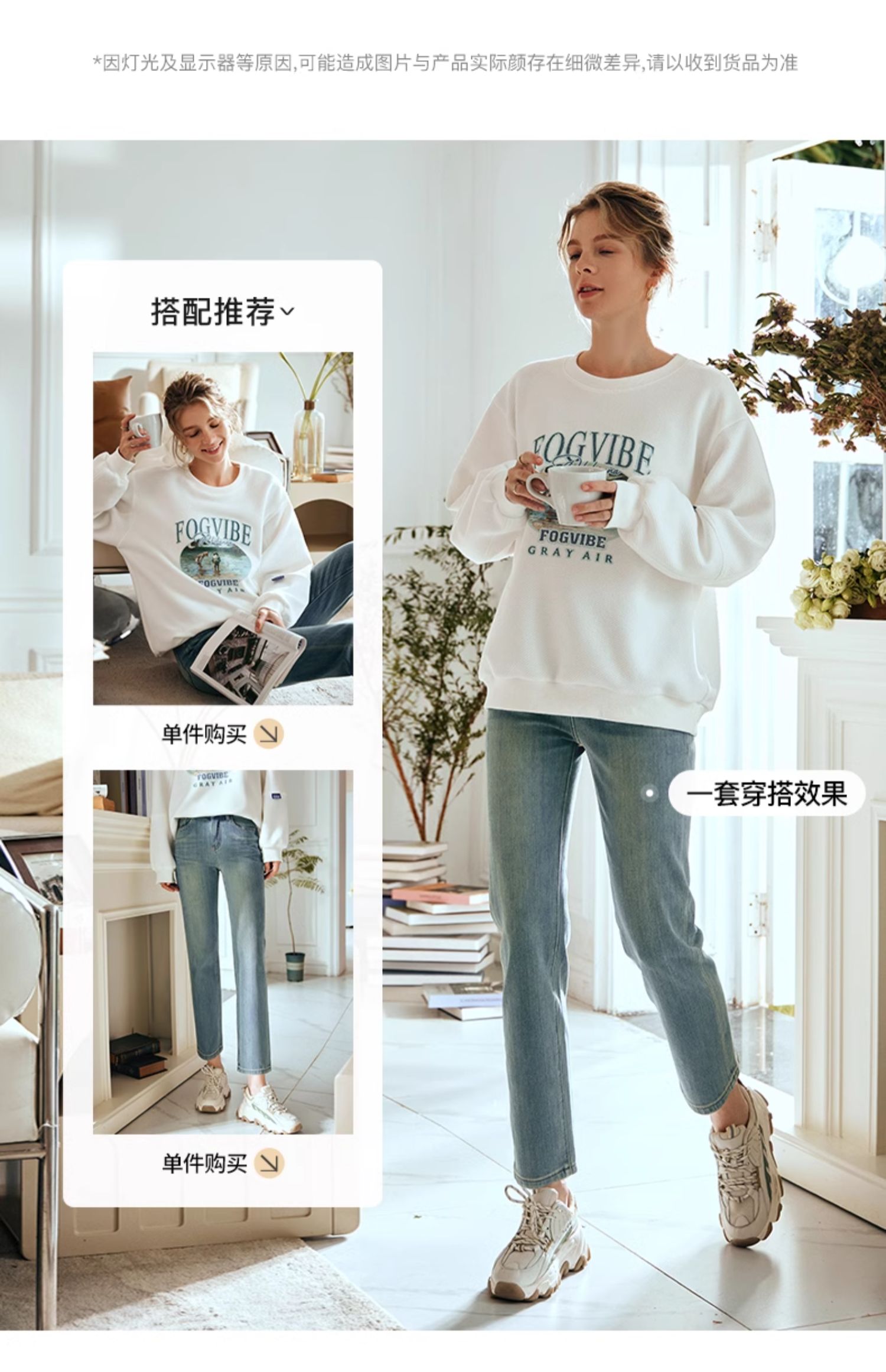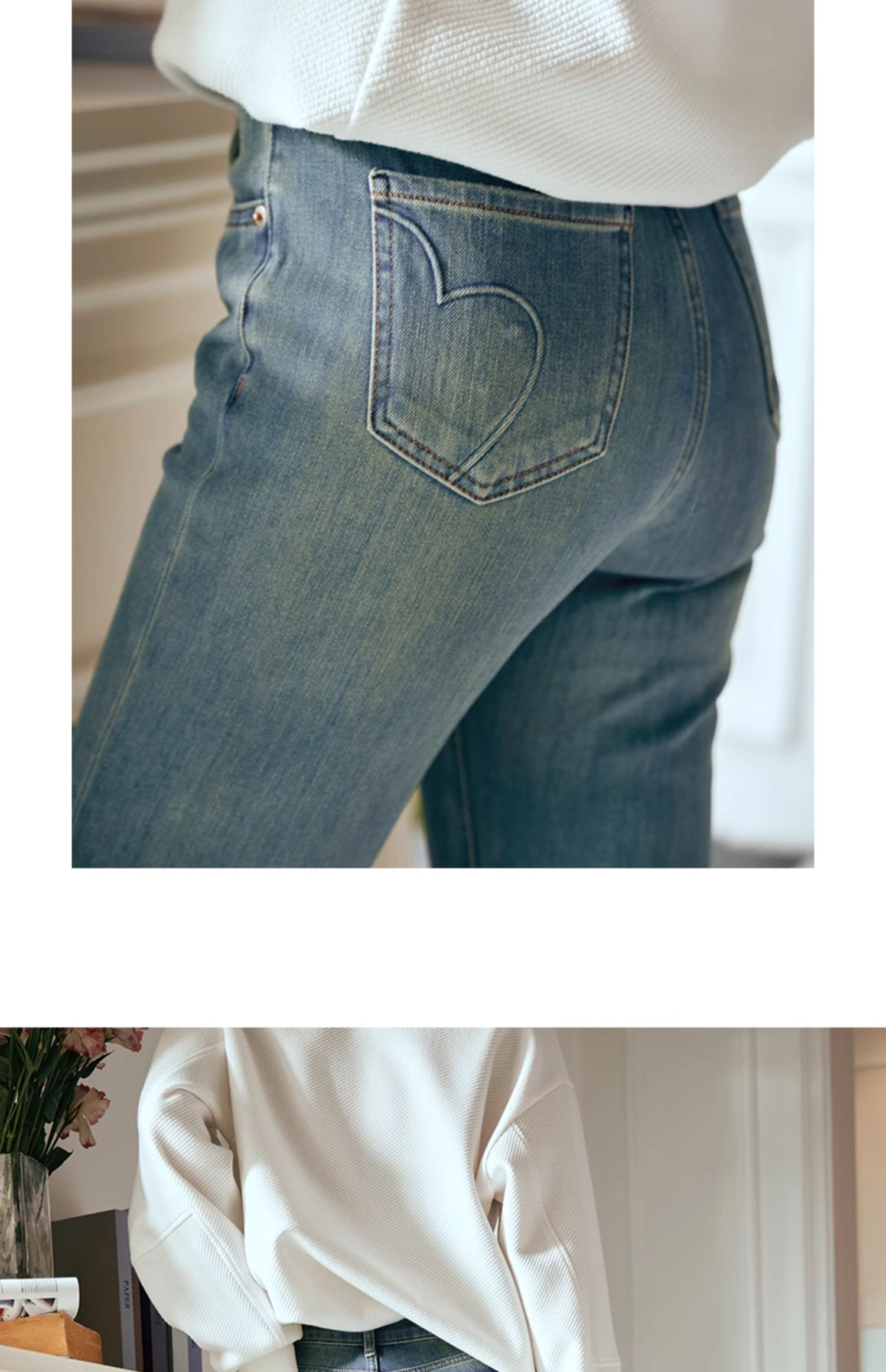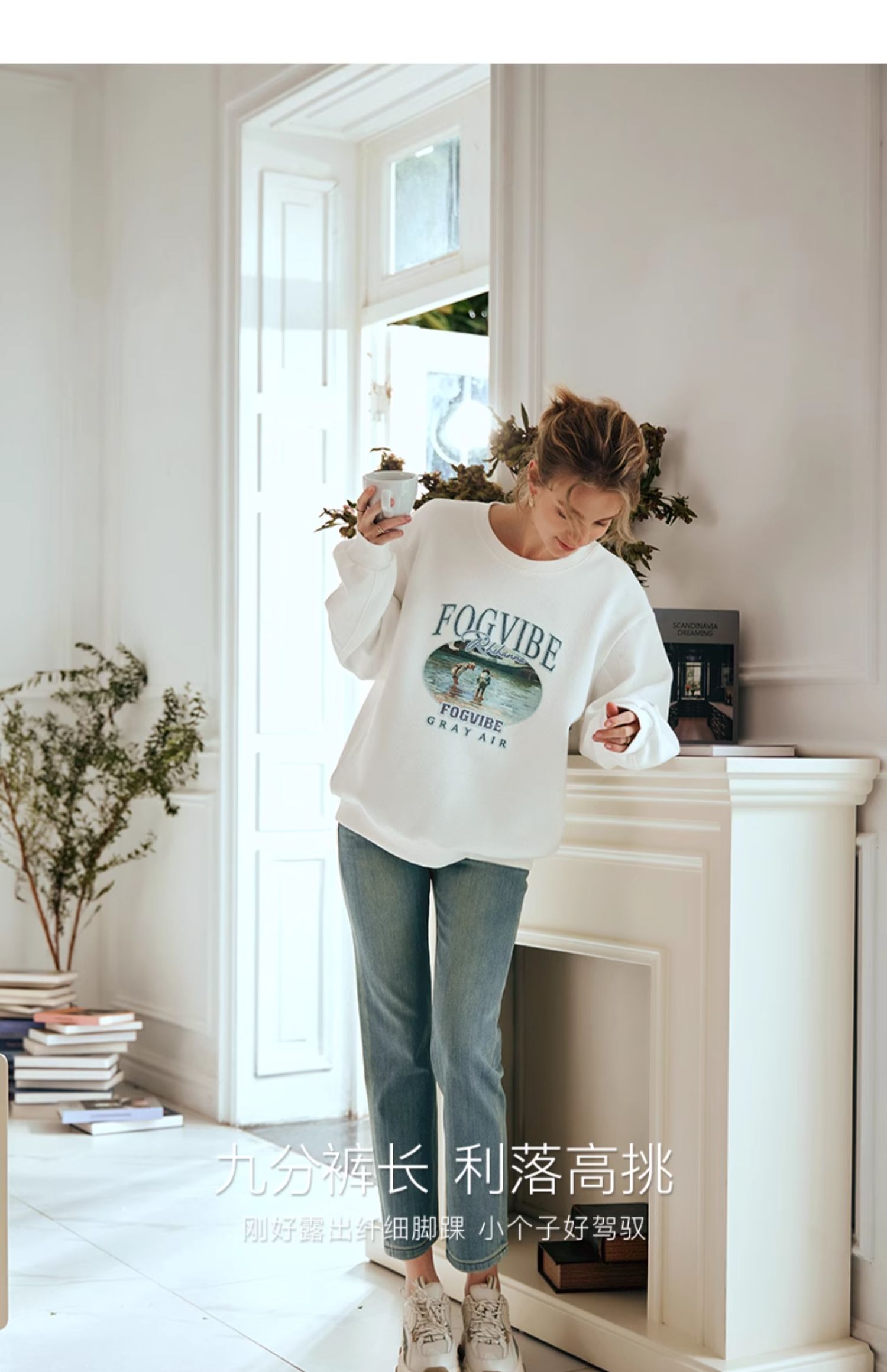 OLrain欧芮儿休闲牛仔裤女早春2024年新款水洗蓝通勤百搭九分裤子