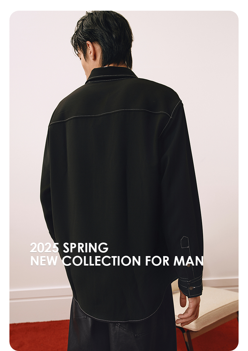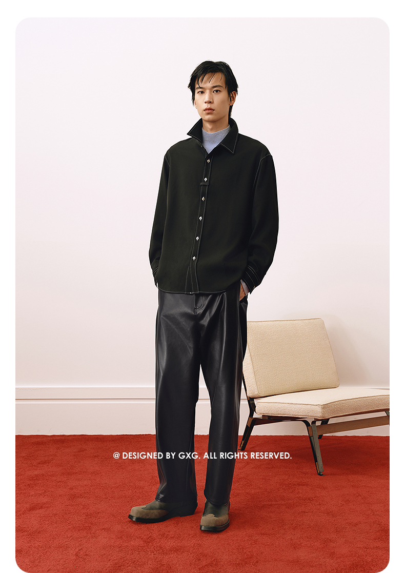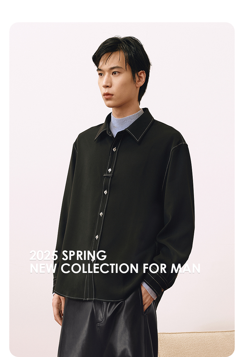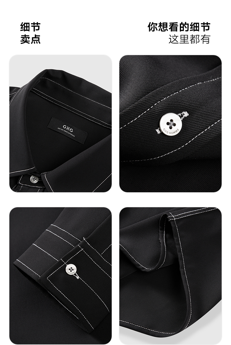GXG男装 黑色撞色压线设计翻领长袖衬衫25年春季热卖G25X031014